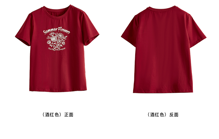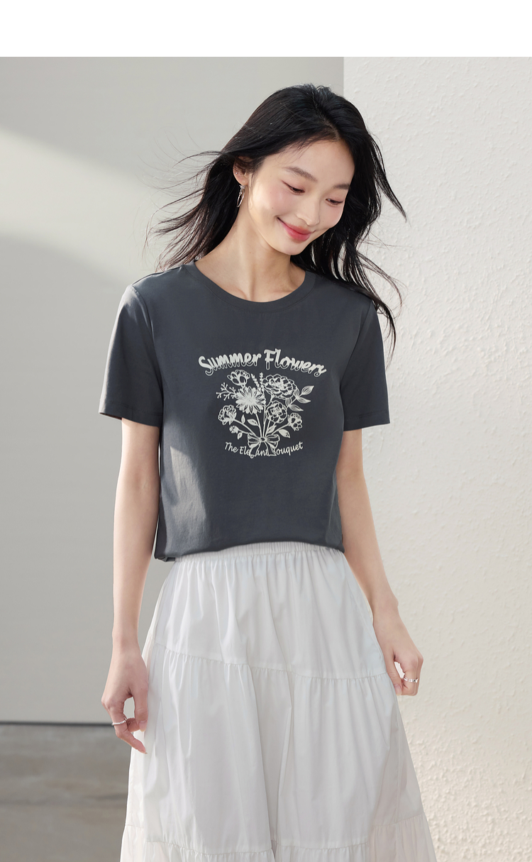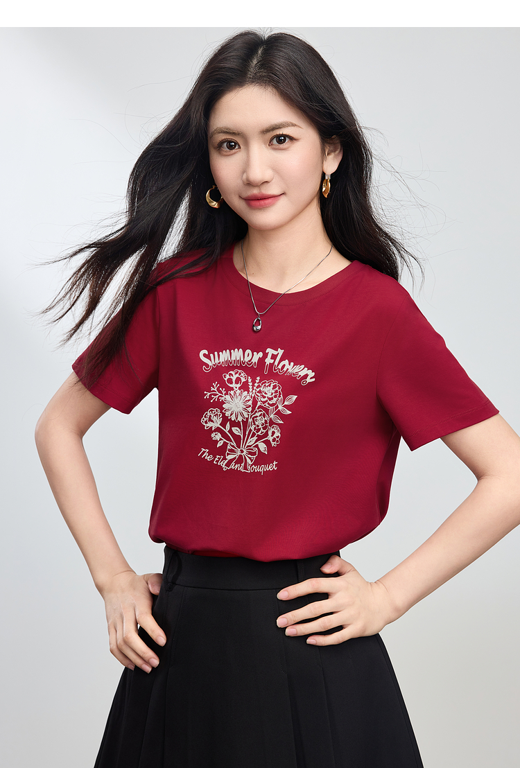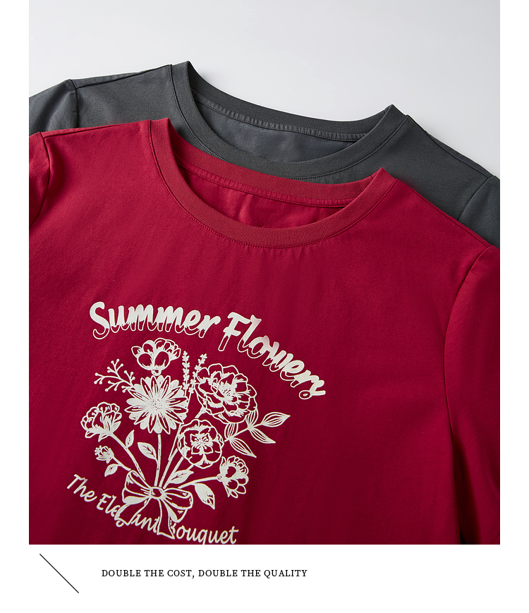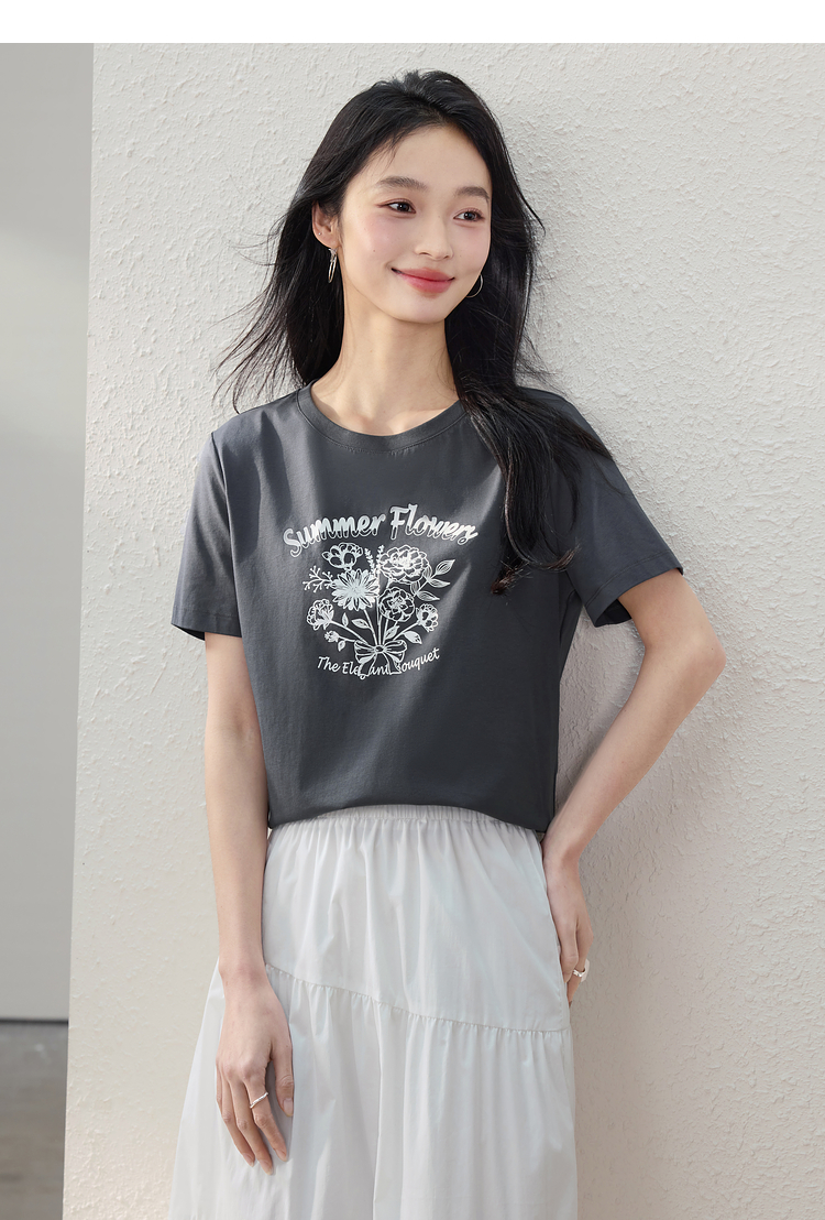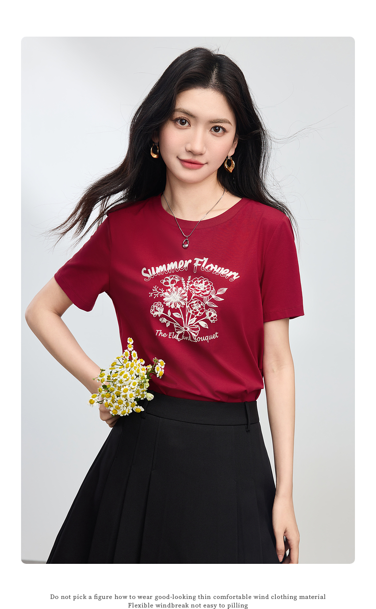 【专属特价】熙世界荷叶莲花印花正肩T恤女夏季2025新款宽松显瘦圆领短袖上衣