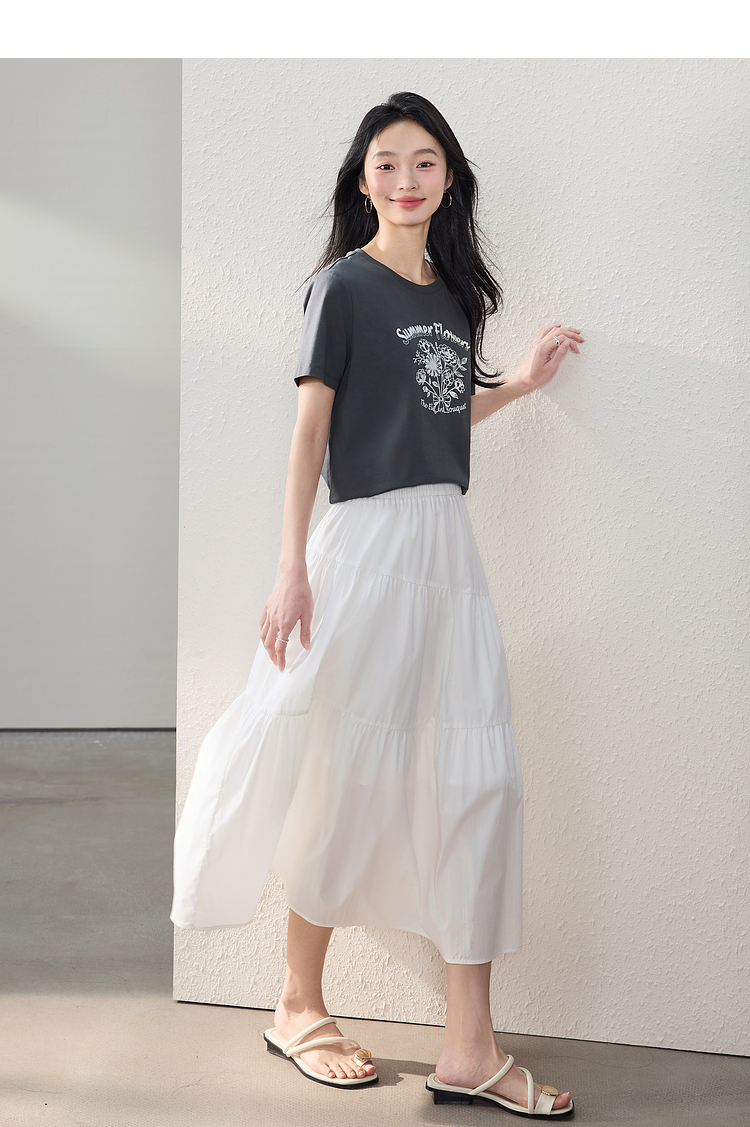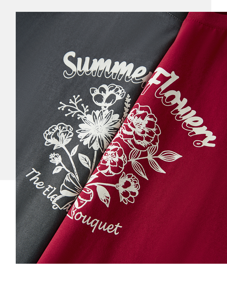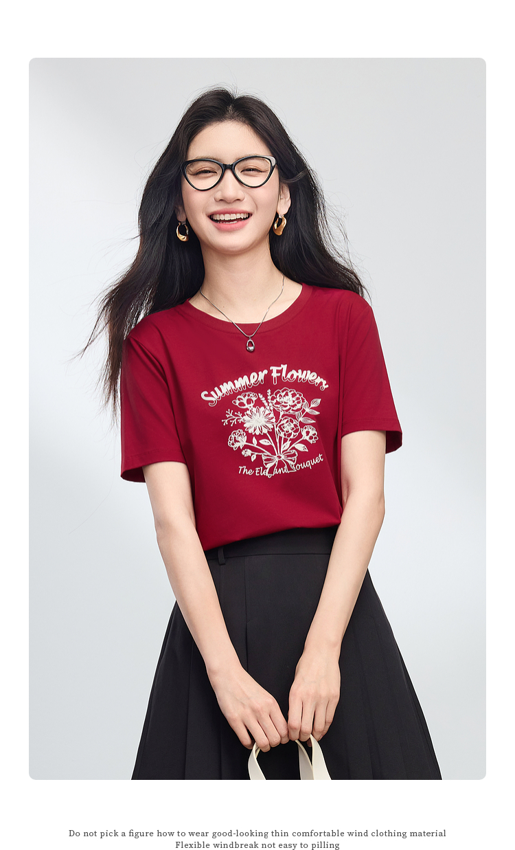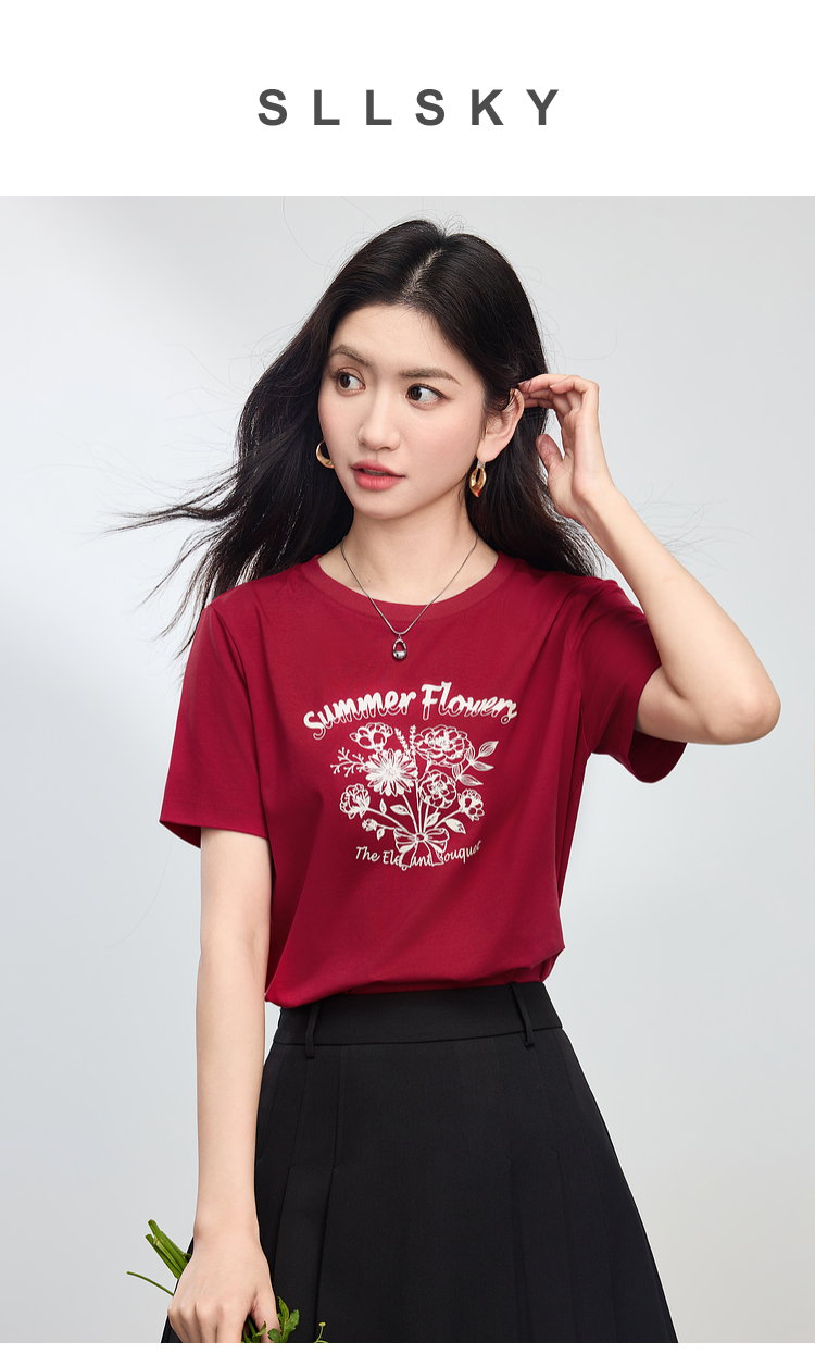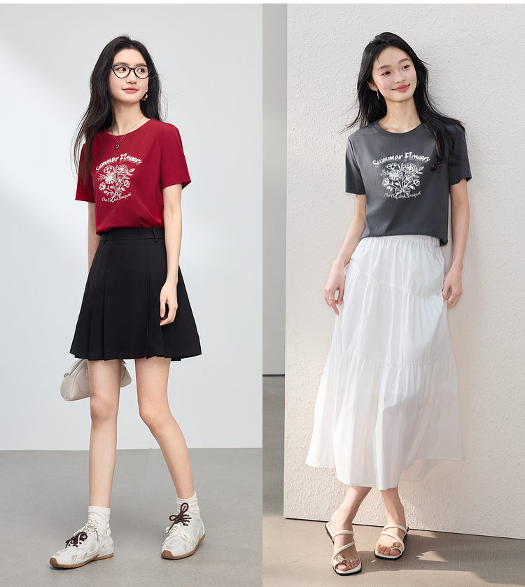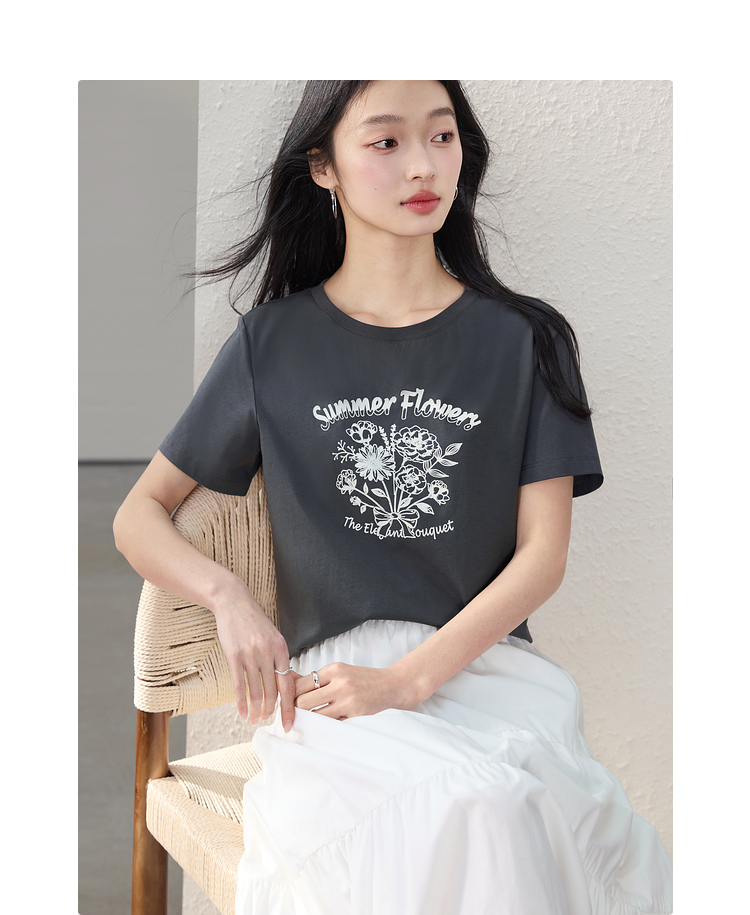 【专属特价】熙世界荷叶莲花印花正肩T恤女夏季2025新款宽松显瘦圆领短袖上衣