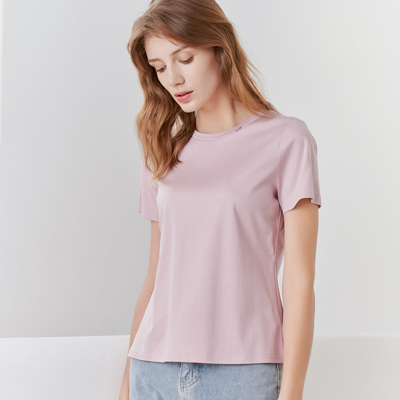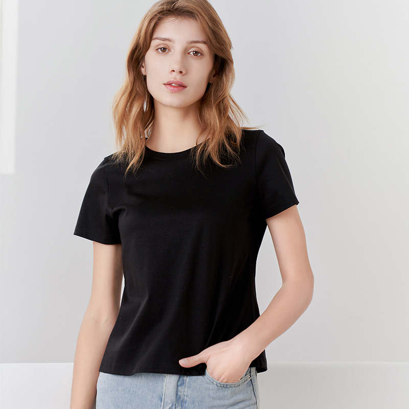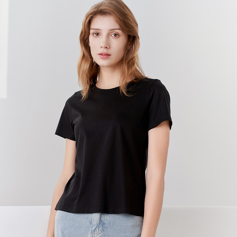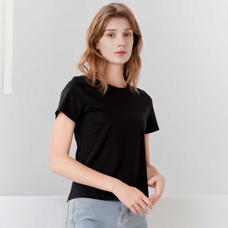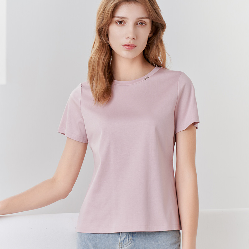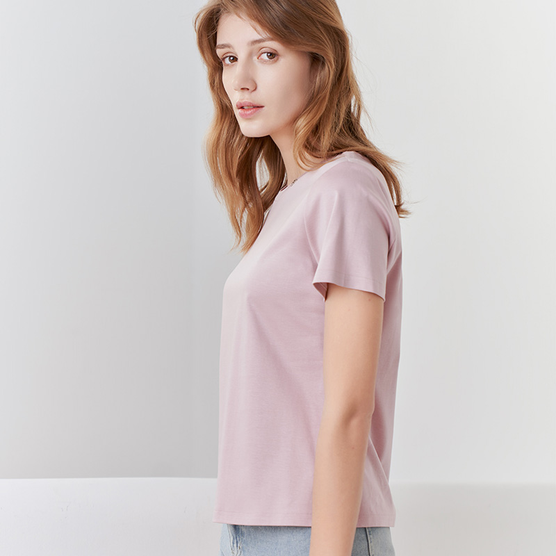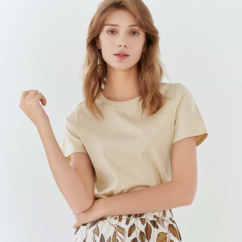 【女士圆领短袖T恤】23年春夏新品女士薄款纯色直筒薄款打底上衣