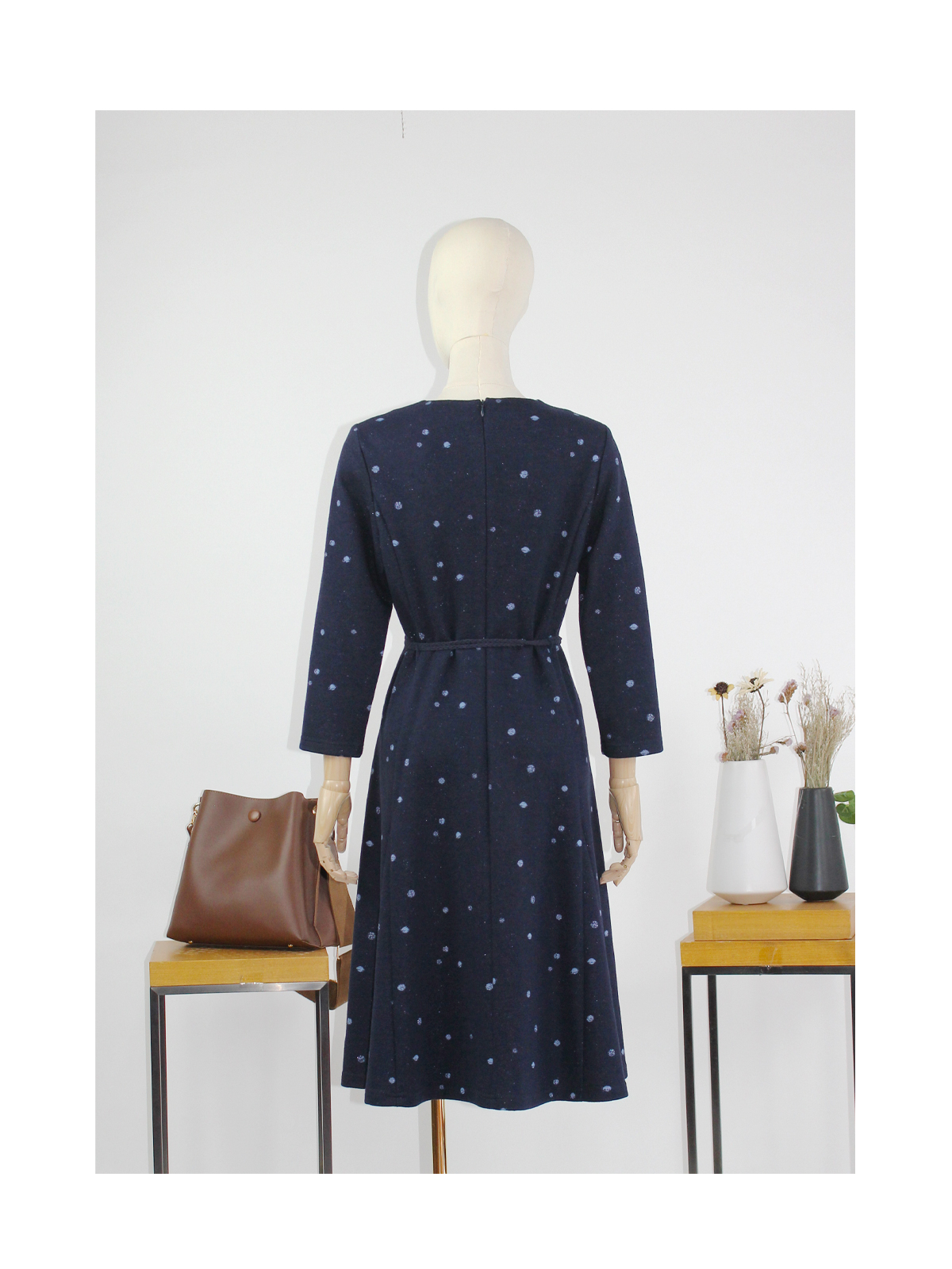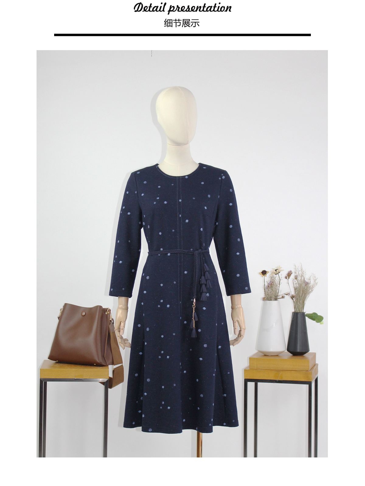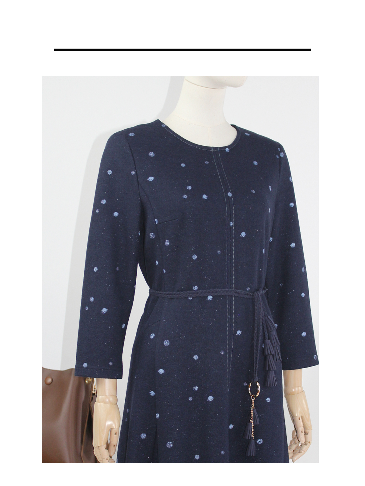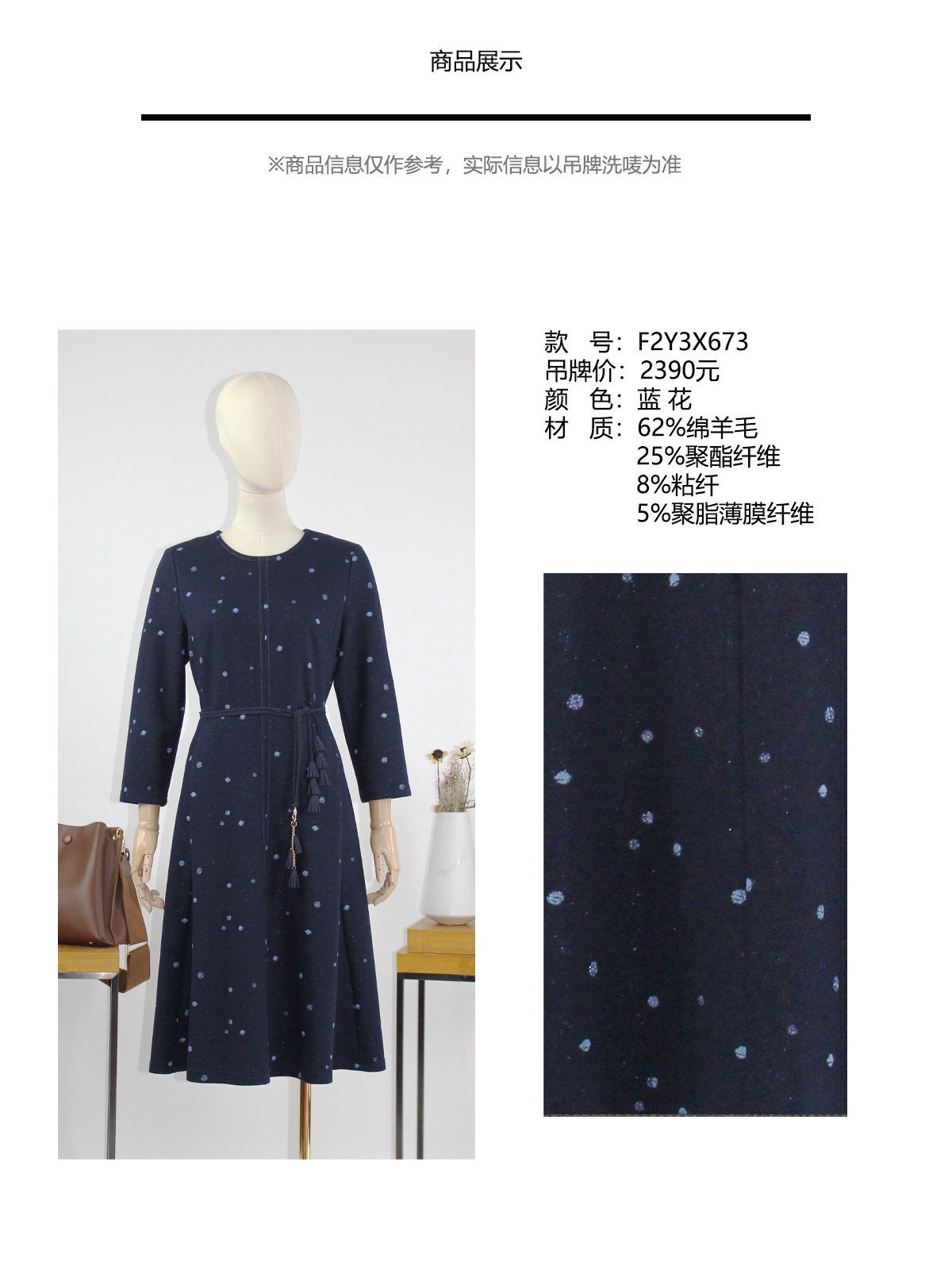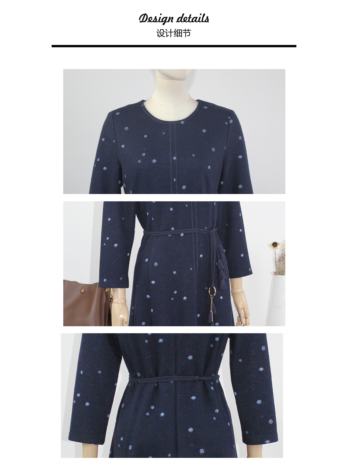 FOCALS福柯斯新款通勤圆领长袖羊毛针织中长款连衣裙F2Y3X673BV