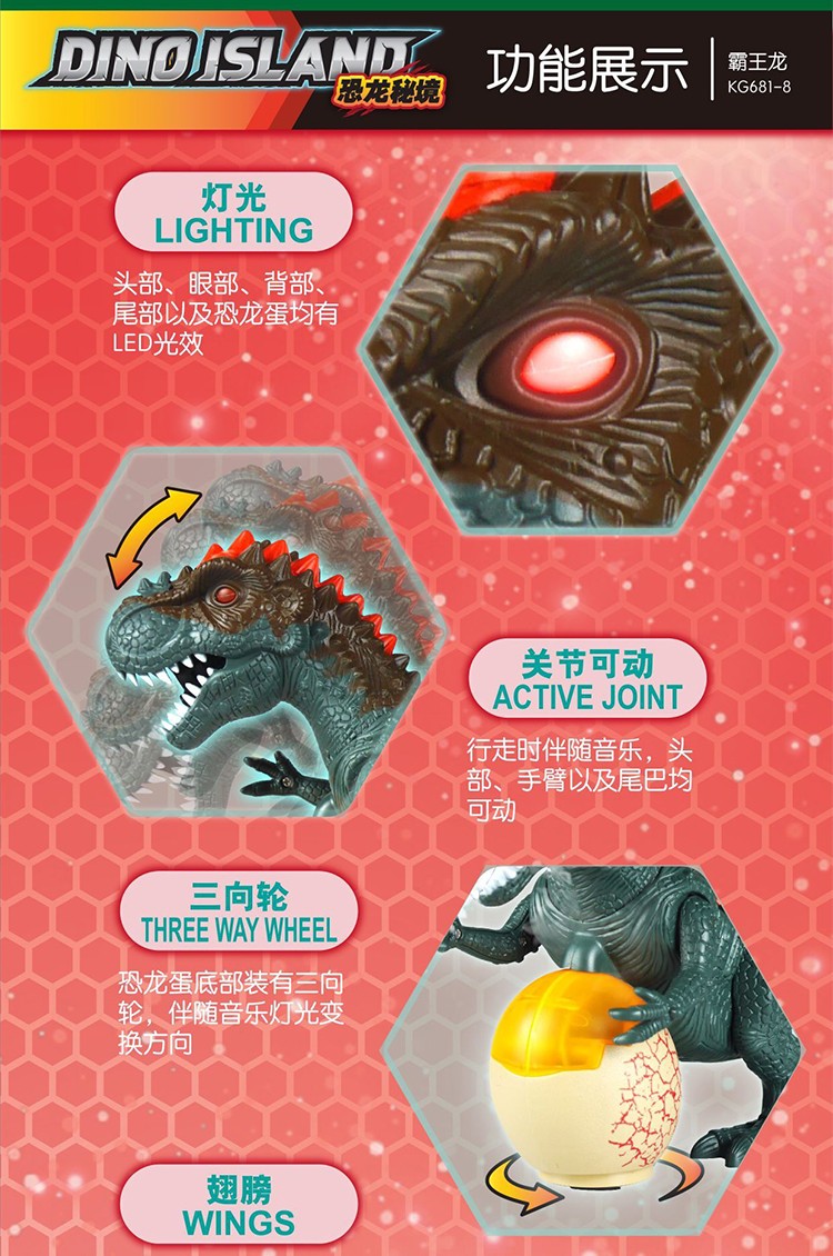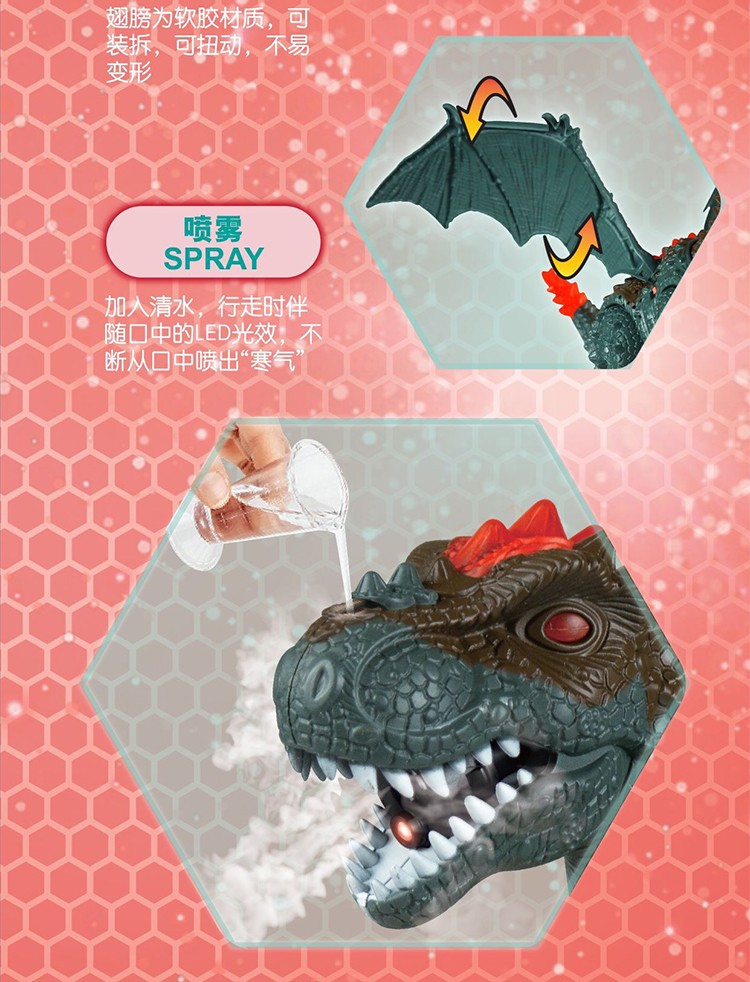 狸盒-霸王龙勇士电动/灯光/音乐/万向轮/喷雾YS-KG681