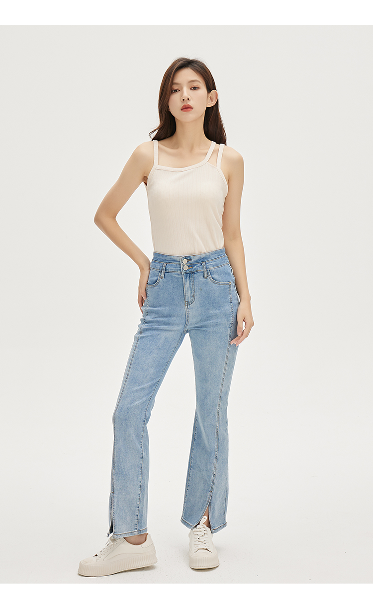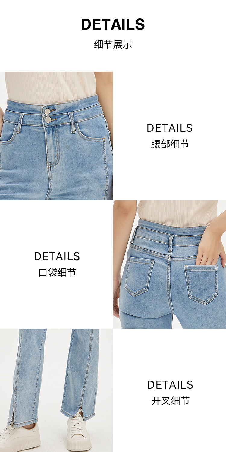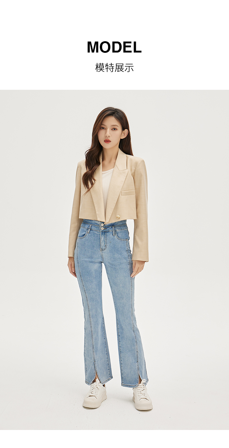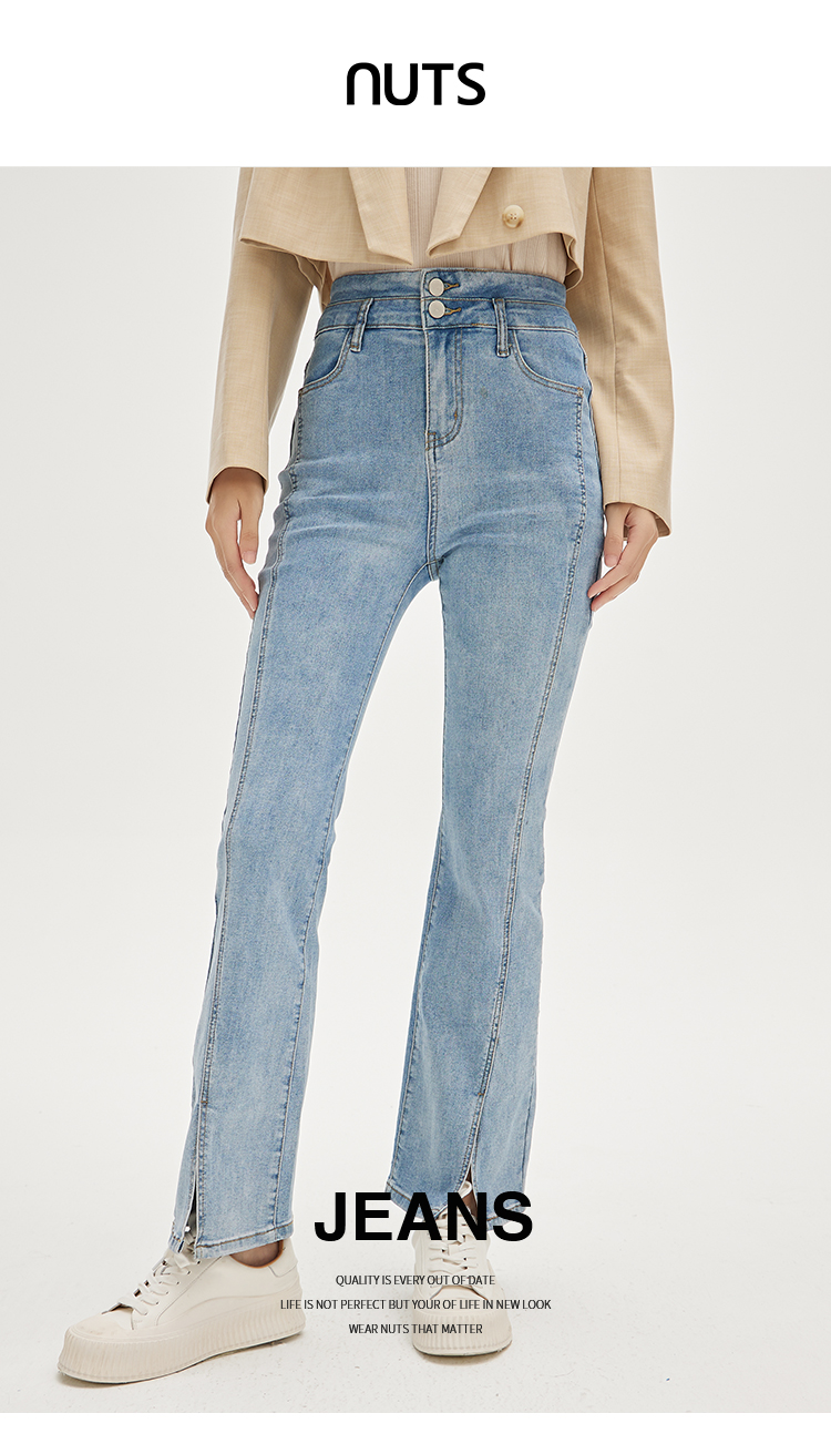 NUTS秋季新款时尚气质百搭休闲风微喇开叉水洗牛仔长裤332112065