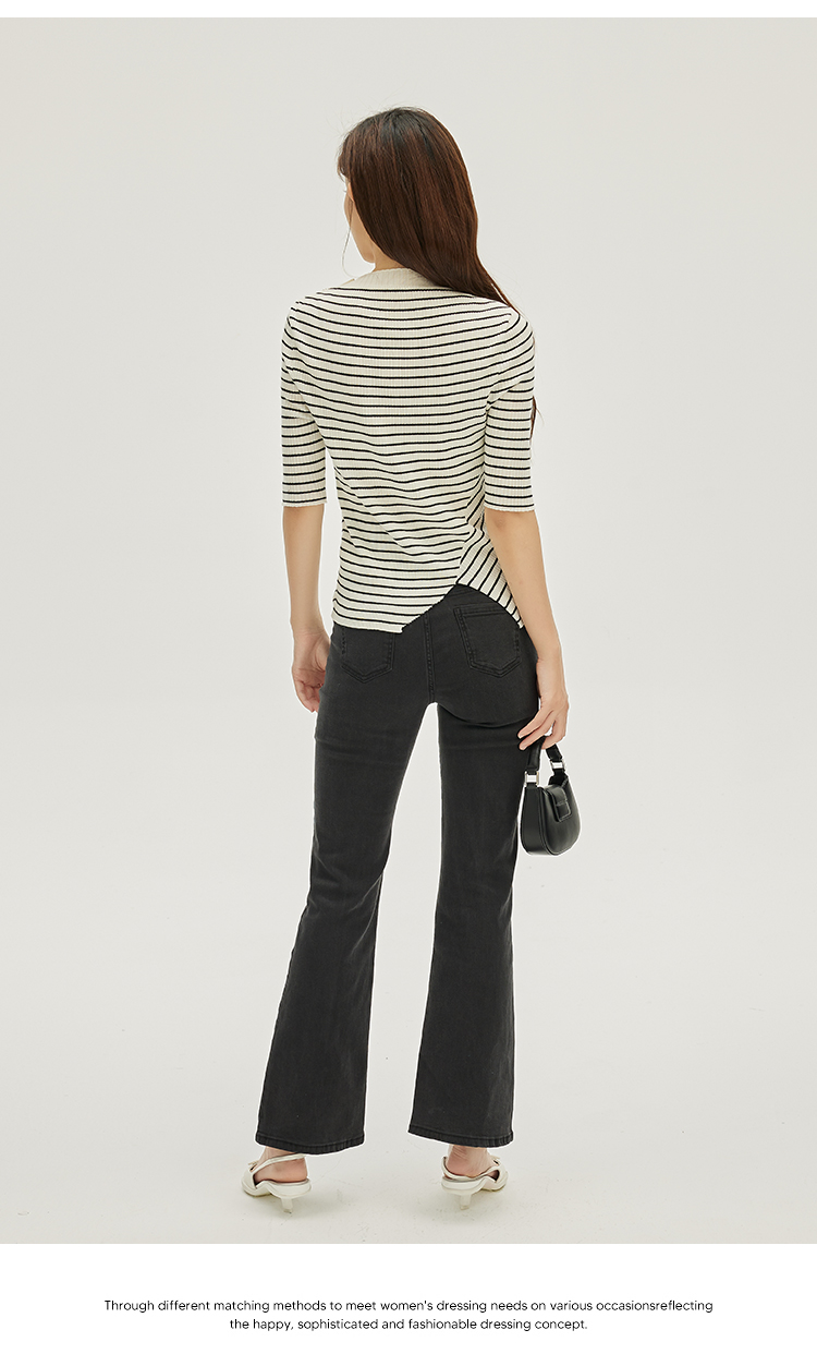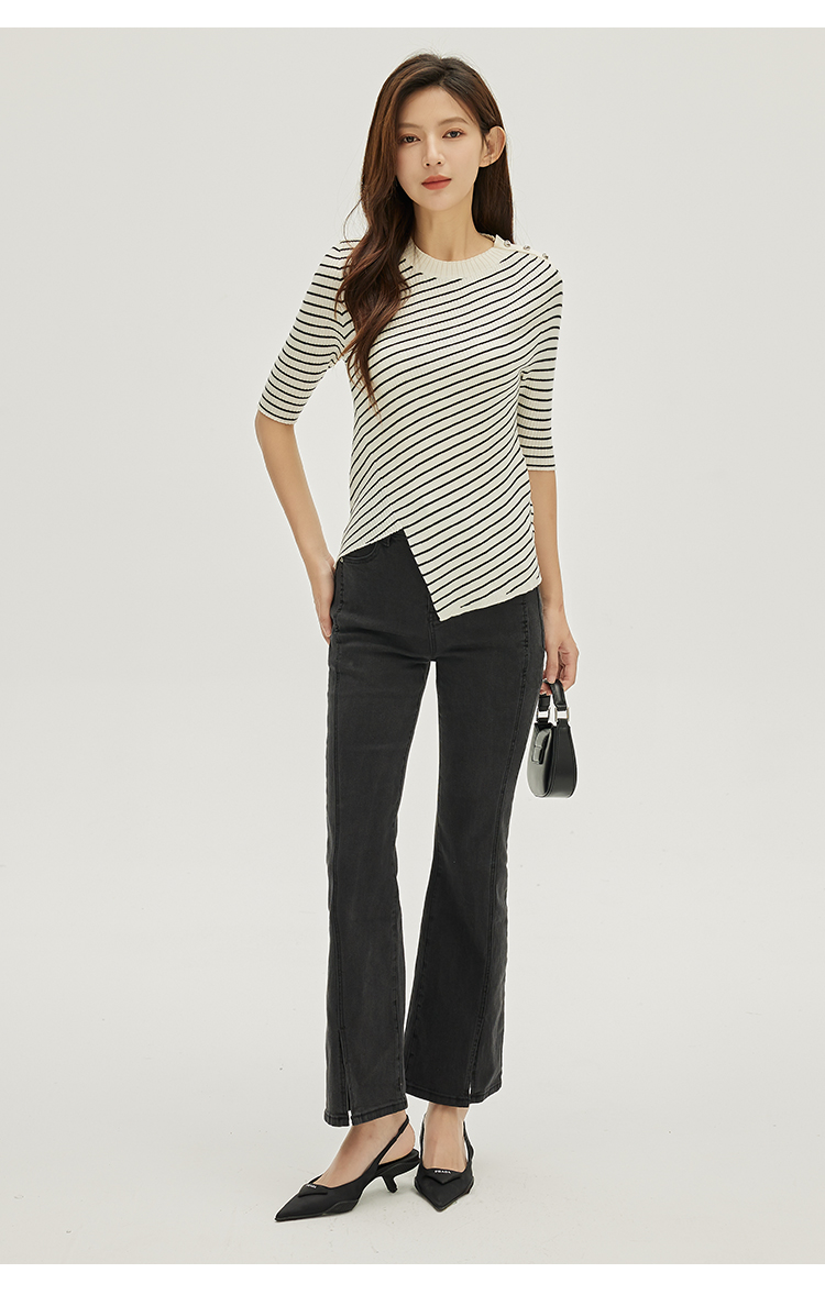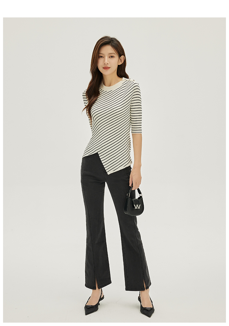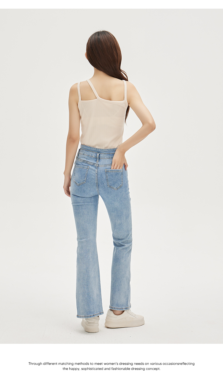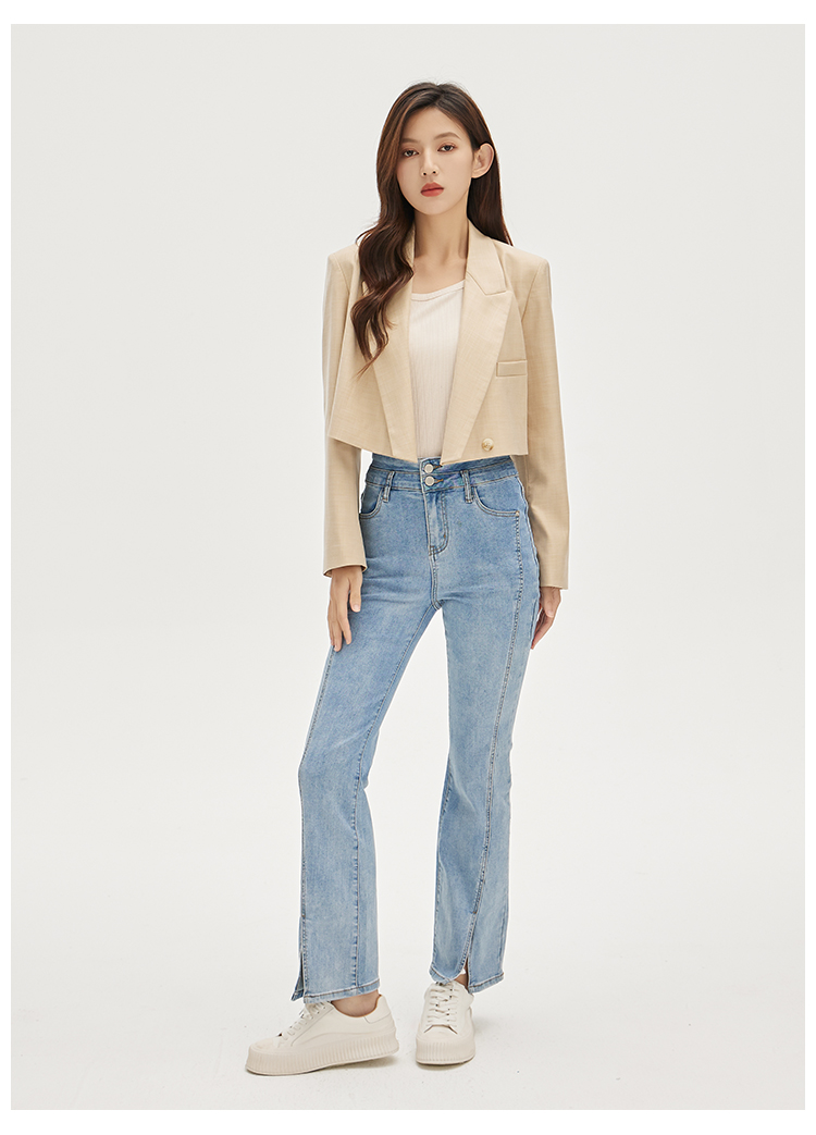 NUTS秋季新款时尚气质百搭休闲风微喇开叉水洗牛仔长裤332112065