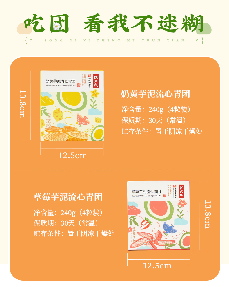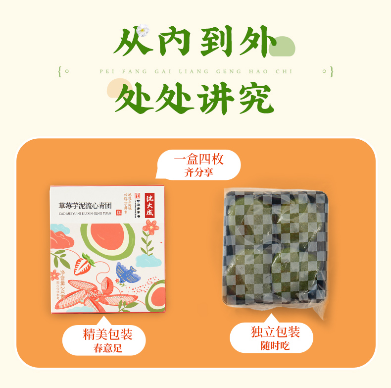 沈大成 草莓/奶黄芋泥流心青团 240克*3盒 保质期30天