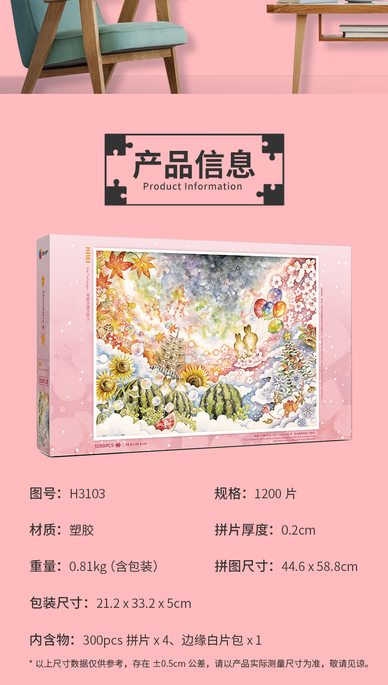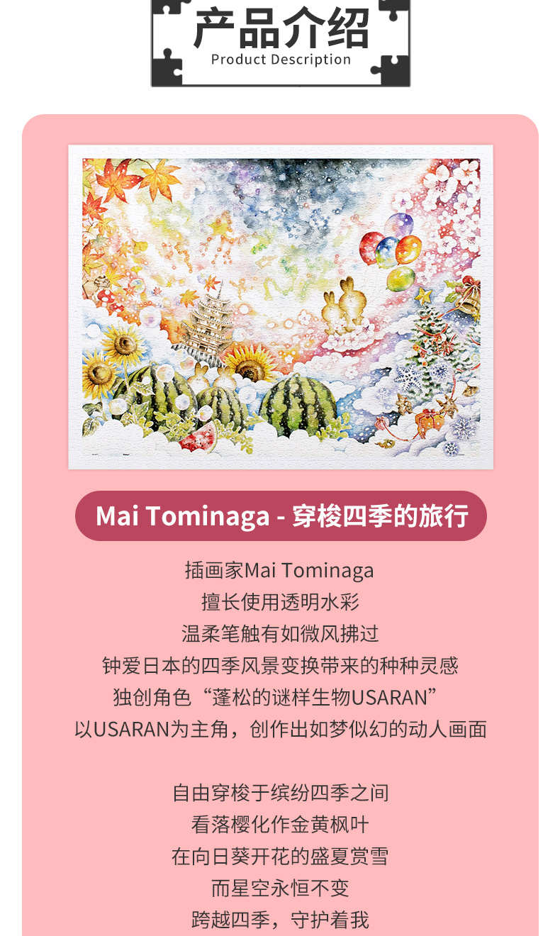 【折扣商品 不退不换】1200片平面拼图塑料拼图 H3103 Mai Tominaga-穿梭四季的旅行