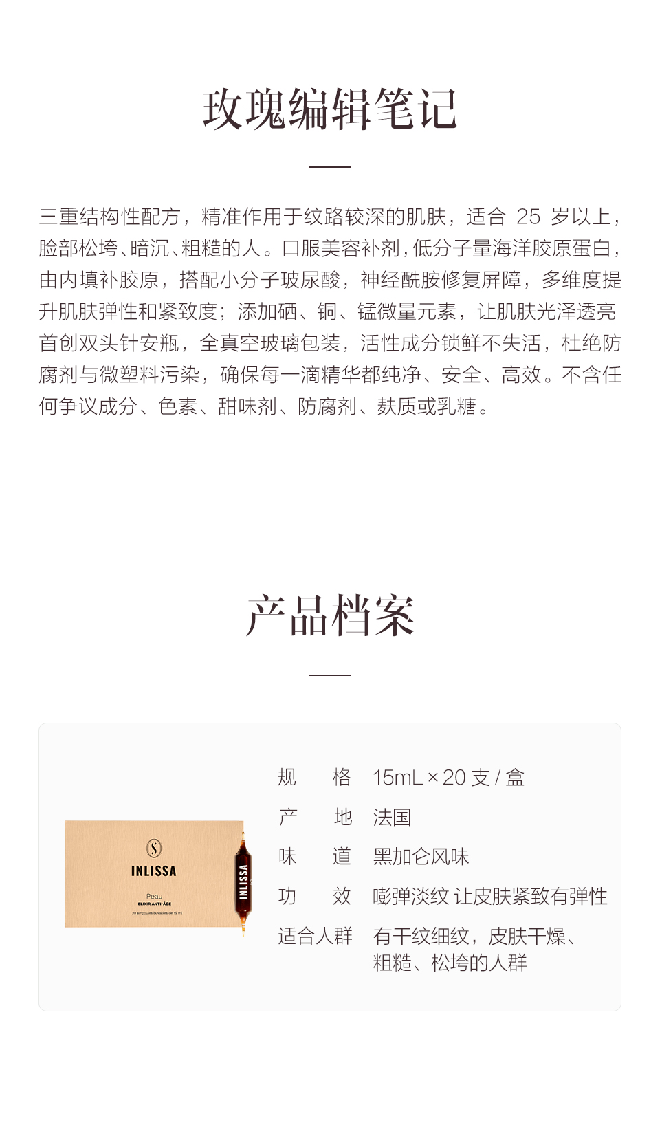 保税直发 INLISSA 嘭弹冻龄双针饮 15mLx20支/盒 1盒装/2盒装