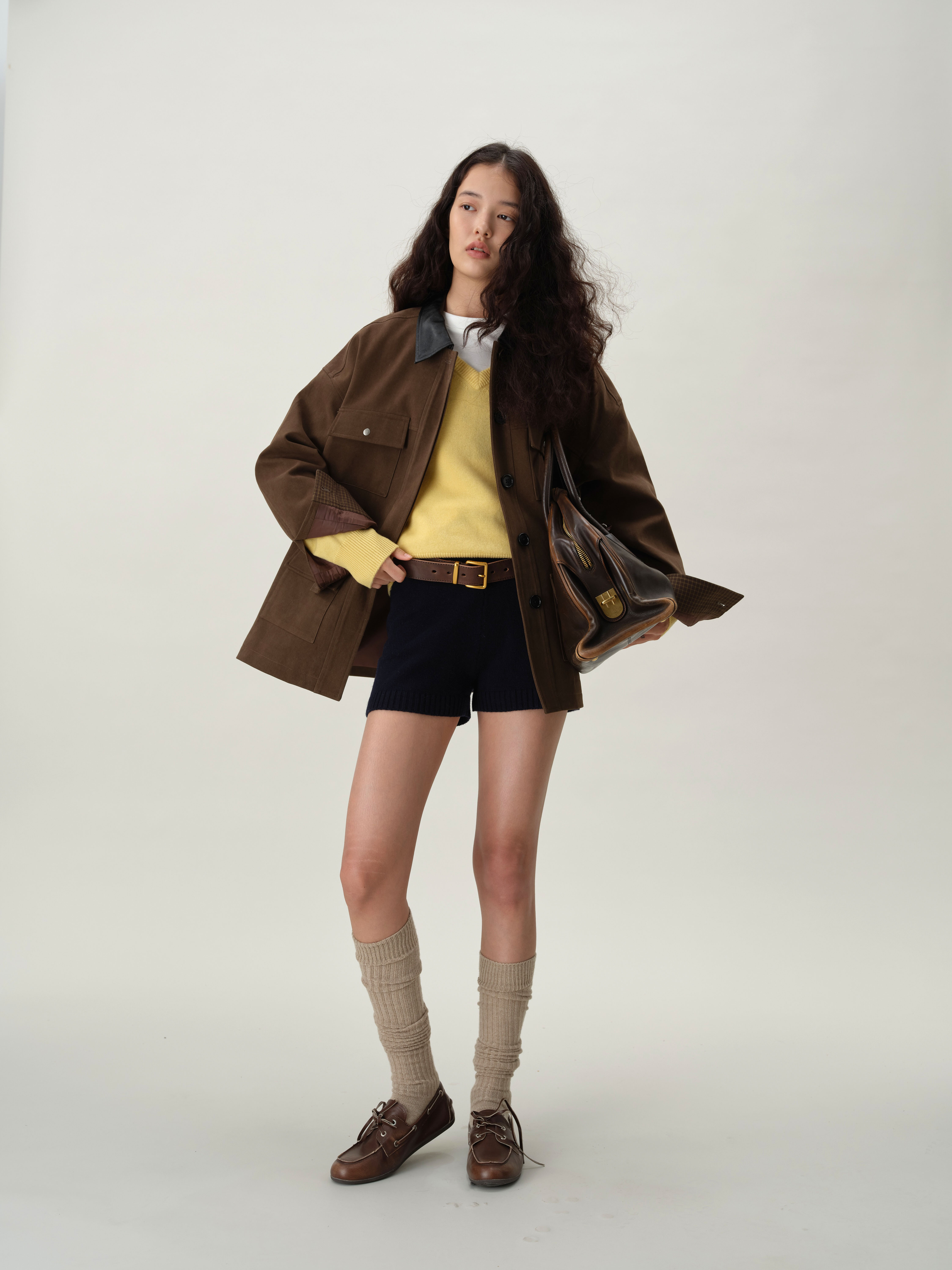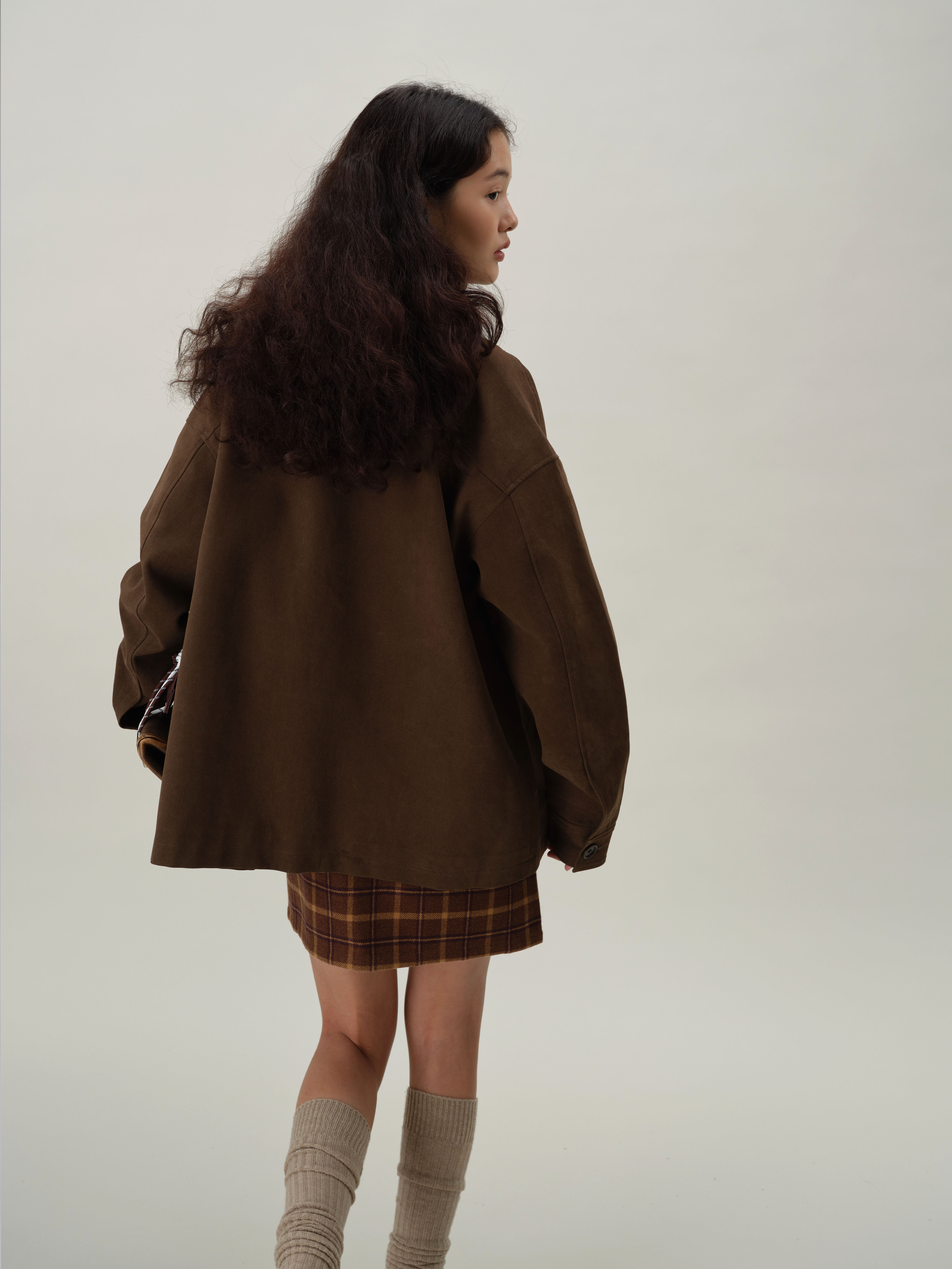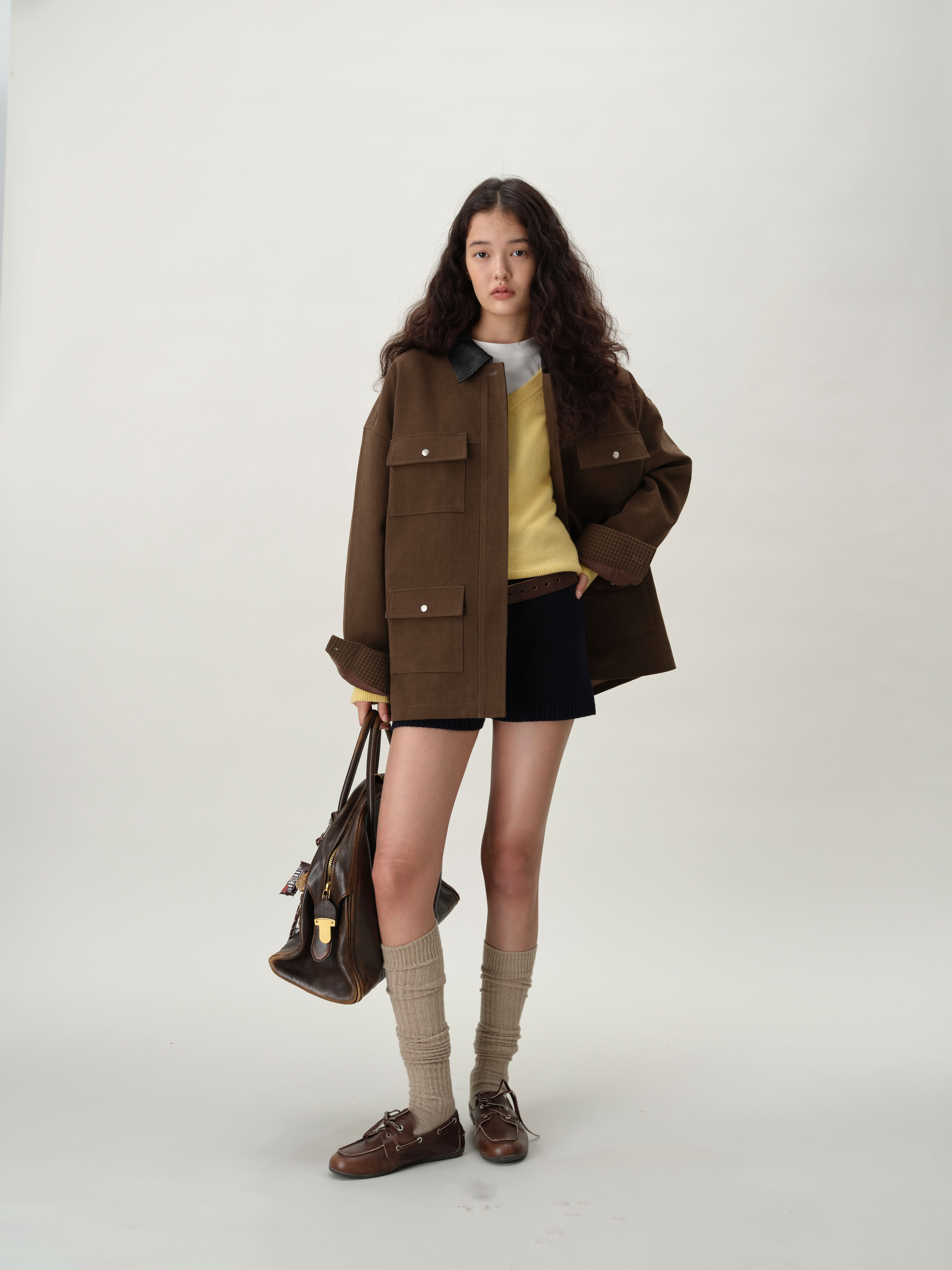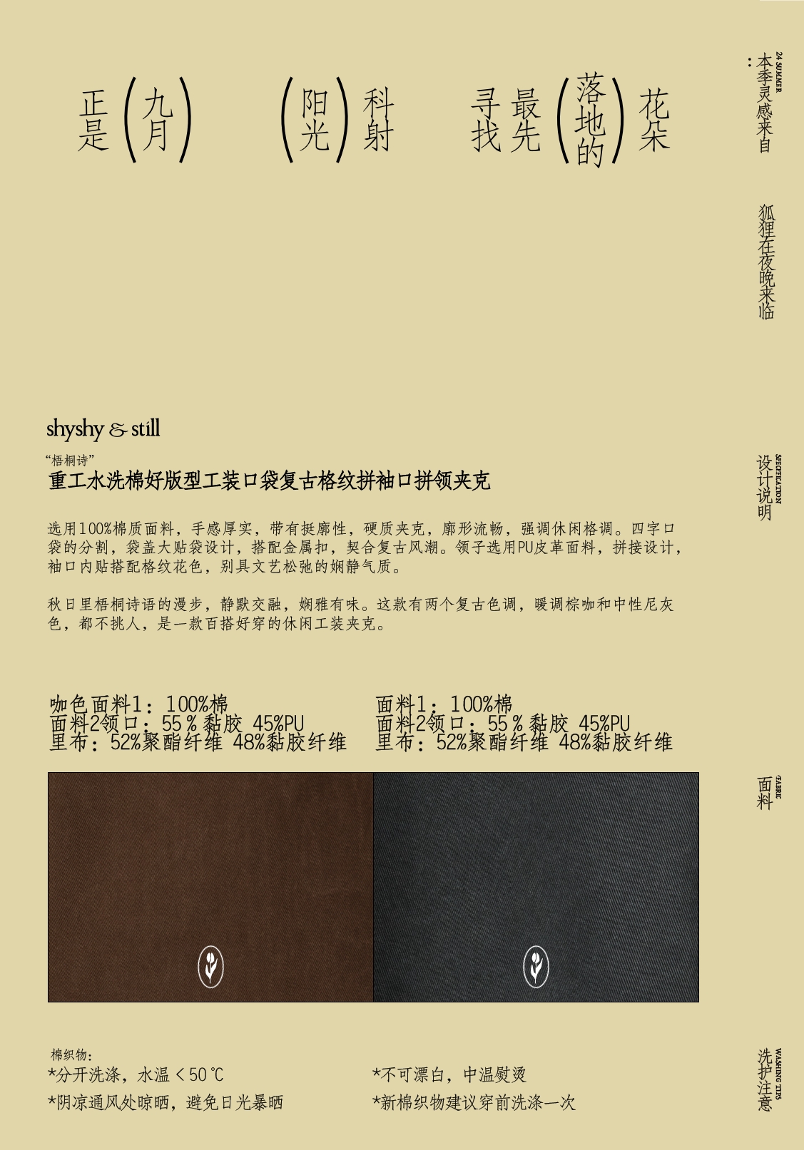 shyshystill/shy202408008/重工水洗棉好版型工装口袋格纹拼袖口拼领夹克