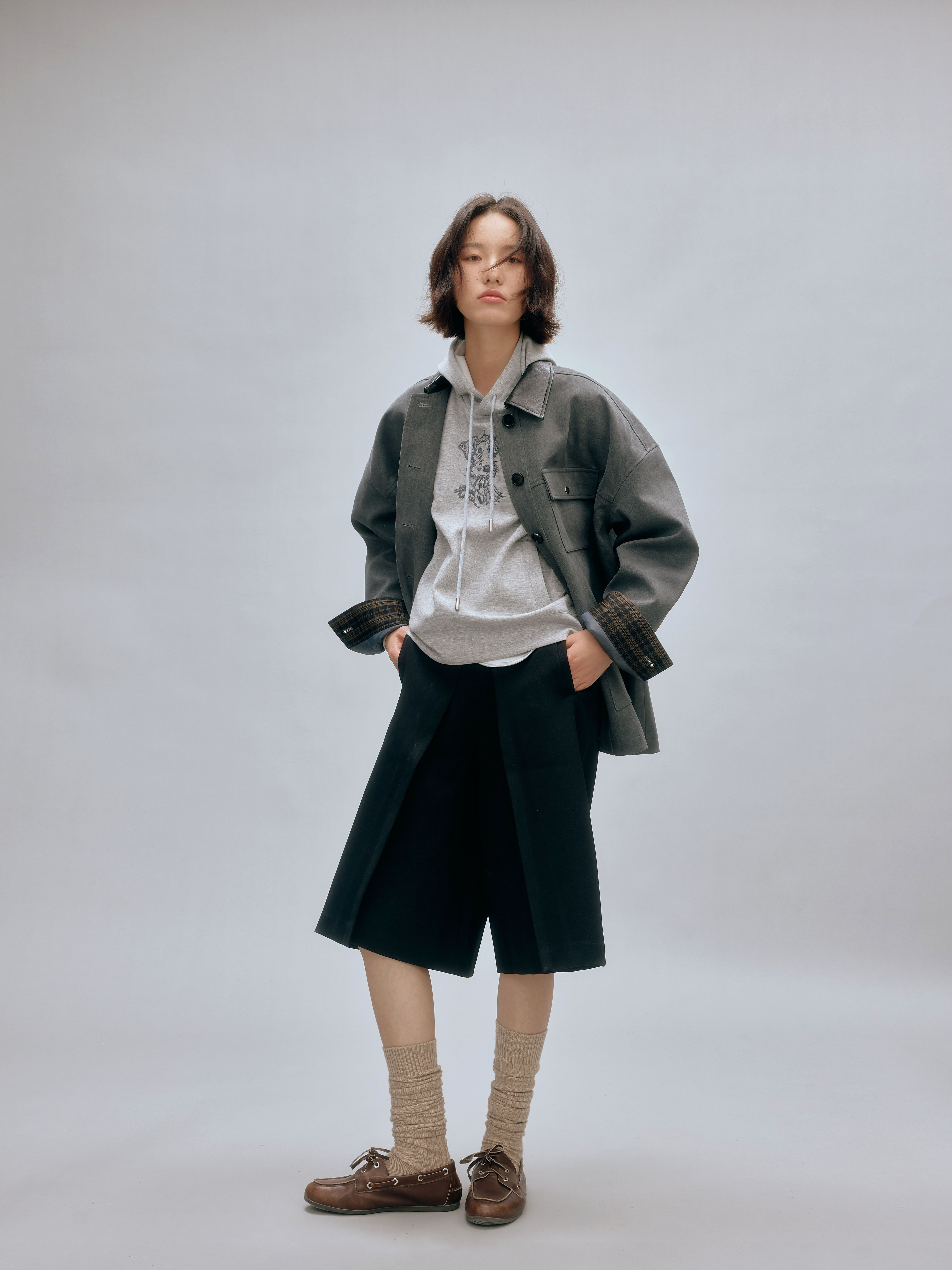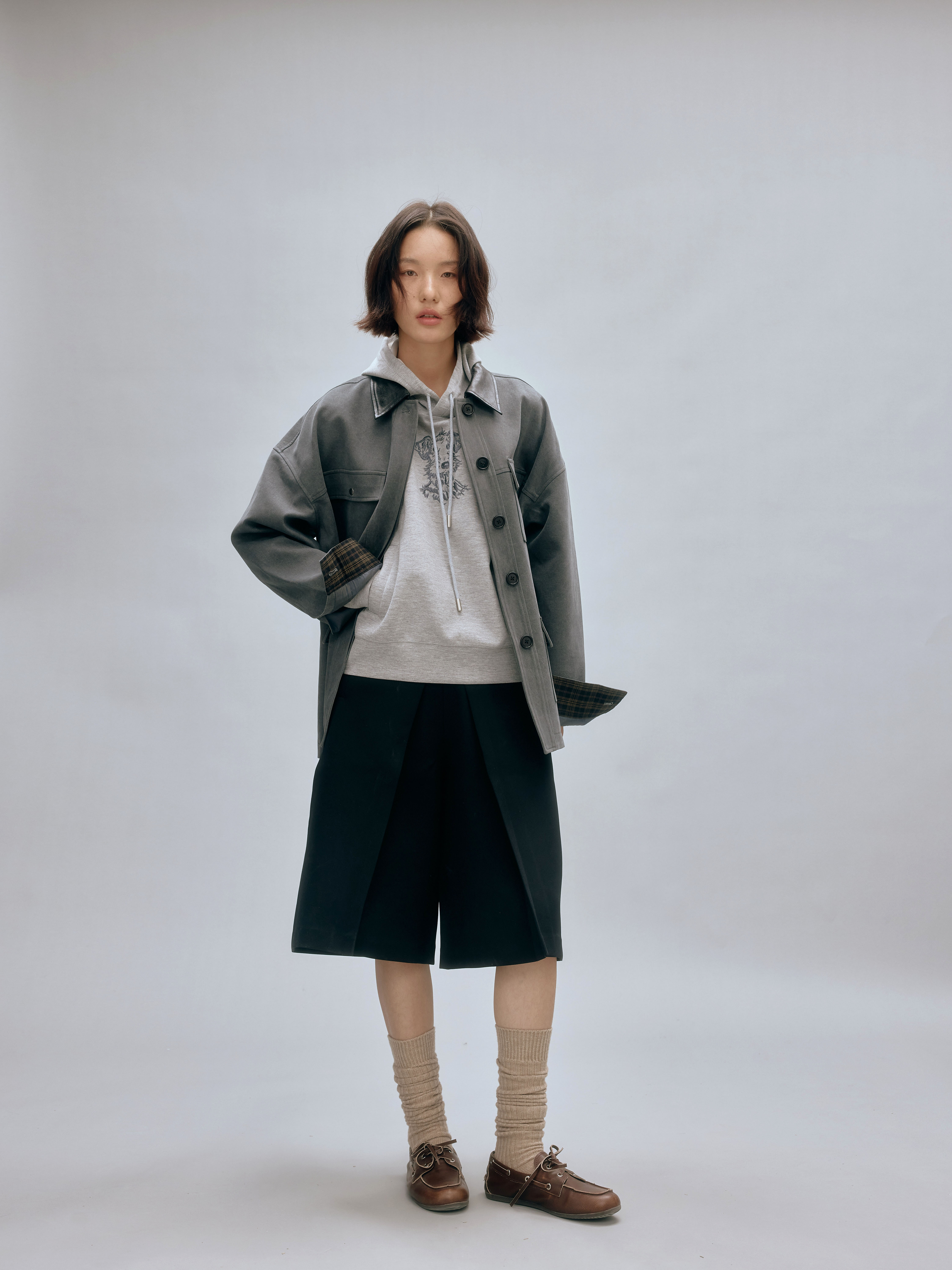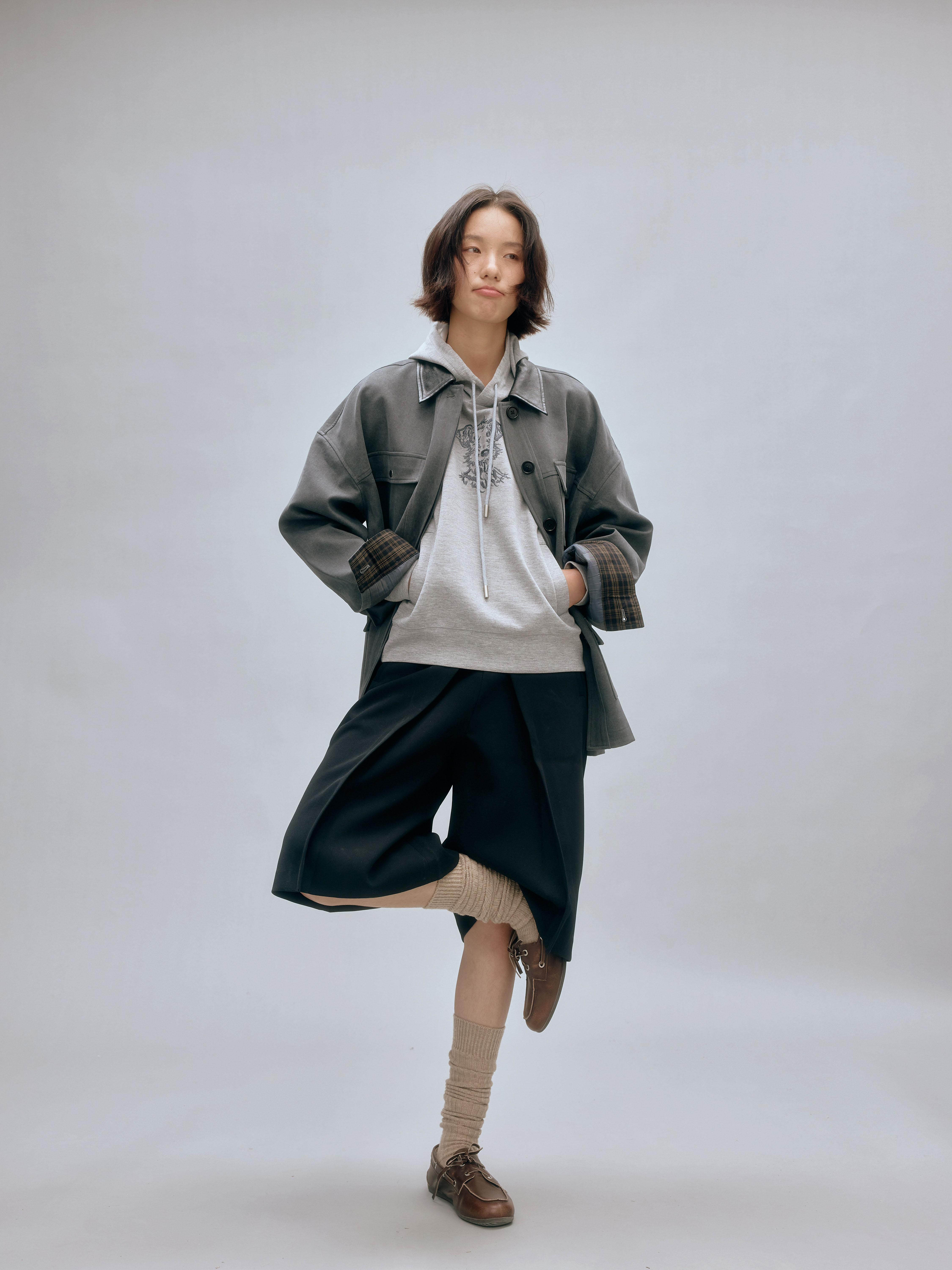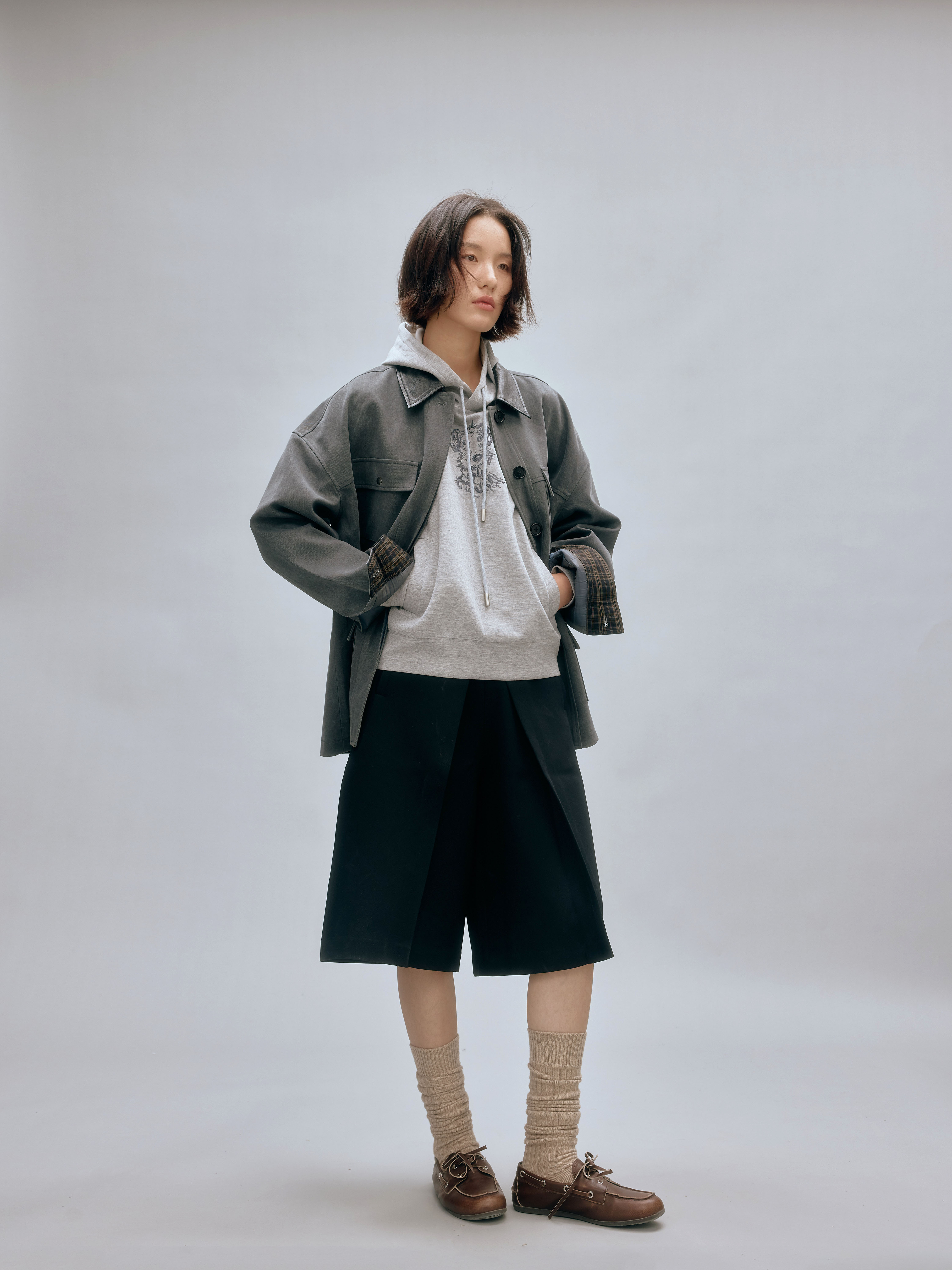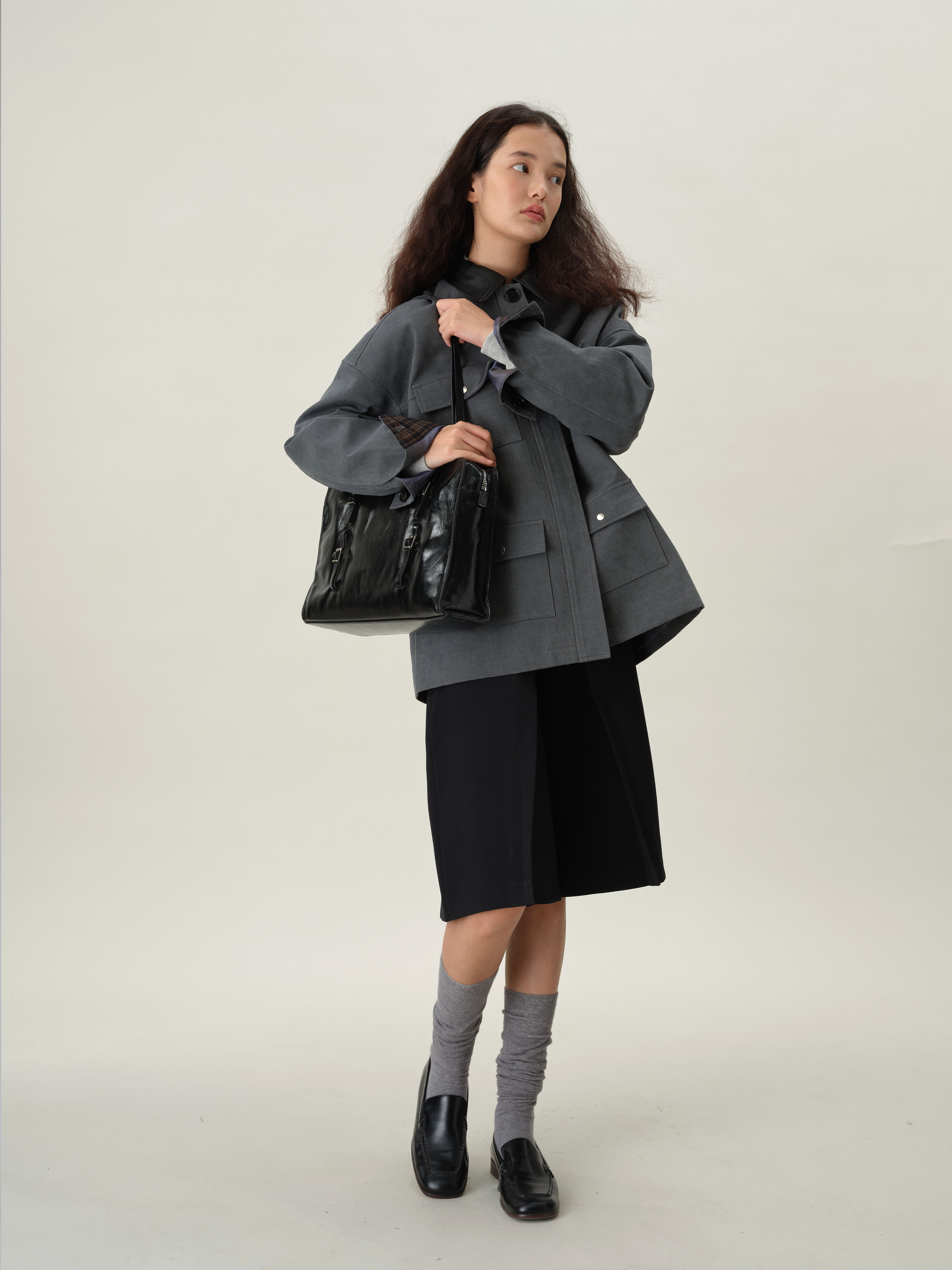shyshystill/shy202408008/重工水洗棉好版型工装口袋格纹拼袖口拼领夹克