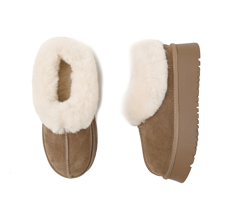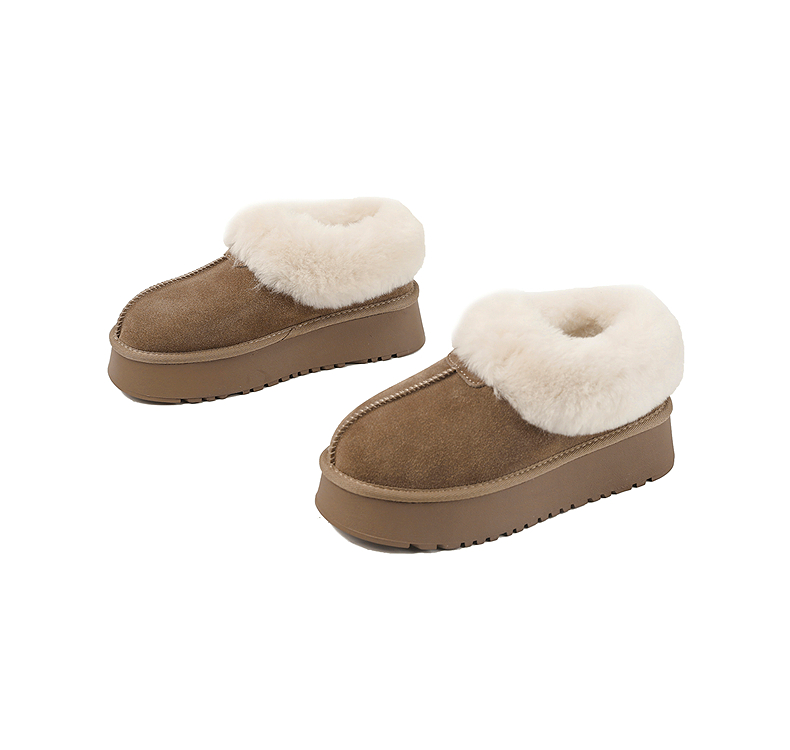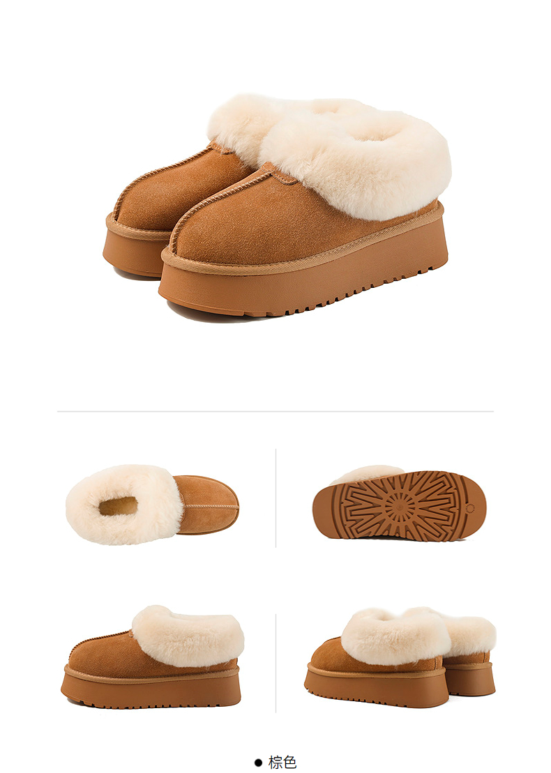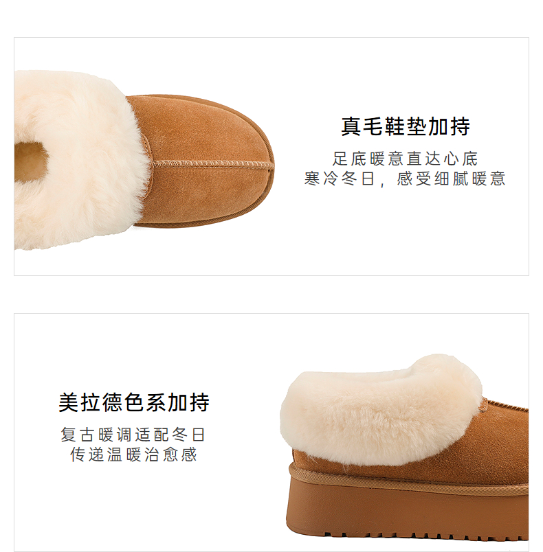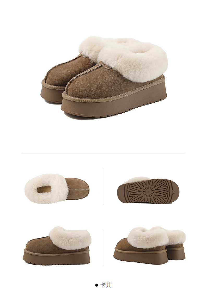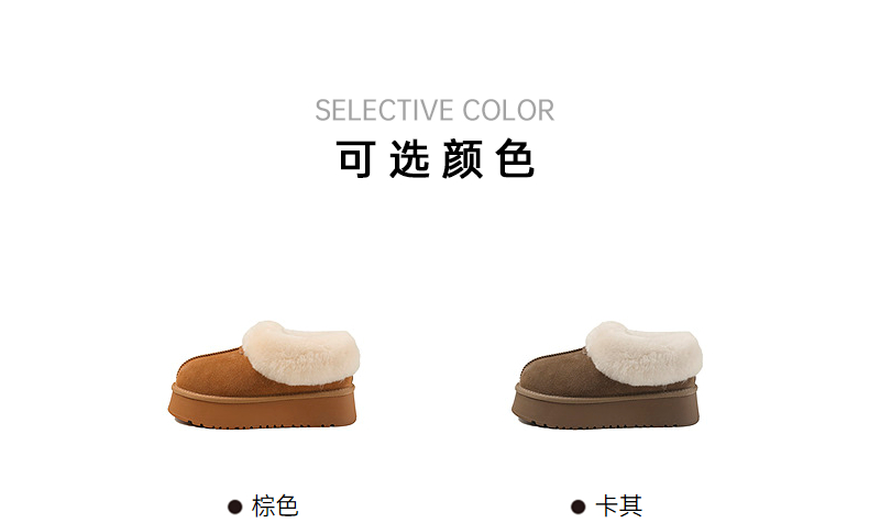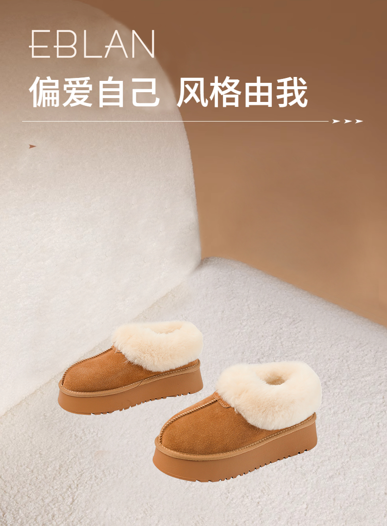伊伴冬季复古美拉德色系蓬松毛边雪地靴B25762150