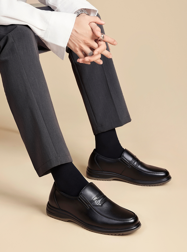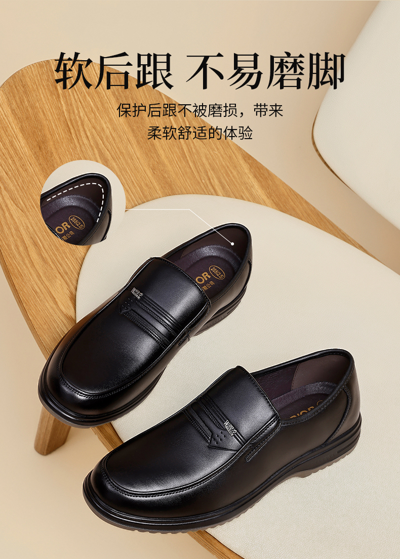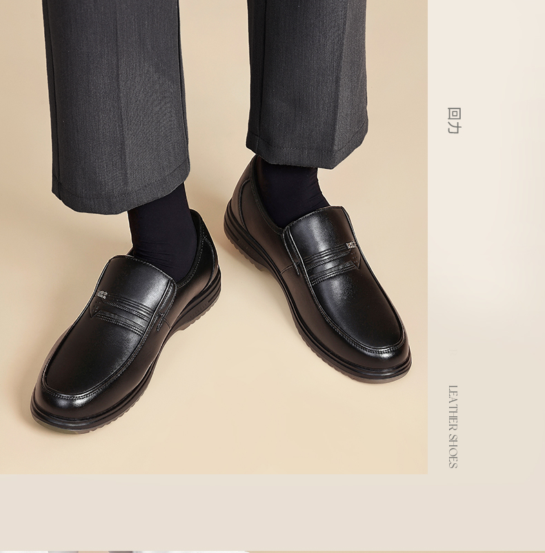 回力皮鞋男款中老年喜爸爸鞋爷爷一脚蹬男鞋上班休闲男士皮鞋子秋