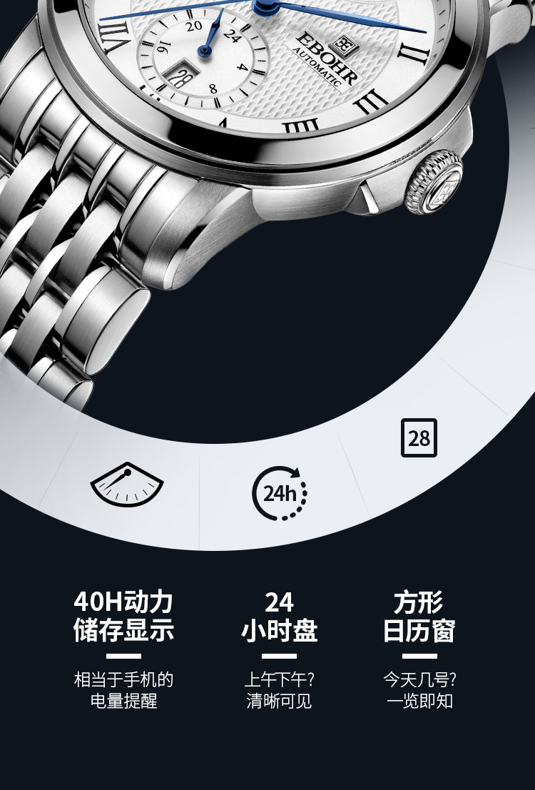 EBOHR 依波表 大师系列 男士自动机械表纳米镀膜防水实心钢带手表 1084