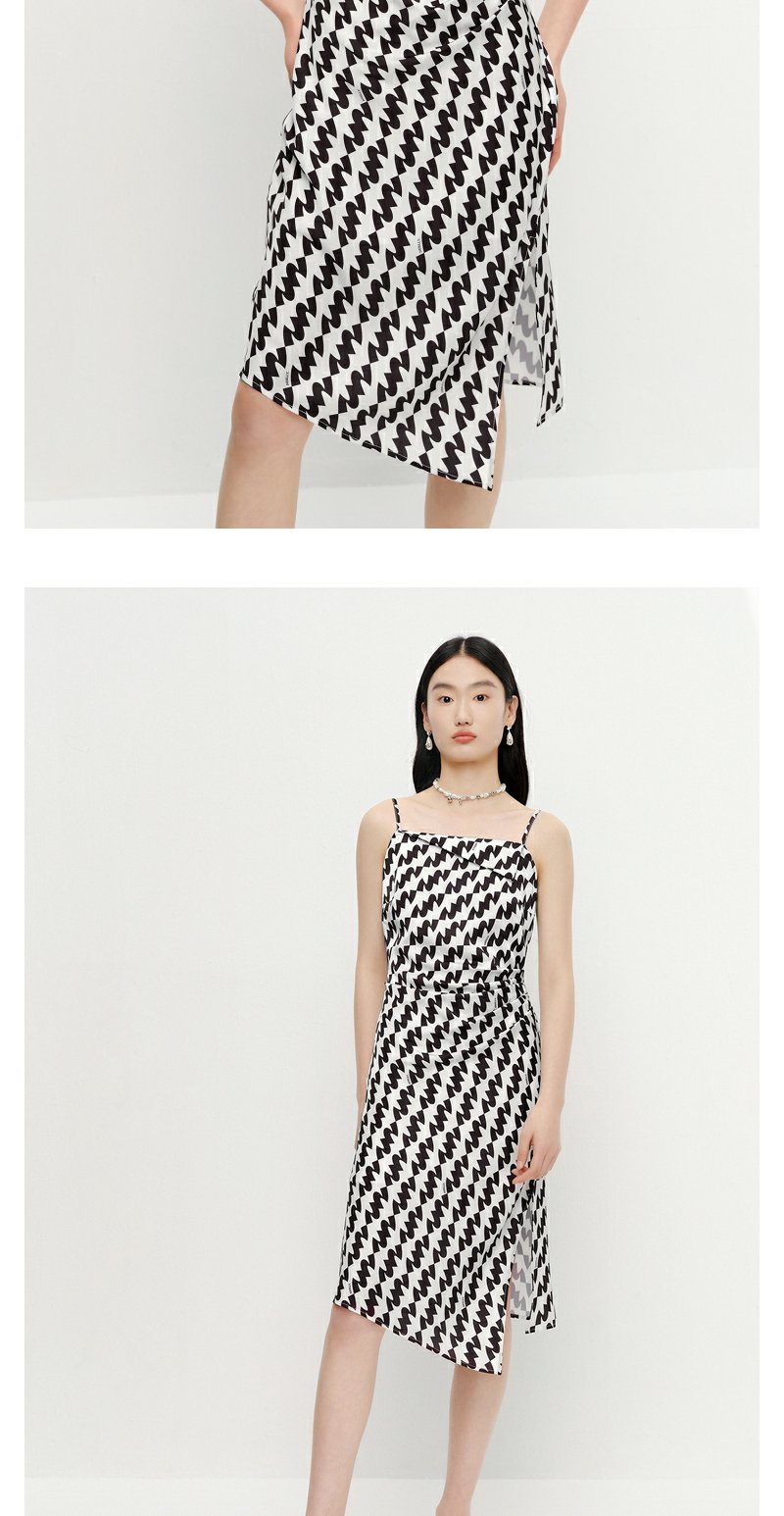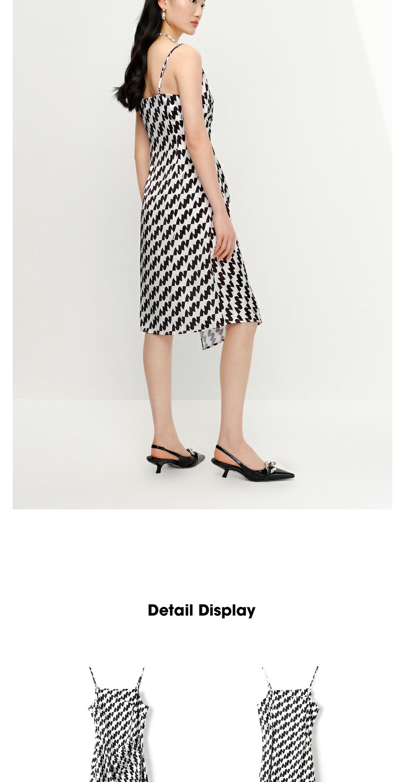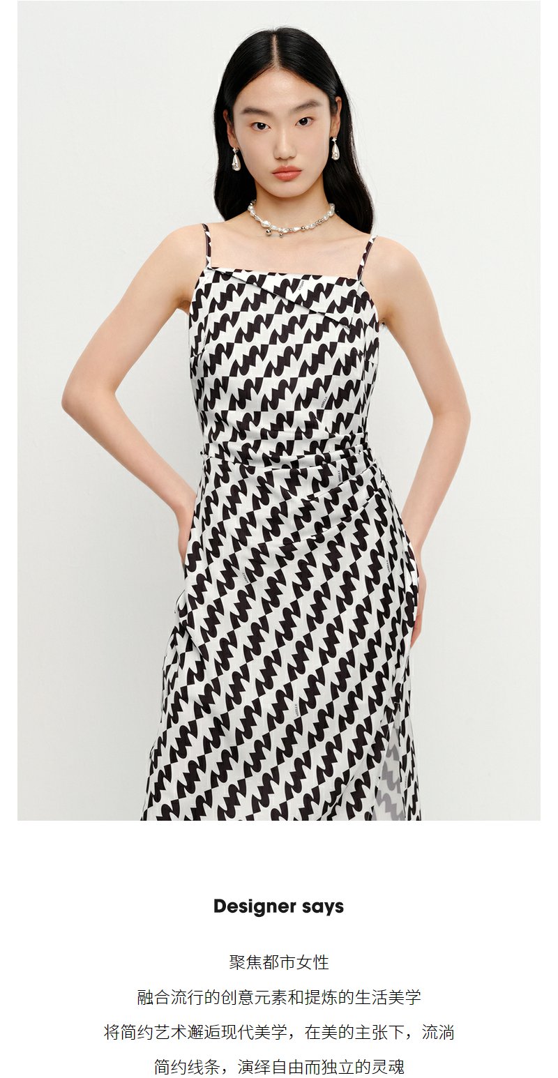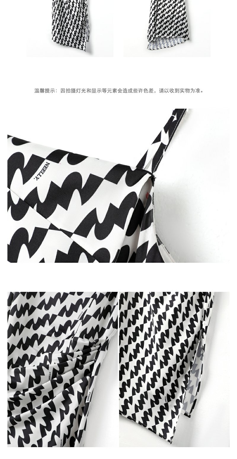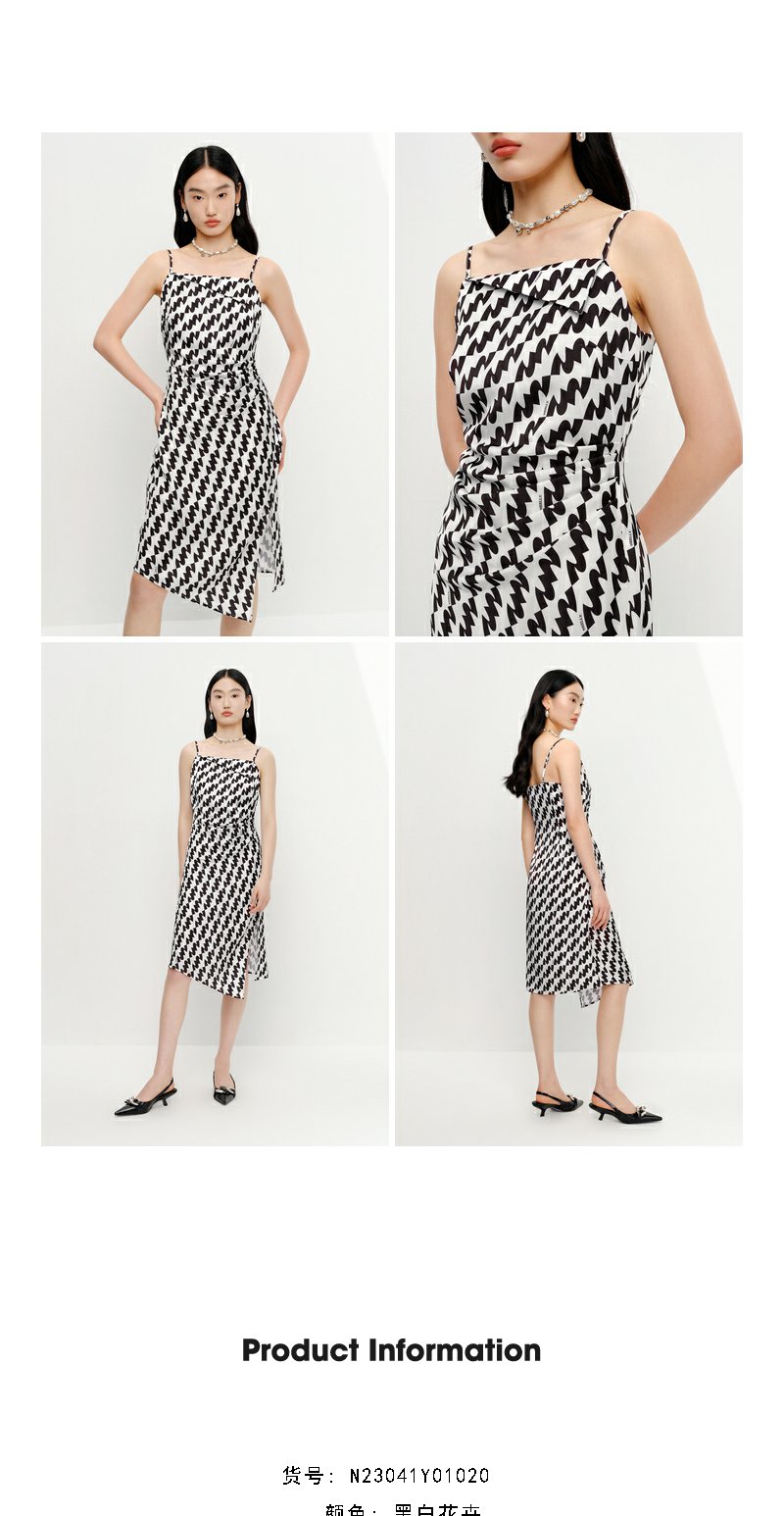 NEELLY纳俪连衣裙女中长款吊带A字裙褶皱收腰显瘦下开叉裙子时尚N23041Y01020