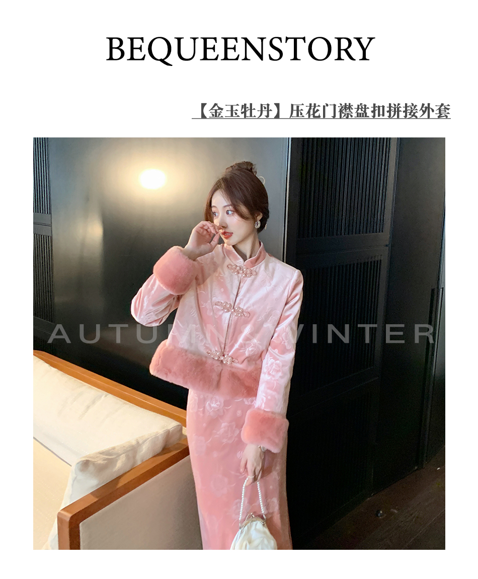 【年终福利,不退不换】 【金玉牡丹】压花升级版立体花襟盘扣拼接外套