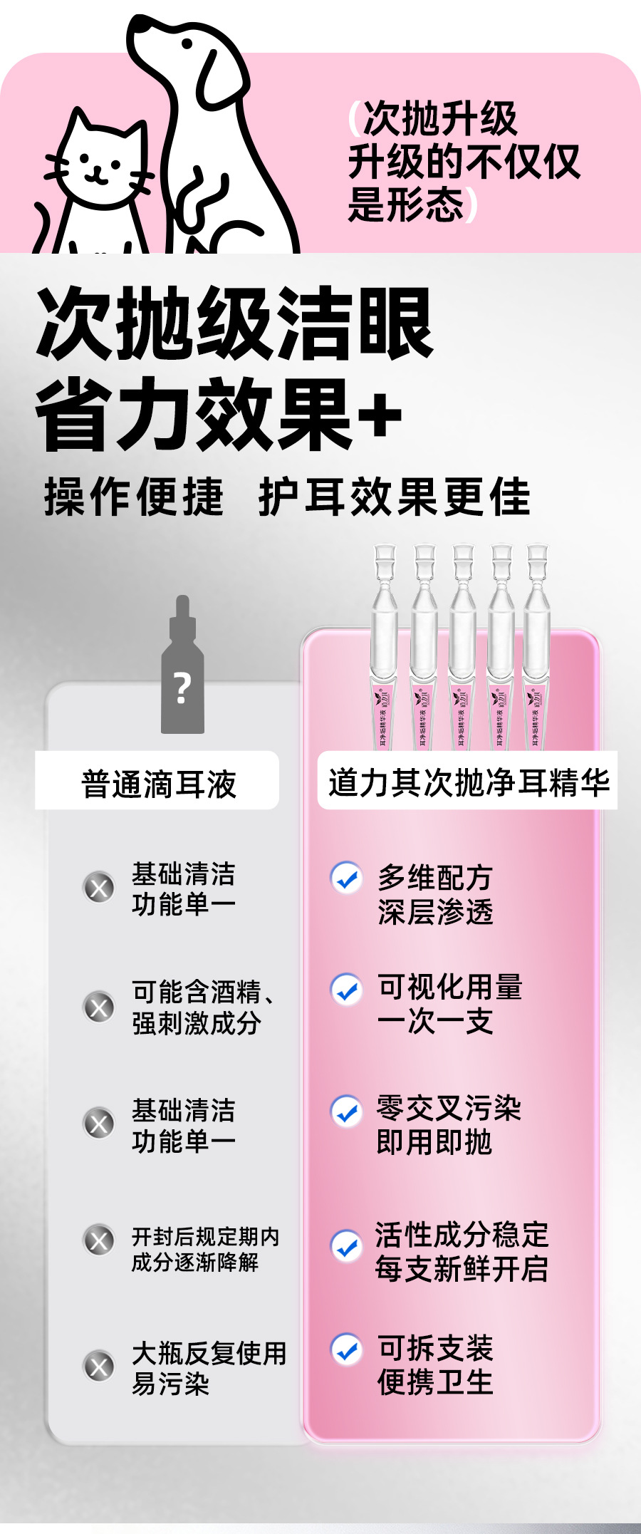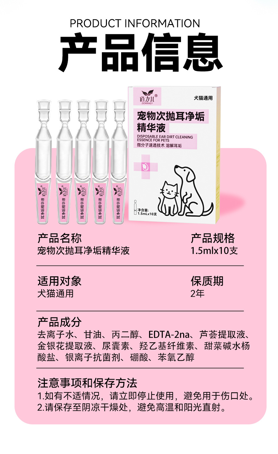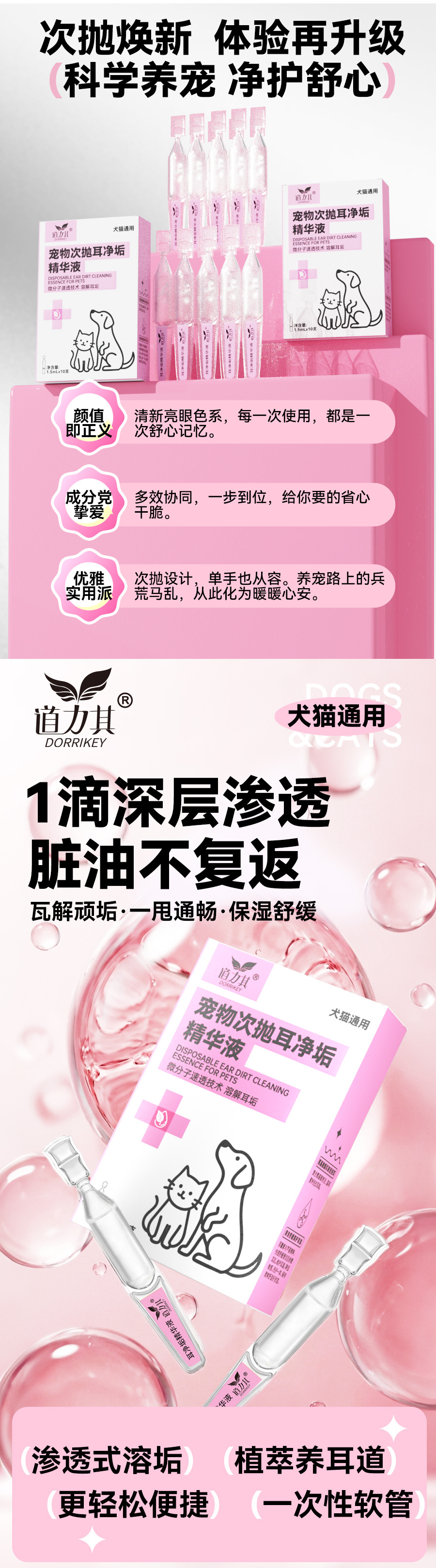 道力其宠物次抛耳液1.5mlX10支装一次性猫咪滴耳液狗狗耳部洗耳水