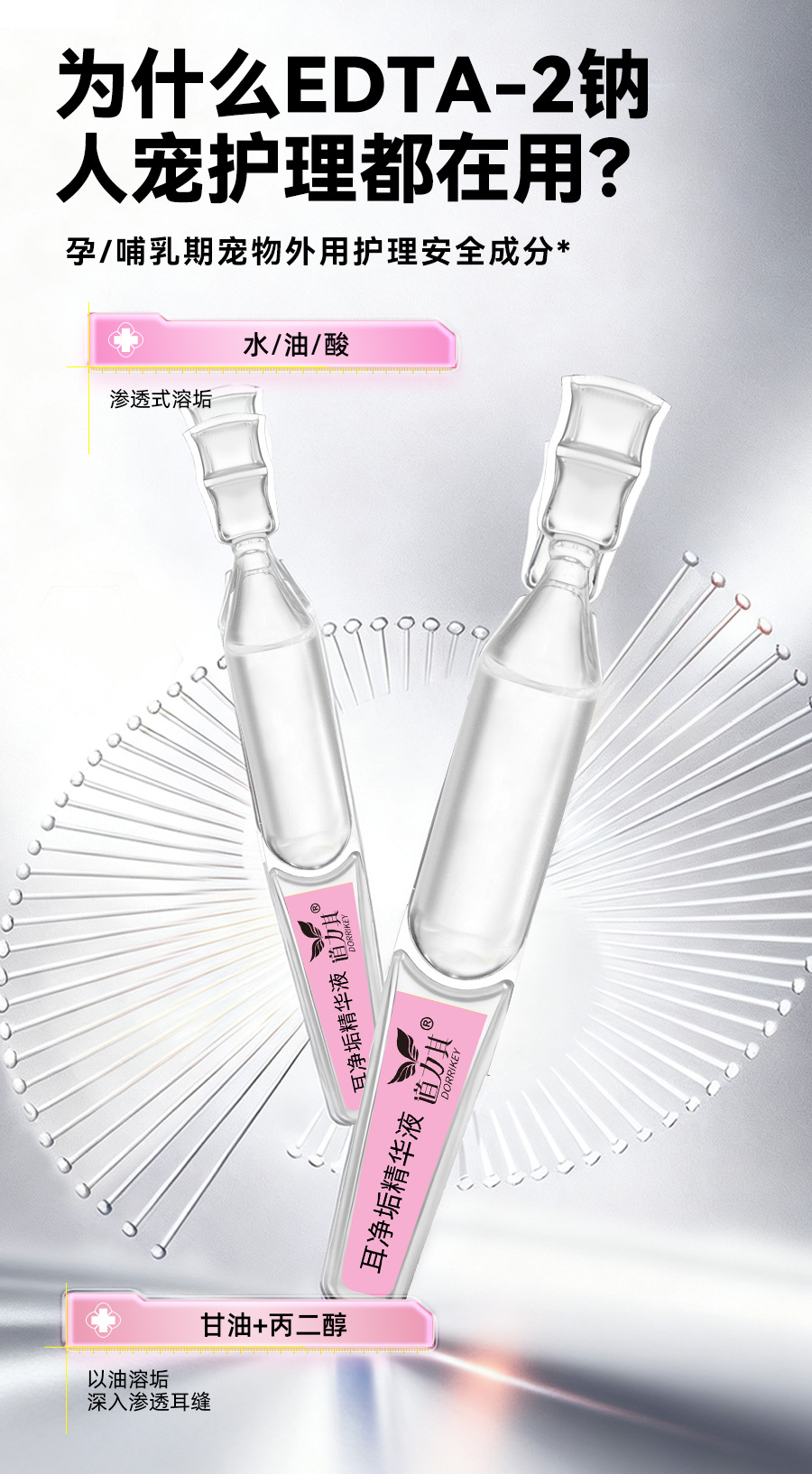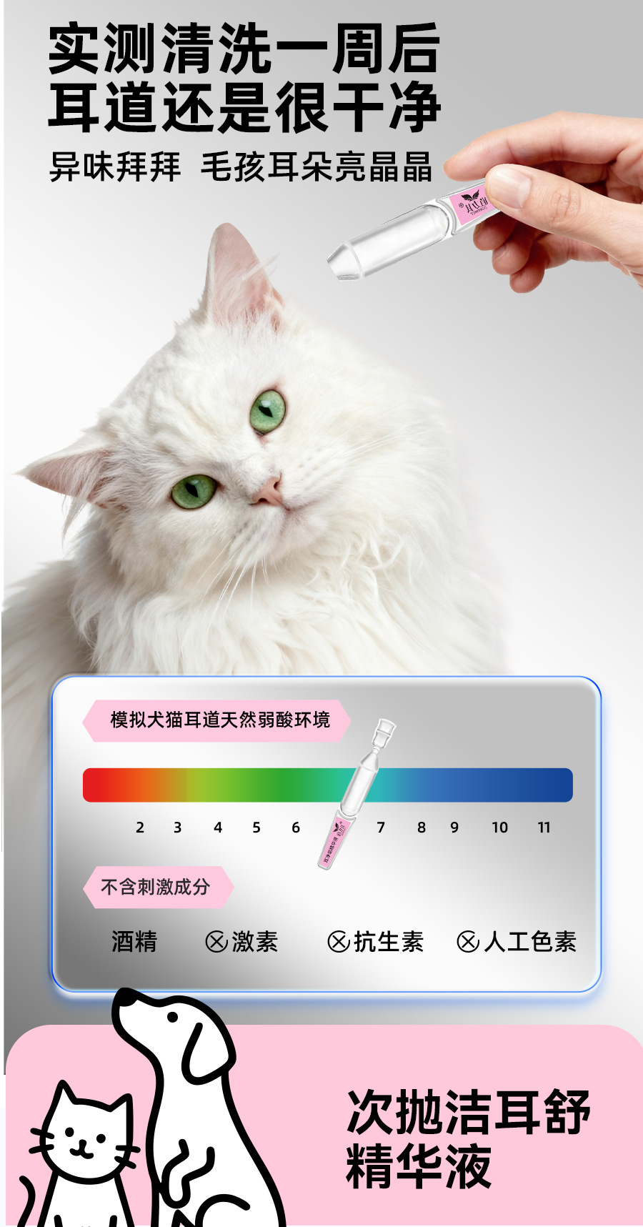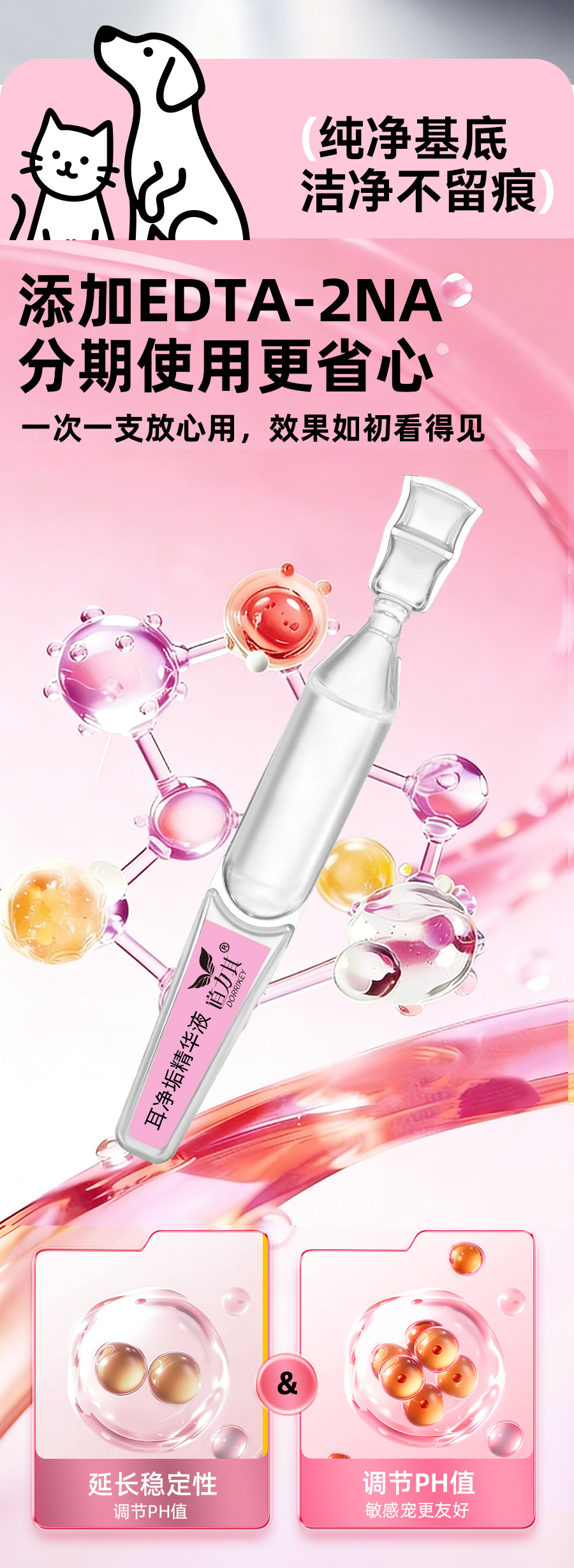 道力其宠物次抛耳液1.5mlX10支装一次性猫咪滴耳液狗狗耳部洗耳水