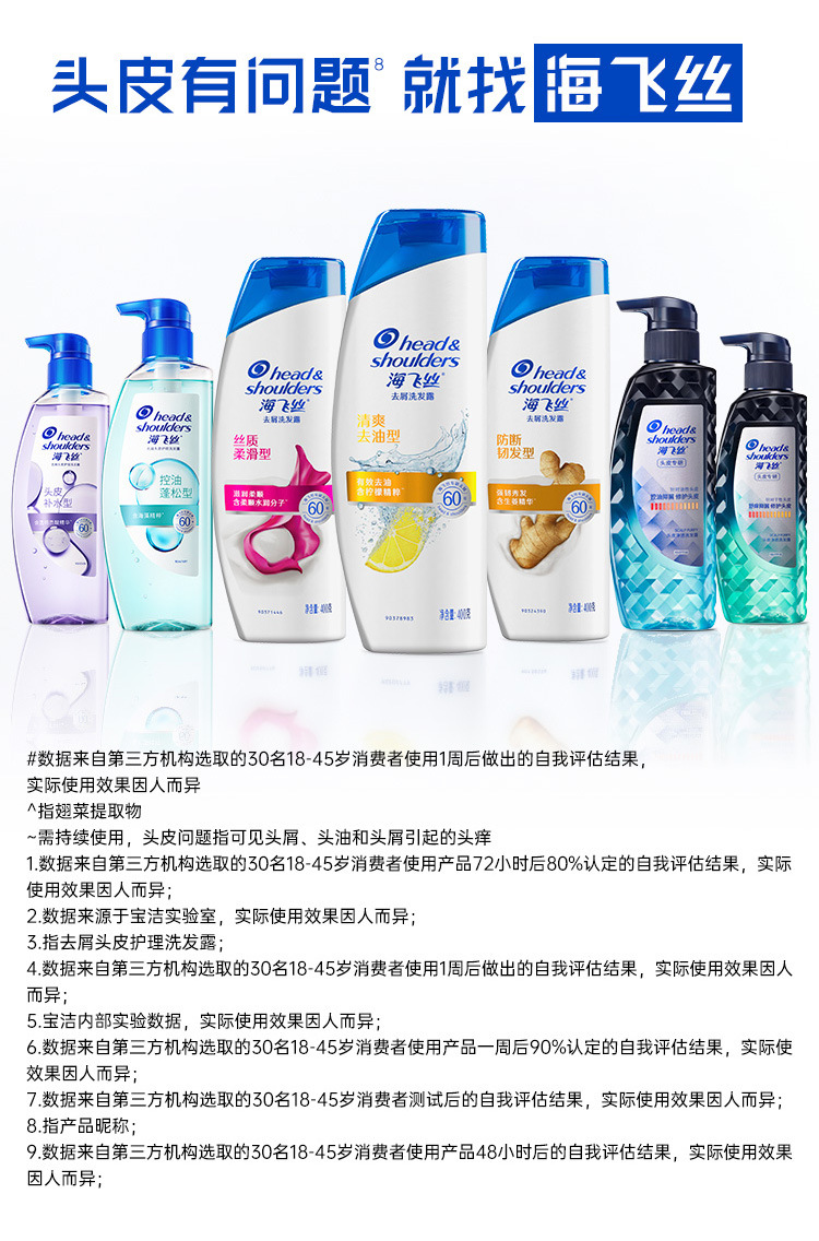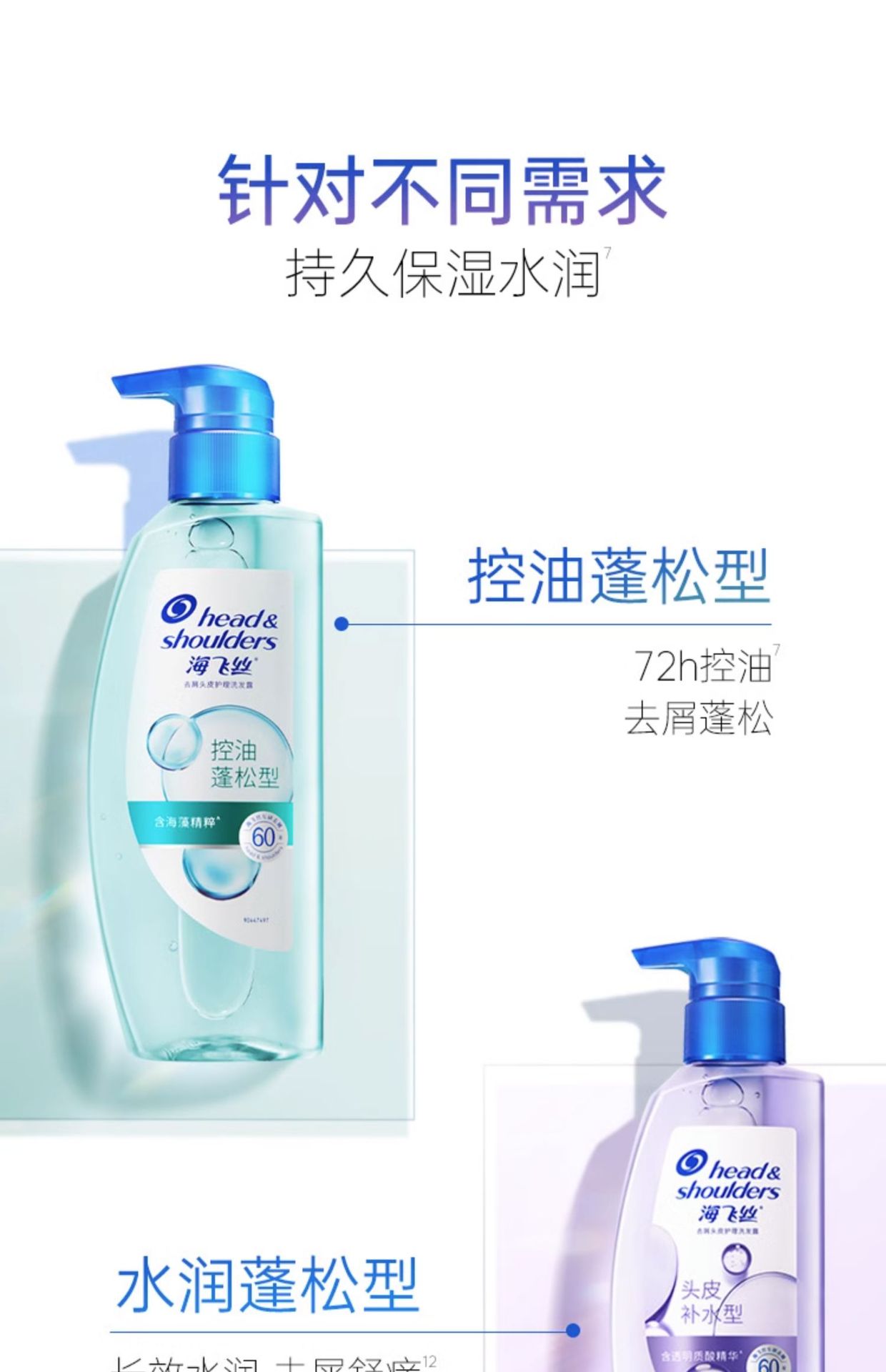包邮海飞丝洗发水无硅油控油去油蓬松去屑头皮补水护理弱酸洗发露