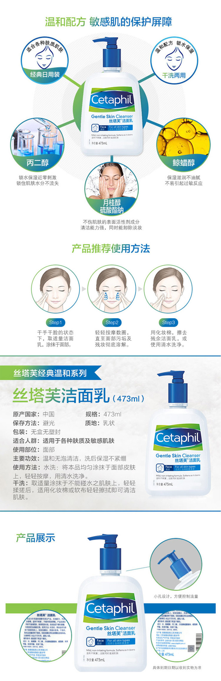 【一般贸易】法国CETAPHIL丝塔芙洁面乳473ml