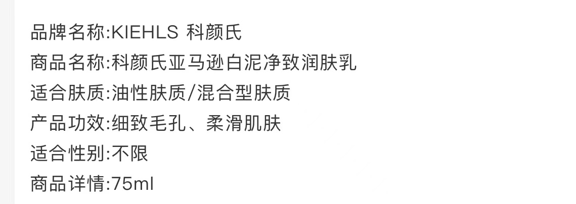 KIEHL’S/科颜氏 亚马逊白泥净致润乳液 75ML
