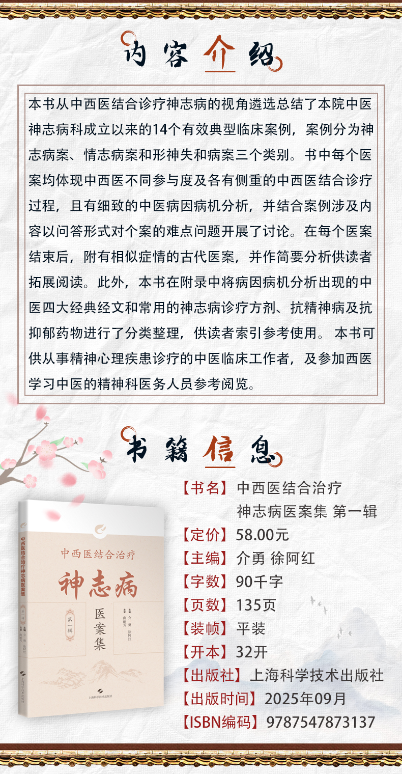 中西医结合治疗神志病医案集(第一辑)介勇 徐阿红 供从事精神心理疾患诊疗的中医临床工作者 9787547873137 上海科学技术出版社