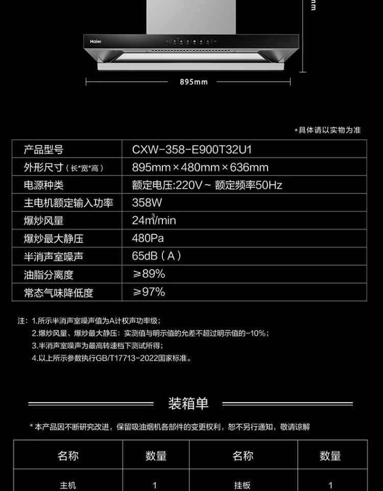 Haier/海尔 CXW-358-E900T32U1 油烟机