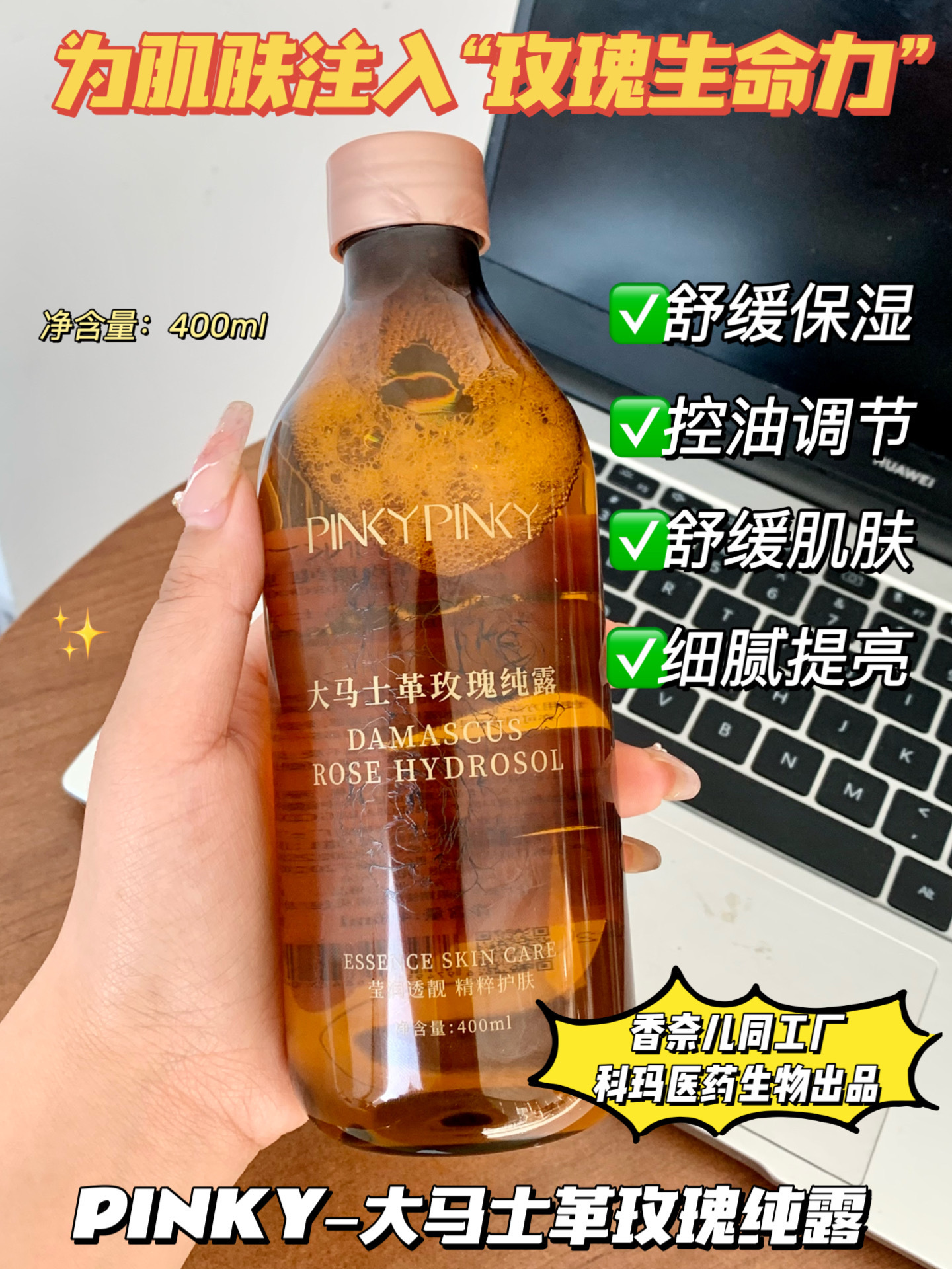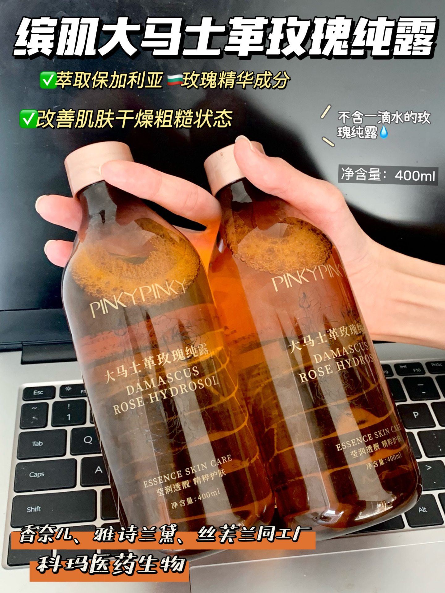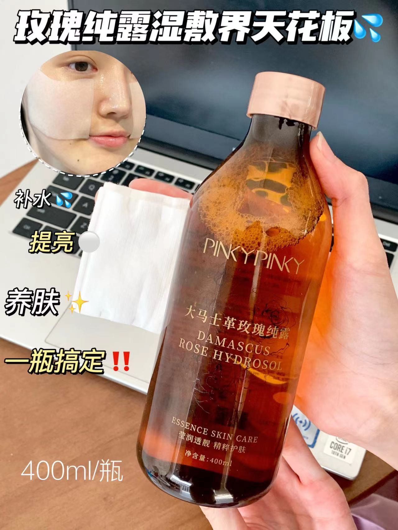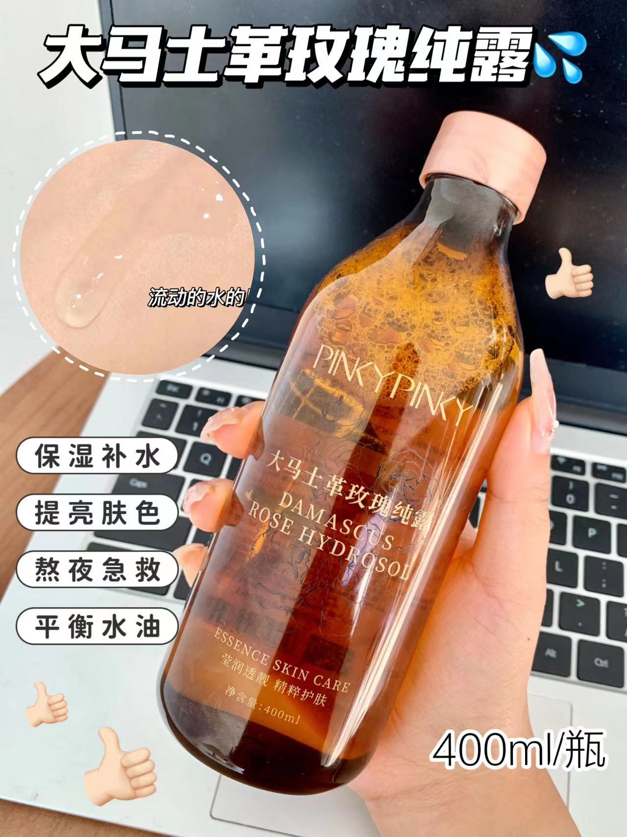 400ml大容量🌹 连敏感肌闺蜜都抢着囤货❤️ 补水保湿,咱就是只爱玫瑰纯露