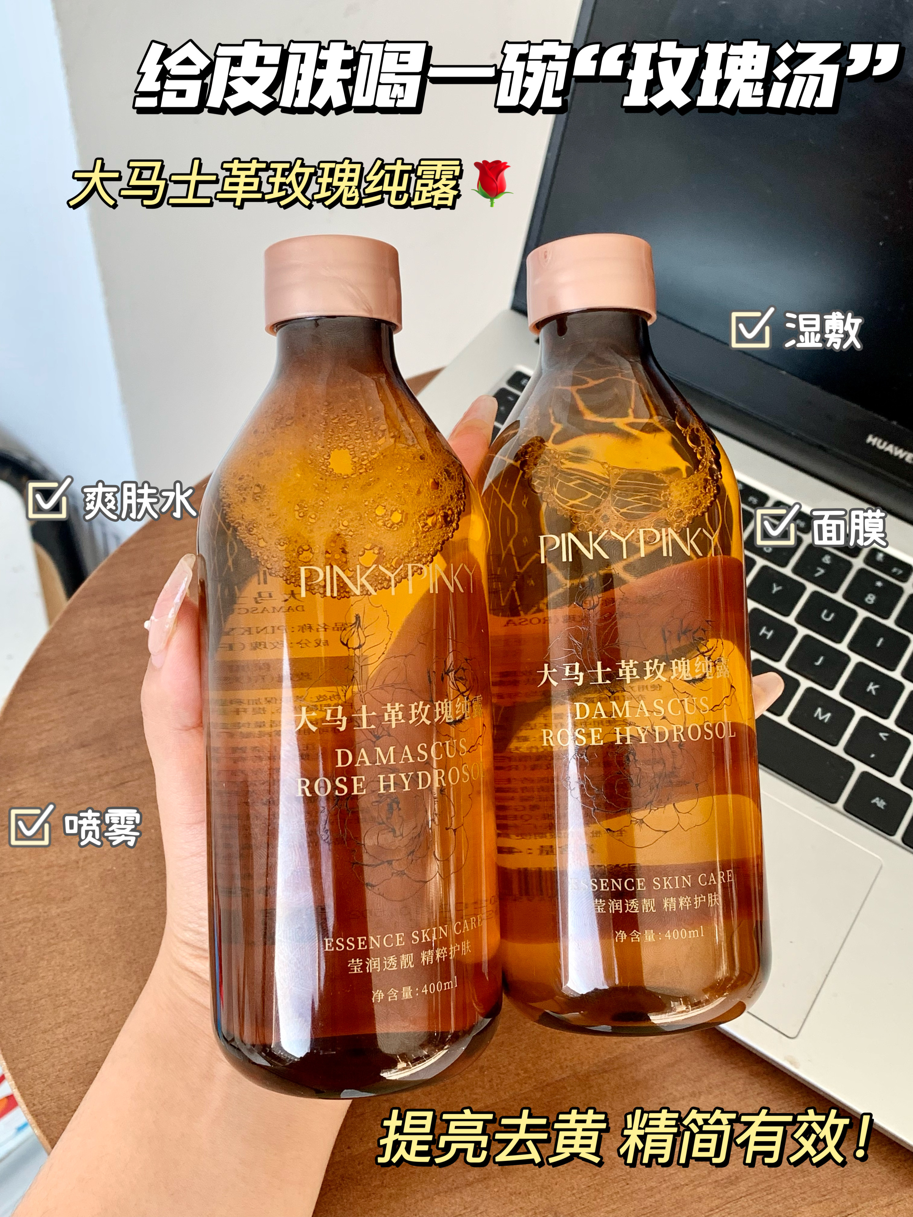 玫瑰纯露的疗愈时刻🌹 不添加一滴水!【PINKYPINKY大马士革玫瑰纯露】清晨喷一喷🌞 唤醒水润光泽肌,天然玫瑰香气瞬间治愈起床气!