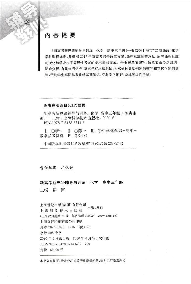 新高考新思路 辅导与训练 化学 高3年级/高三年级