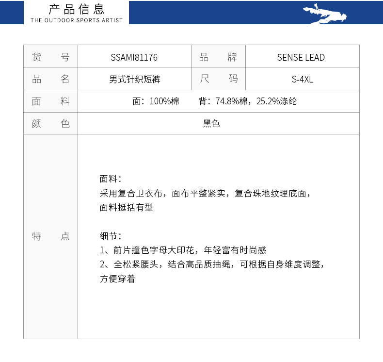 Senselead|男式针织短裤 SSAMI81176