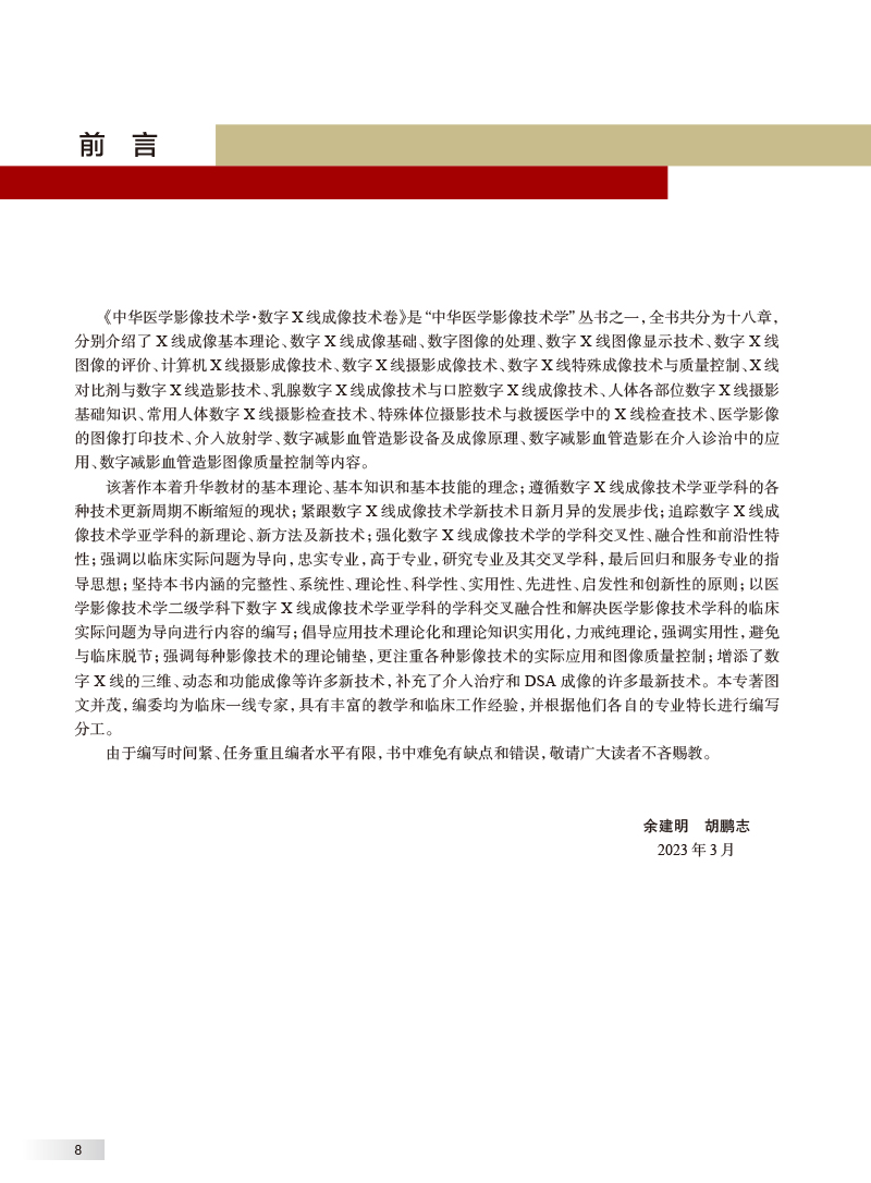 中华医学影像技术学 数字X线成像技术卷 第2版 余建明 胡鹏志 基本理论知识设备构造性能参数成像原理9787117351324人民卫生出版社