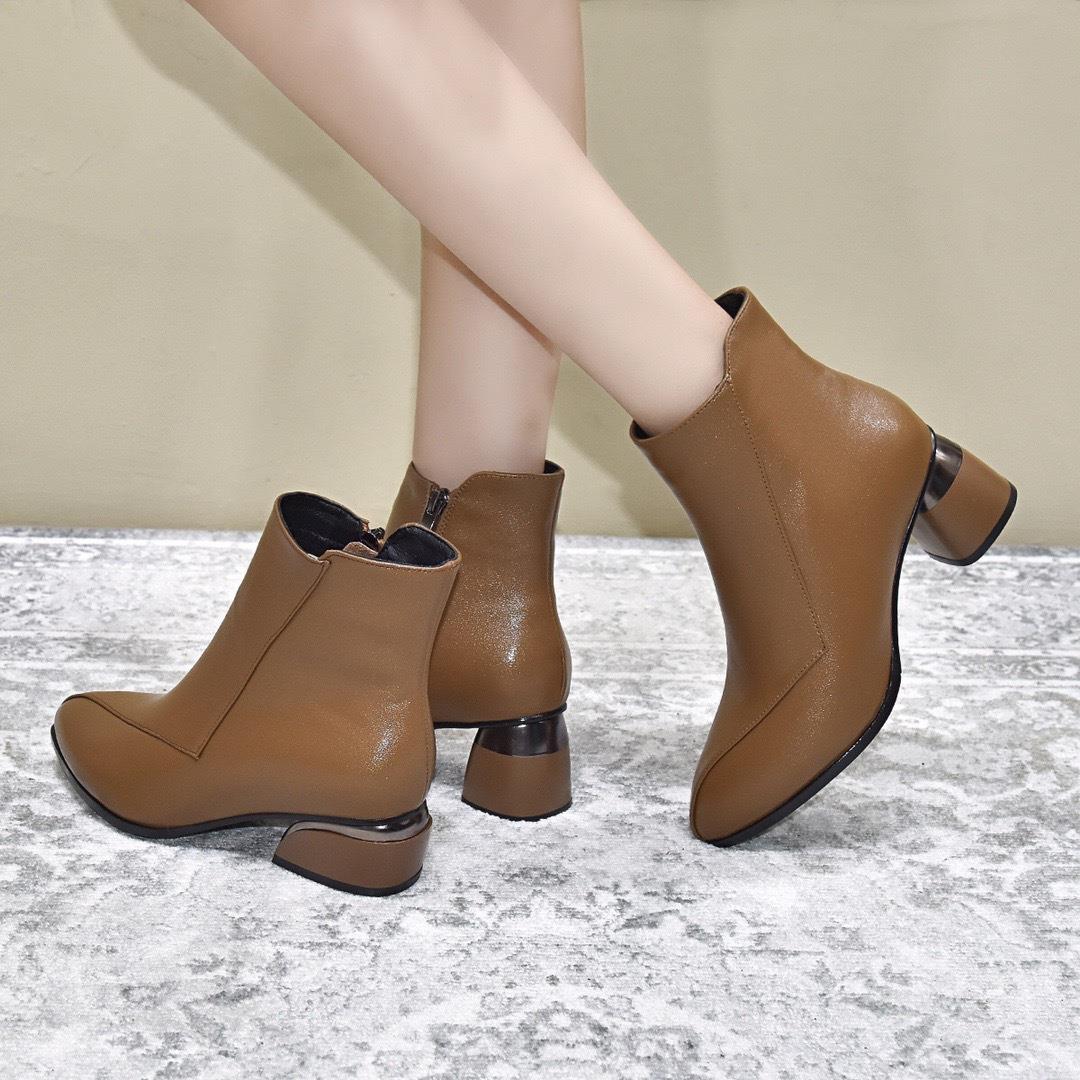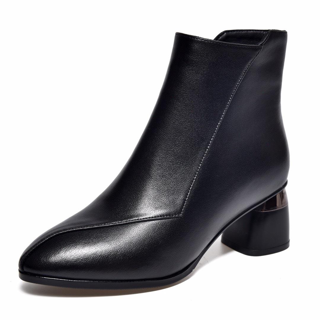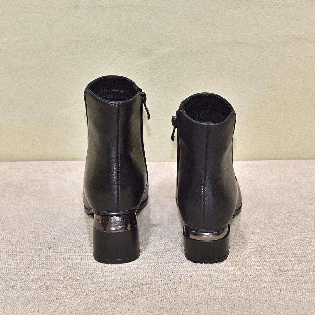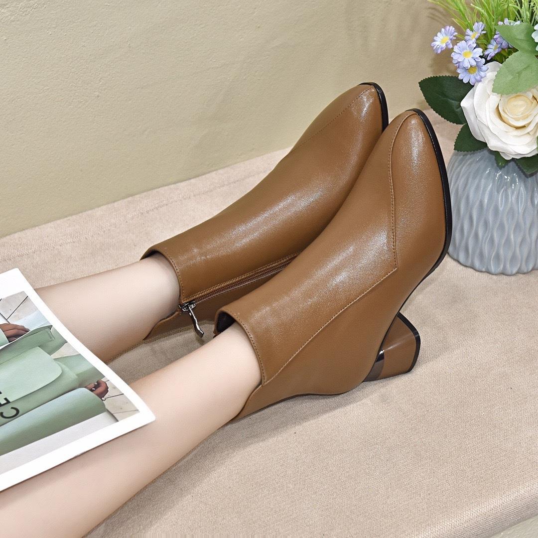 小短靴女尖头中跟新款粗跟百搭及踝靴皮鞋春秋单靴真皮马丁靴