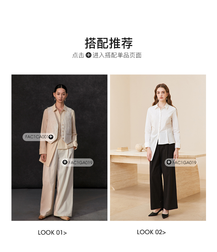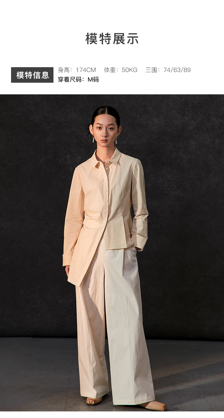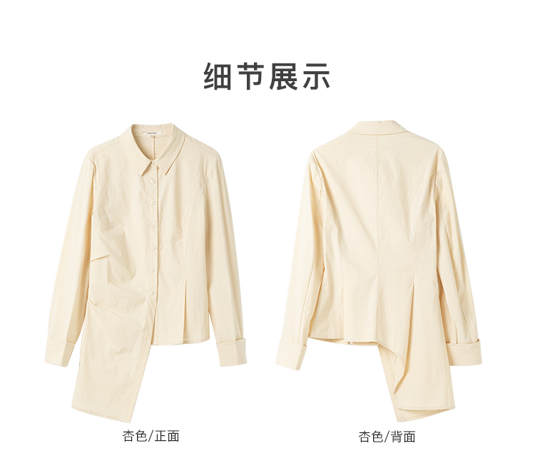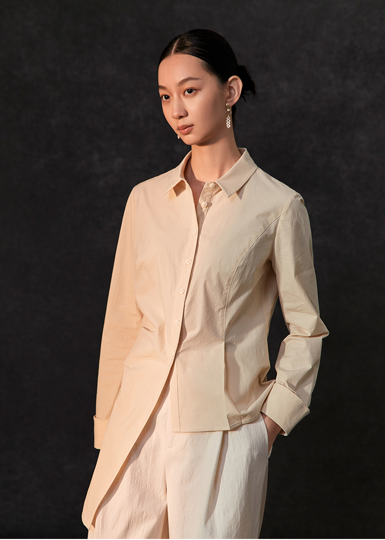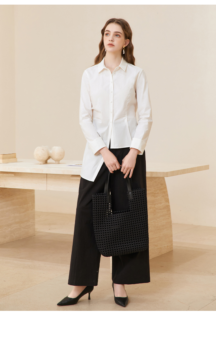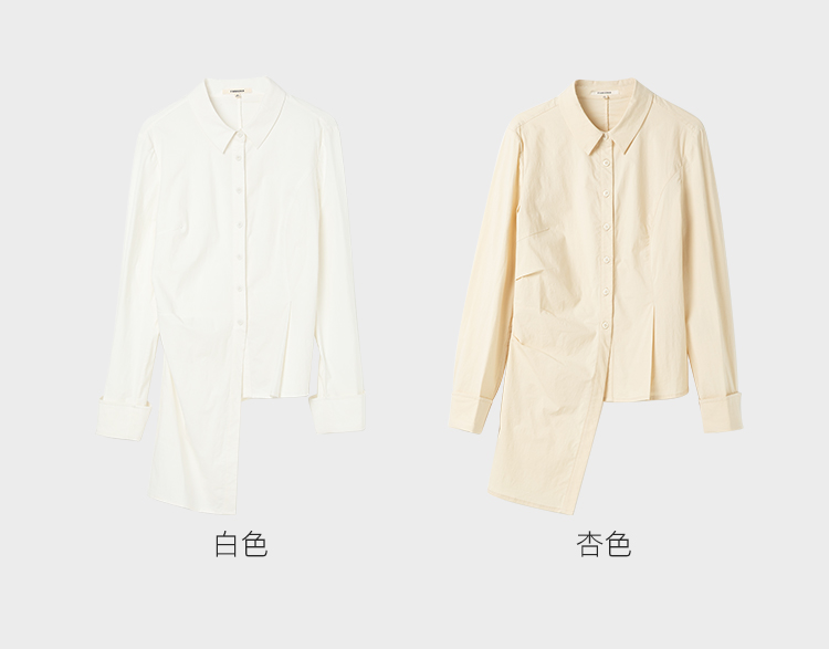 Famecoco纯棉正肩修身中长款衬衫女士长袖收腰白衬衣FAC1BA003