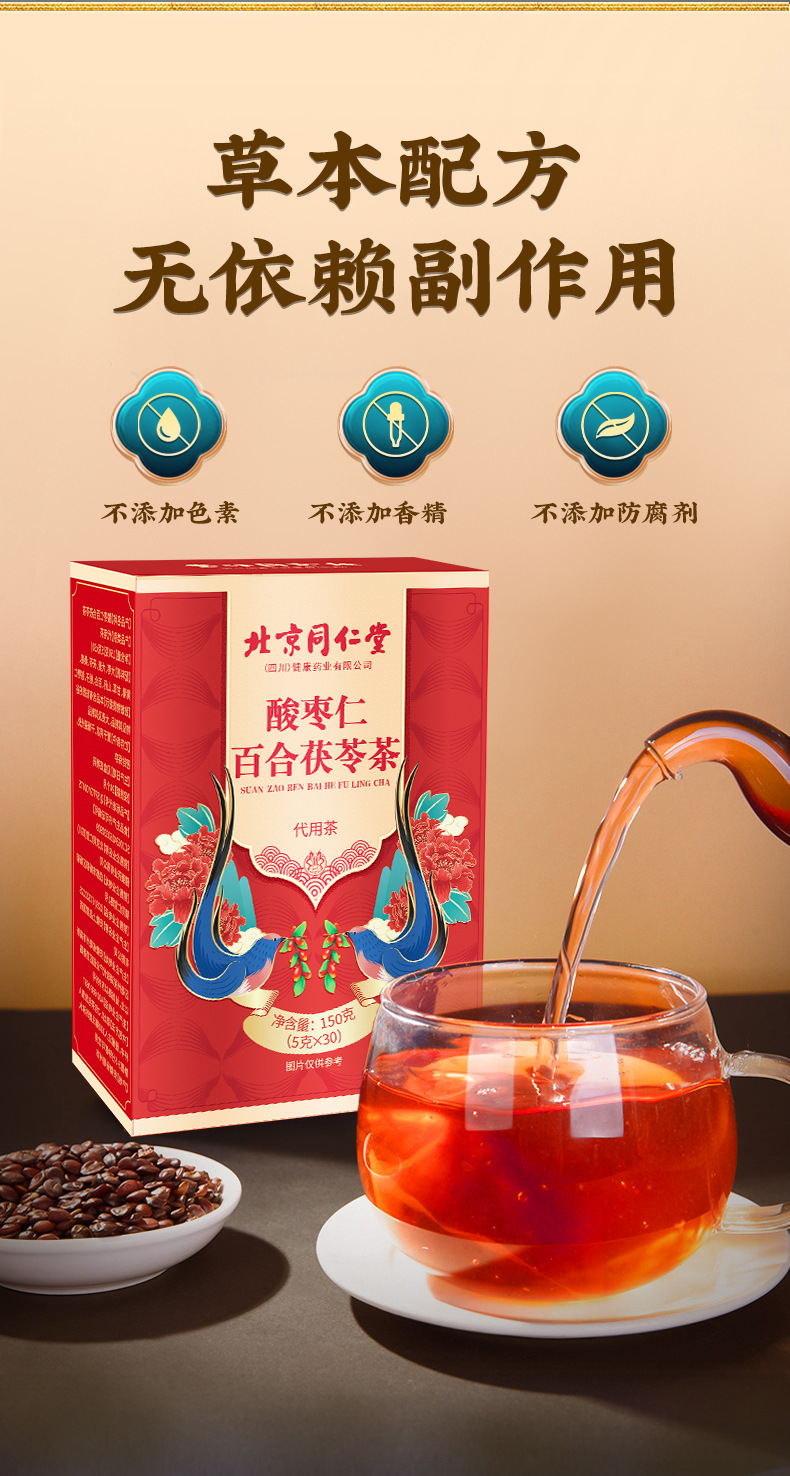 【北京同仁堂❗️酸枣仁百合茯苓茶】甄选品质原料,决明子/大麦/橘皮/大枣/枸杞/苦荞/甘草/百合/莲子/茯苓/栀子/酸枣仁,茶色清亮口感醇厚口味悠长,花茶茶酸枣仁茶夏日中式好物健康L