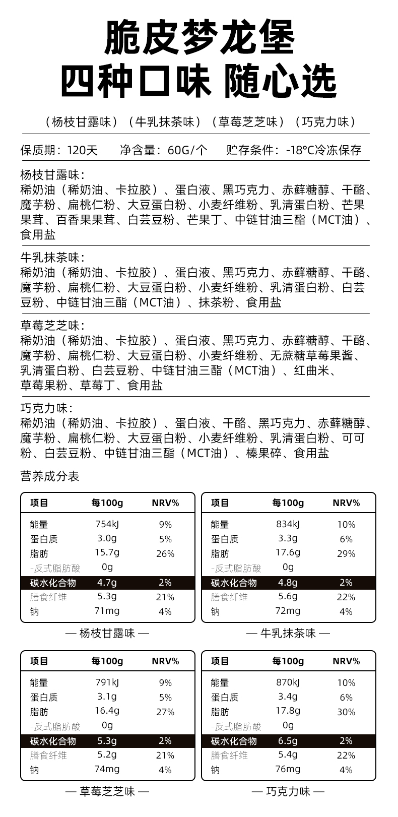 糖学友生酮食品MCT油巧克力梦龙派堡脆皮蛋糕无糖精无麸质