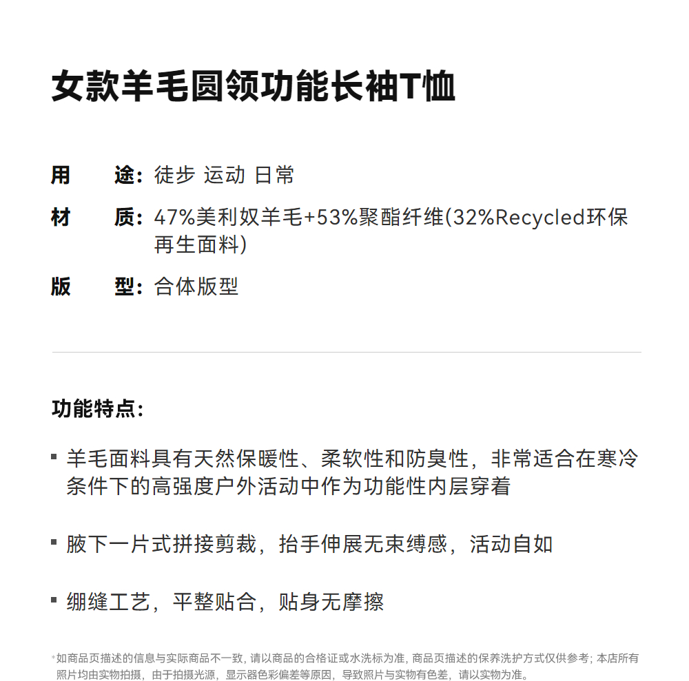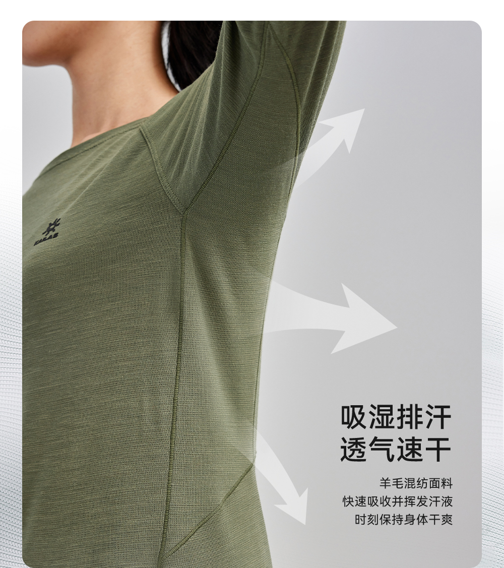 KAILAS凯乐石 户外运动 女款羊毛圆领功能长袖T恤 KG2437214【Z】