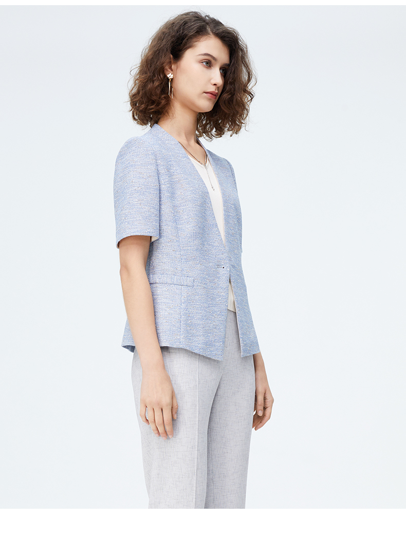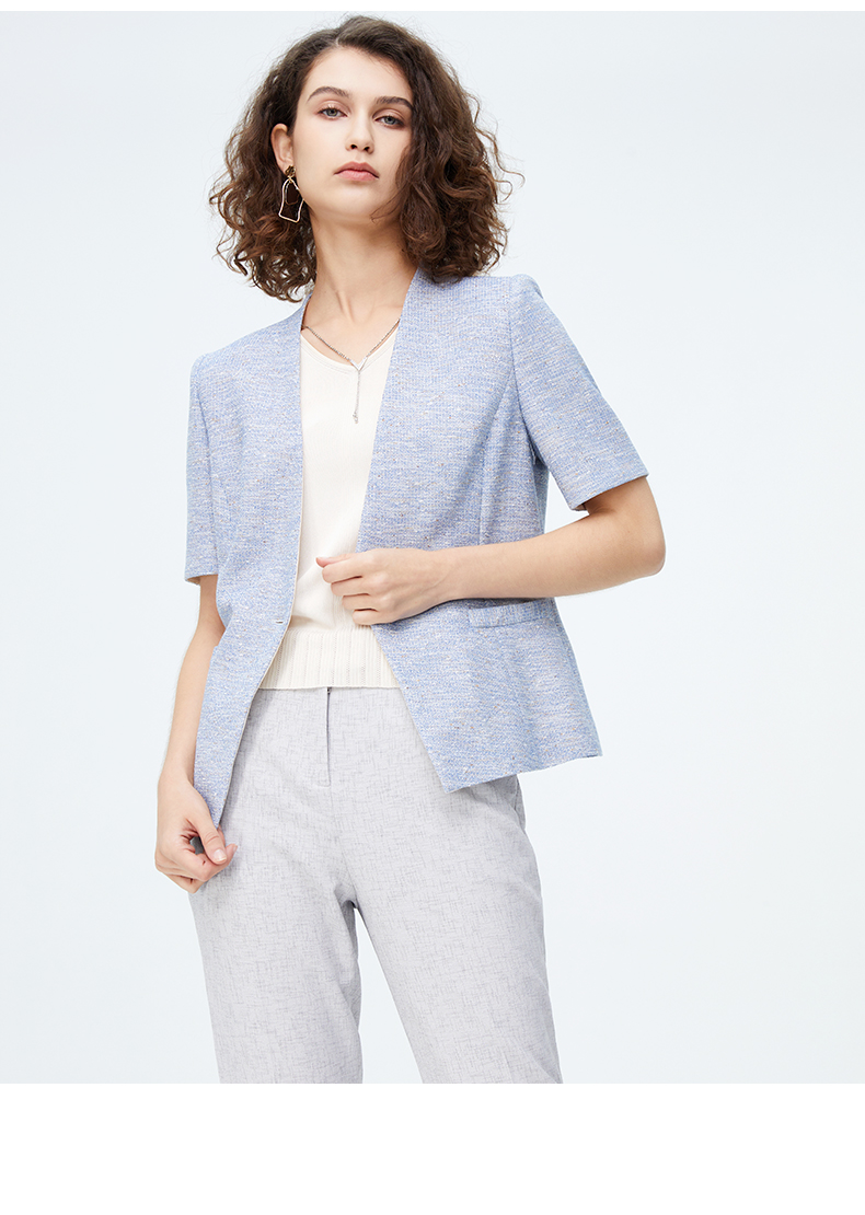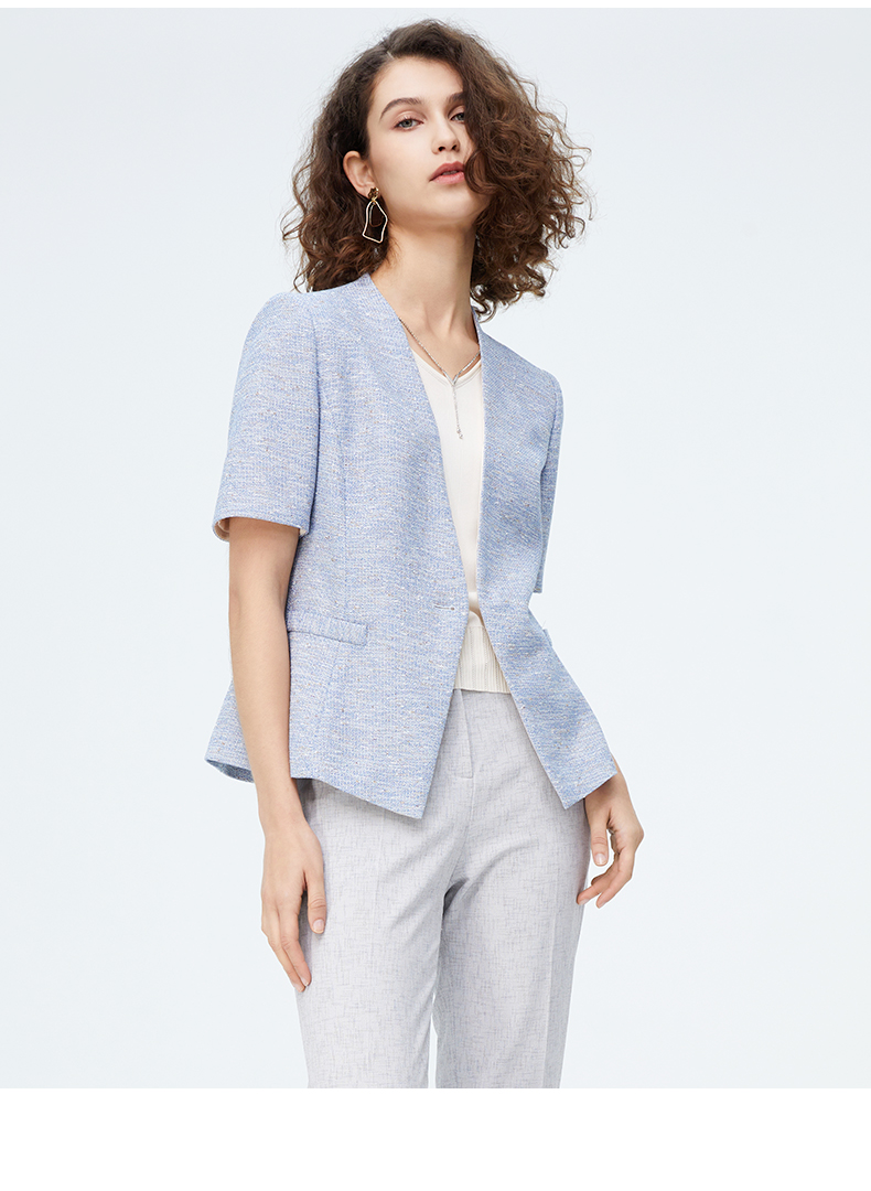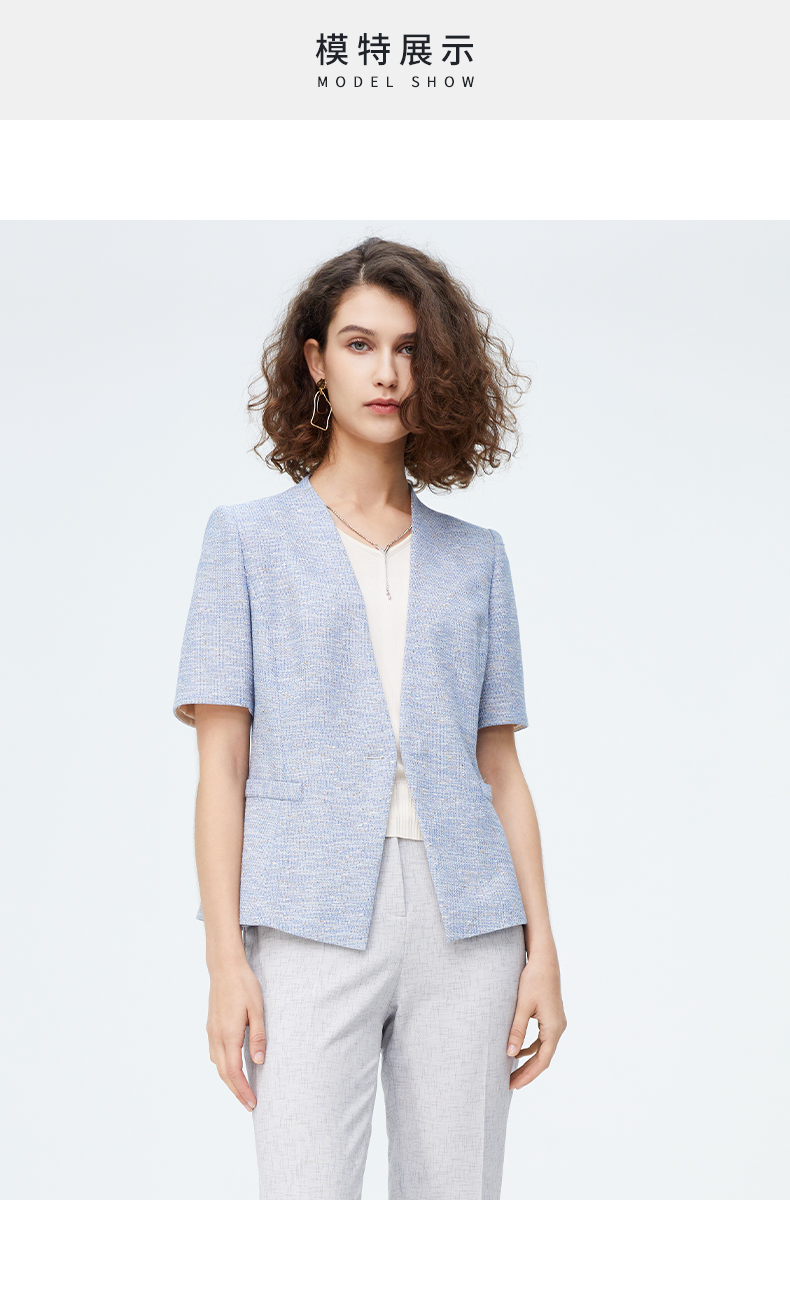 皮尔卡丹女装新款时尚肌理商务干练短袖小西服P4246L4017L3