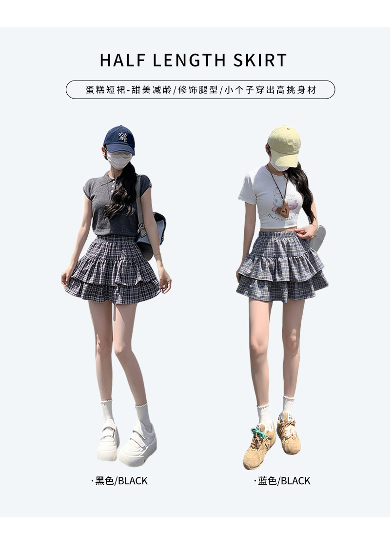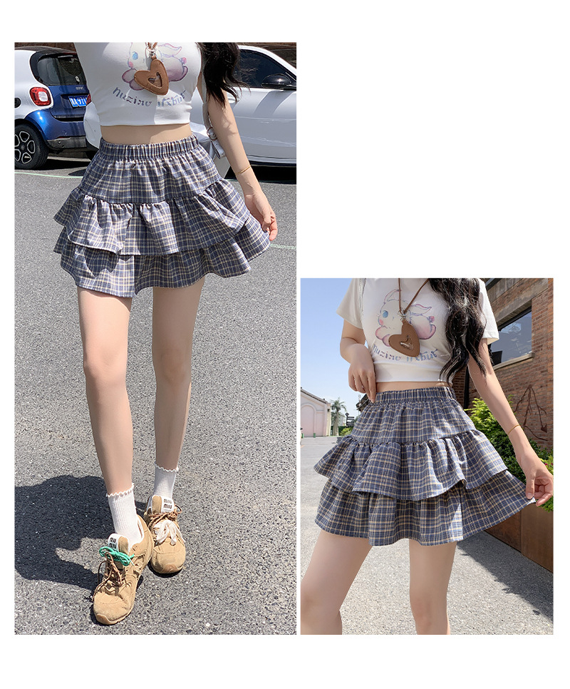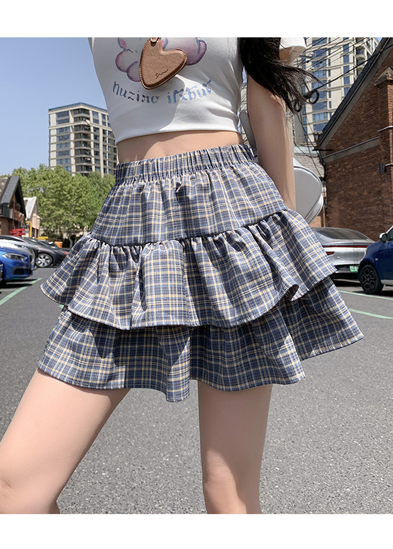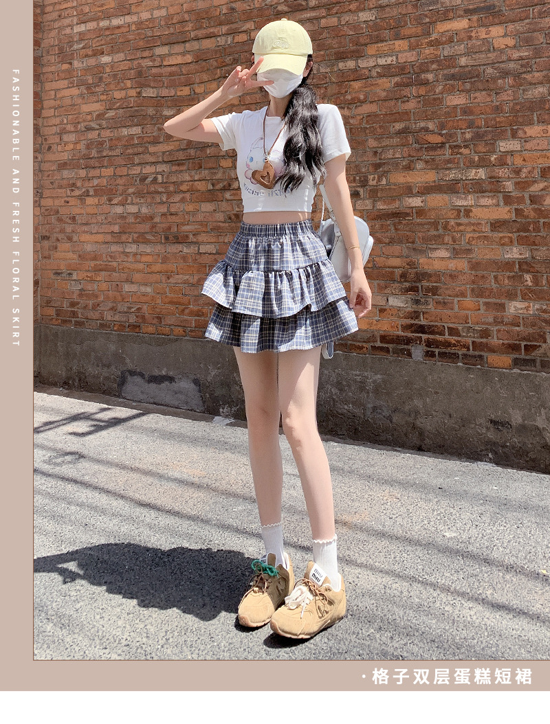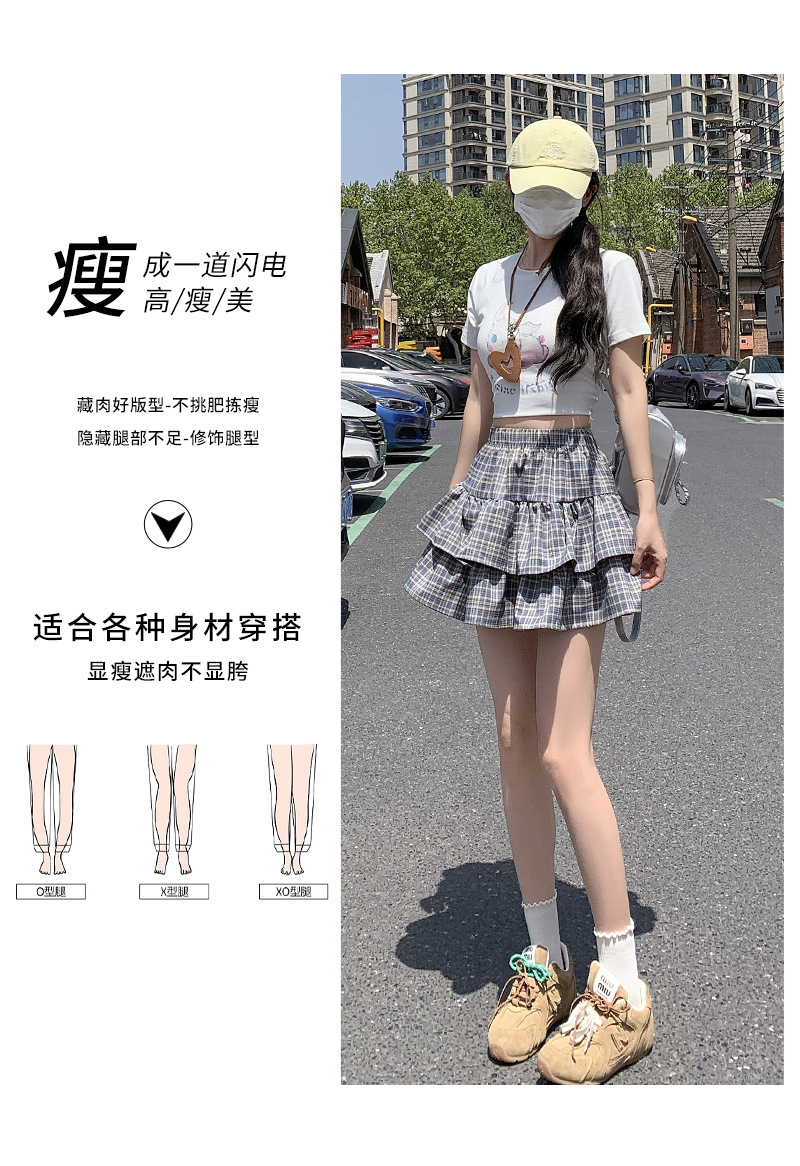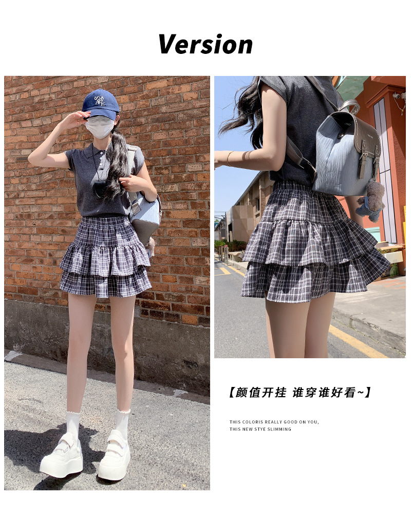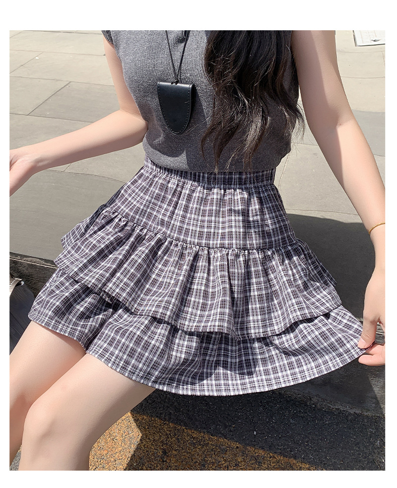 【YW】无忧购韩系撞色格纹高腰A字显瘦百搭防走光蓬蓬蛋糕短裙H-1784(截单后7天发货)