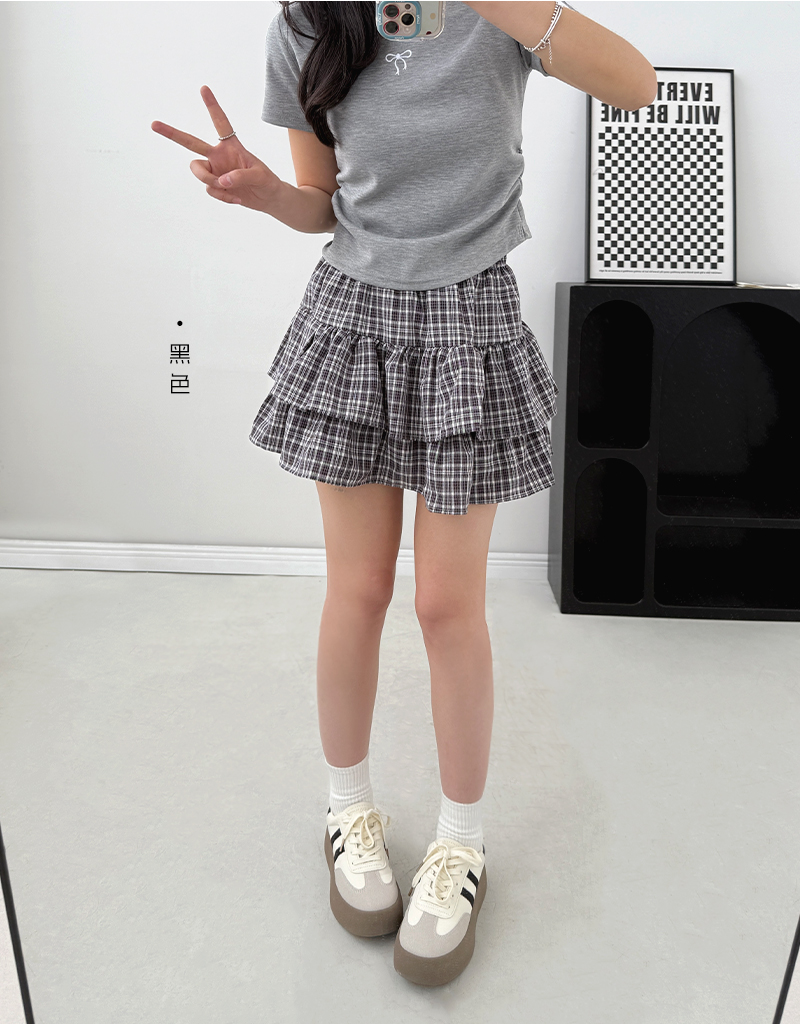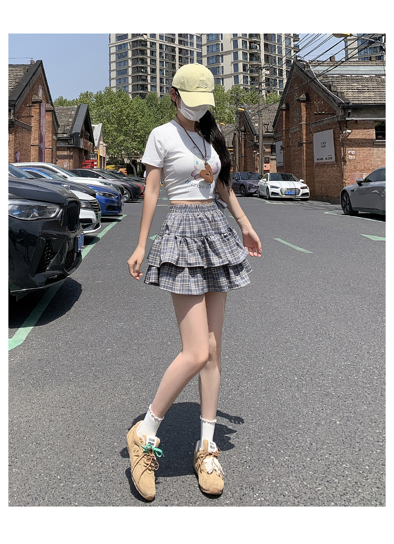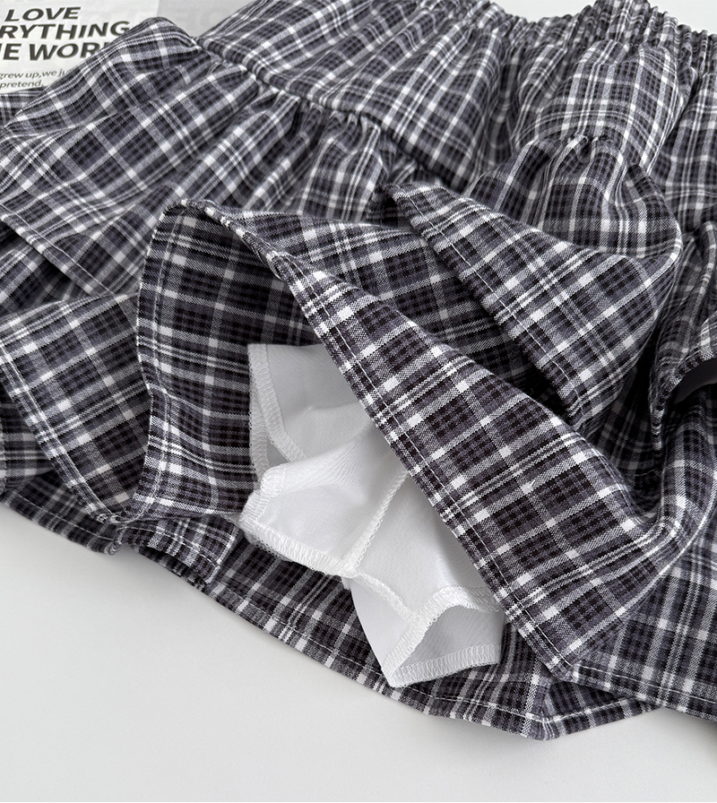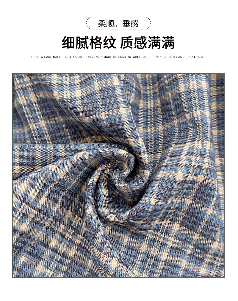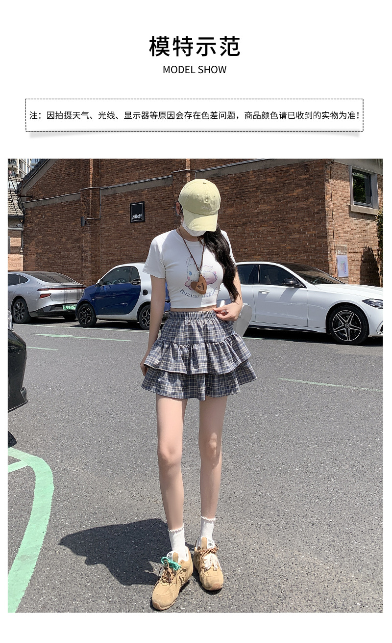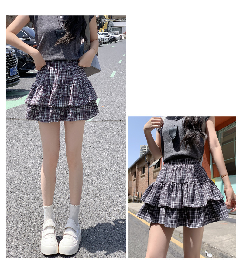 【YW】无忧购韩系撞色格纹高腰A字显瘦百搭防走光蓬蓬蛋糕短裙H-1784(截单后7天发货)