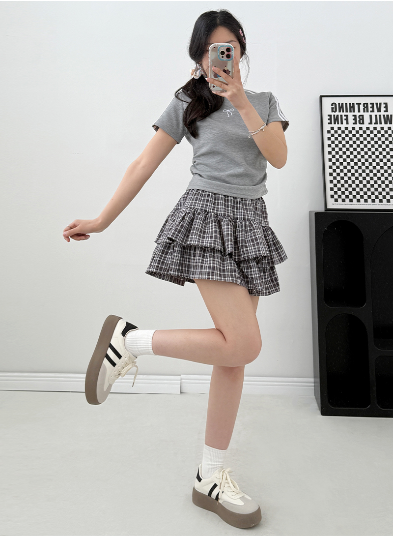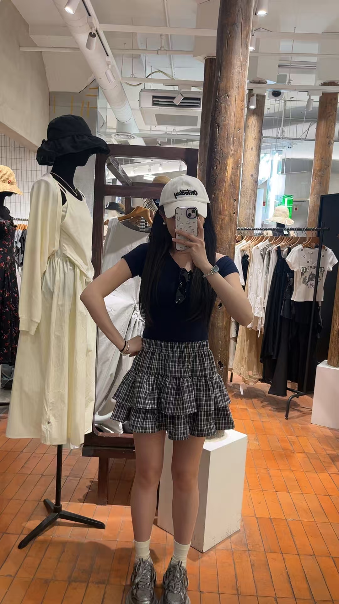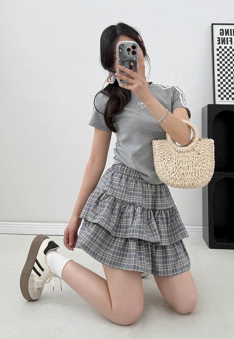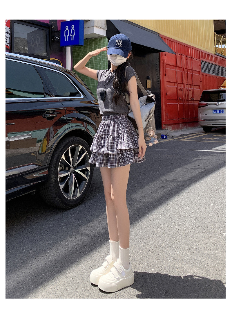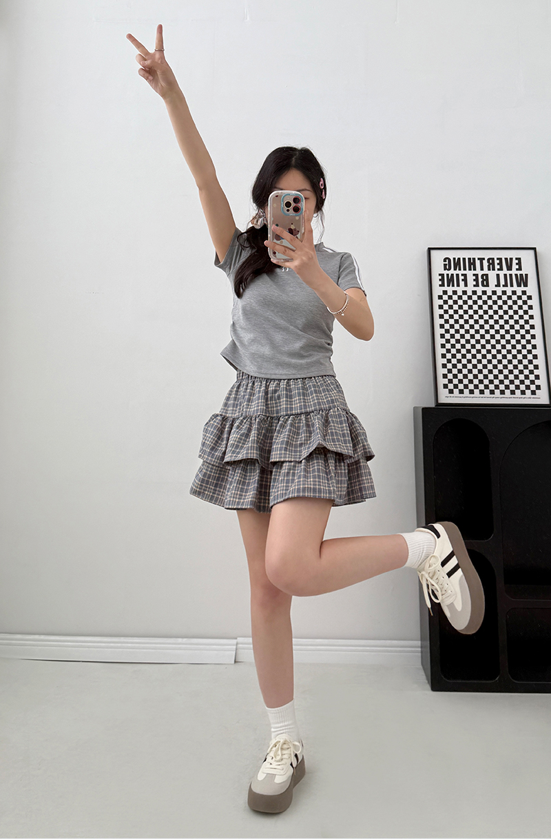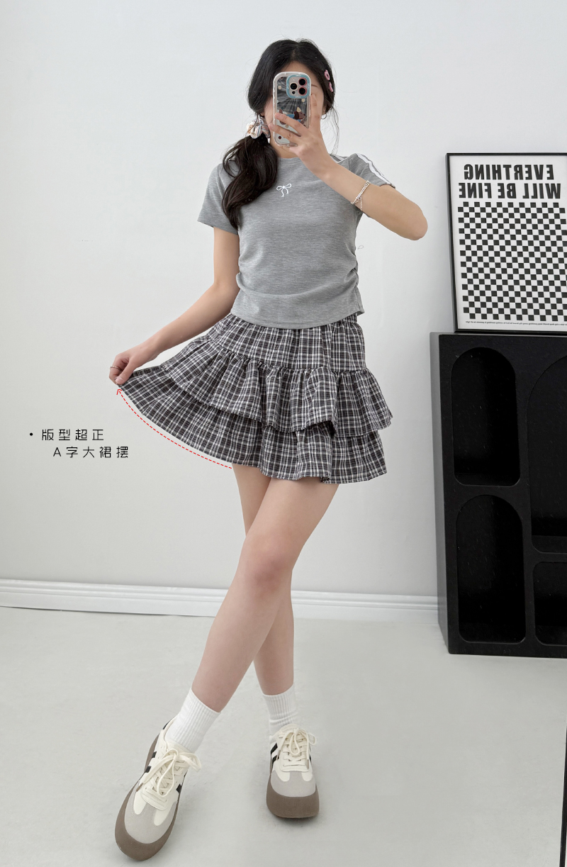 【YW】无忧购韩系撞色格纹高腰A字显瘦百搭防走光蓬蓬蛋糕短裙H-1784(截单后7天发货)