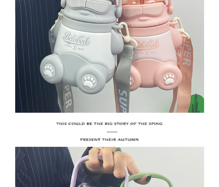 「四色可选!颜值派」双饮儿童保温杯 吸管斜挎直饮便携带背带颜值316不锈钢大肚杯餐饮用具