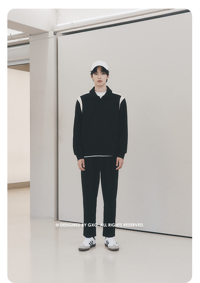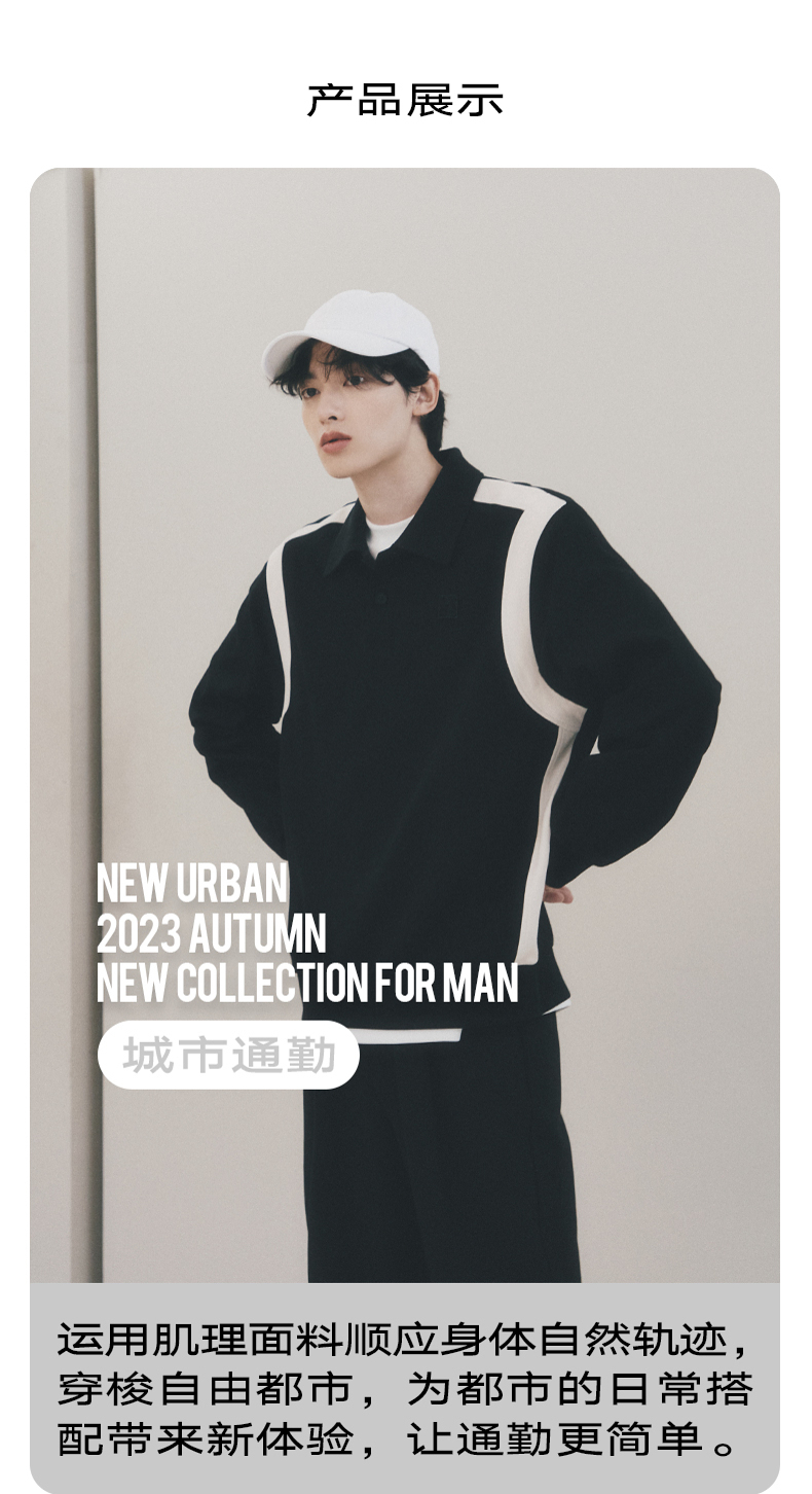 GXG男装 城市通勤双色翻领撞色斜纹肌理挺阔长袖卫衣 秋季热卖
