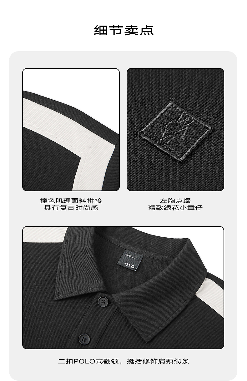 【凉感】GXG男装领口提花polo短袖男商务拼接休闲上衣 25夏新品