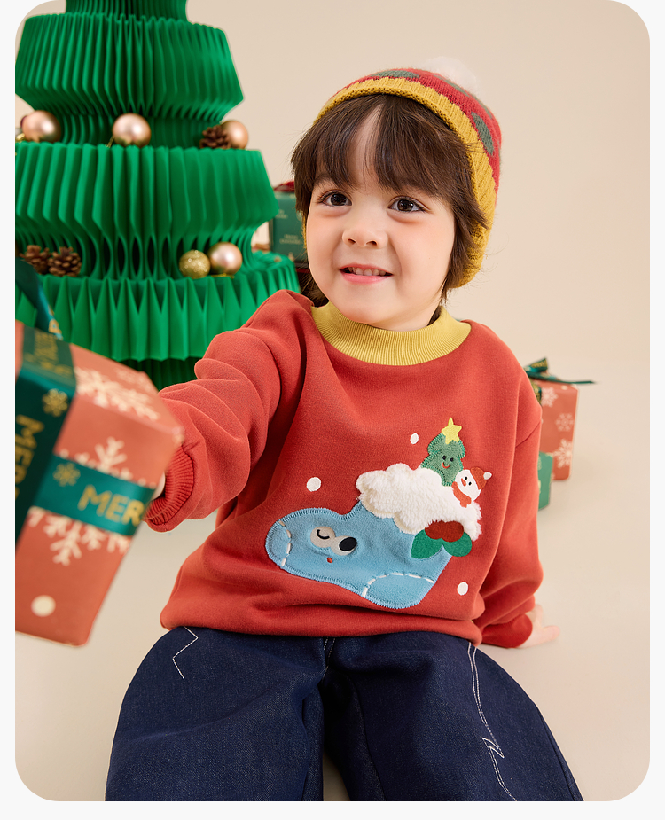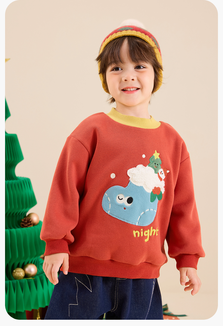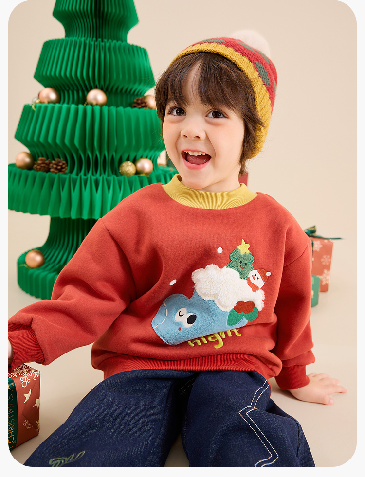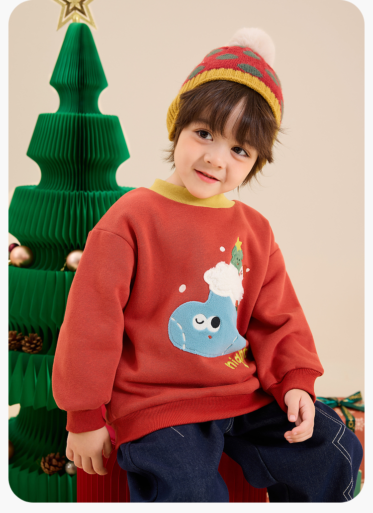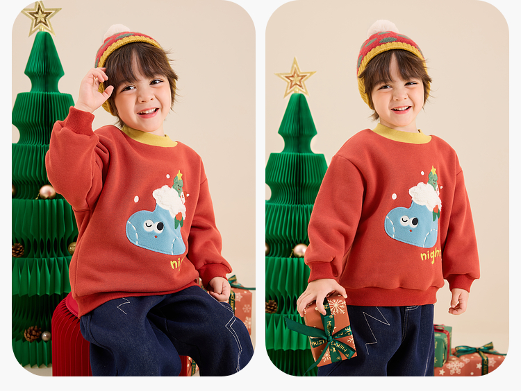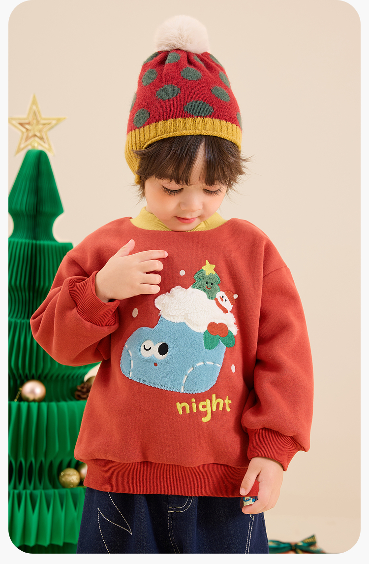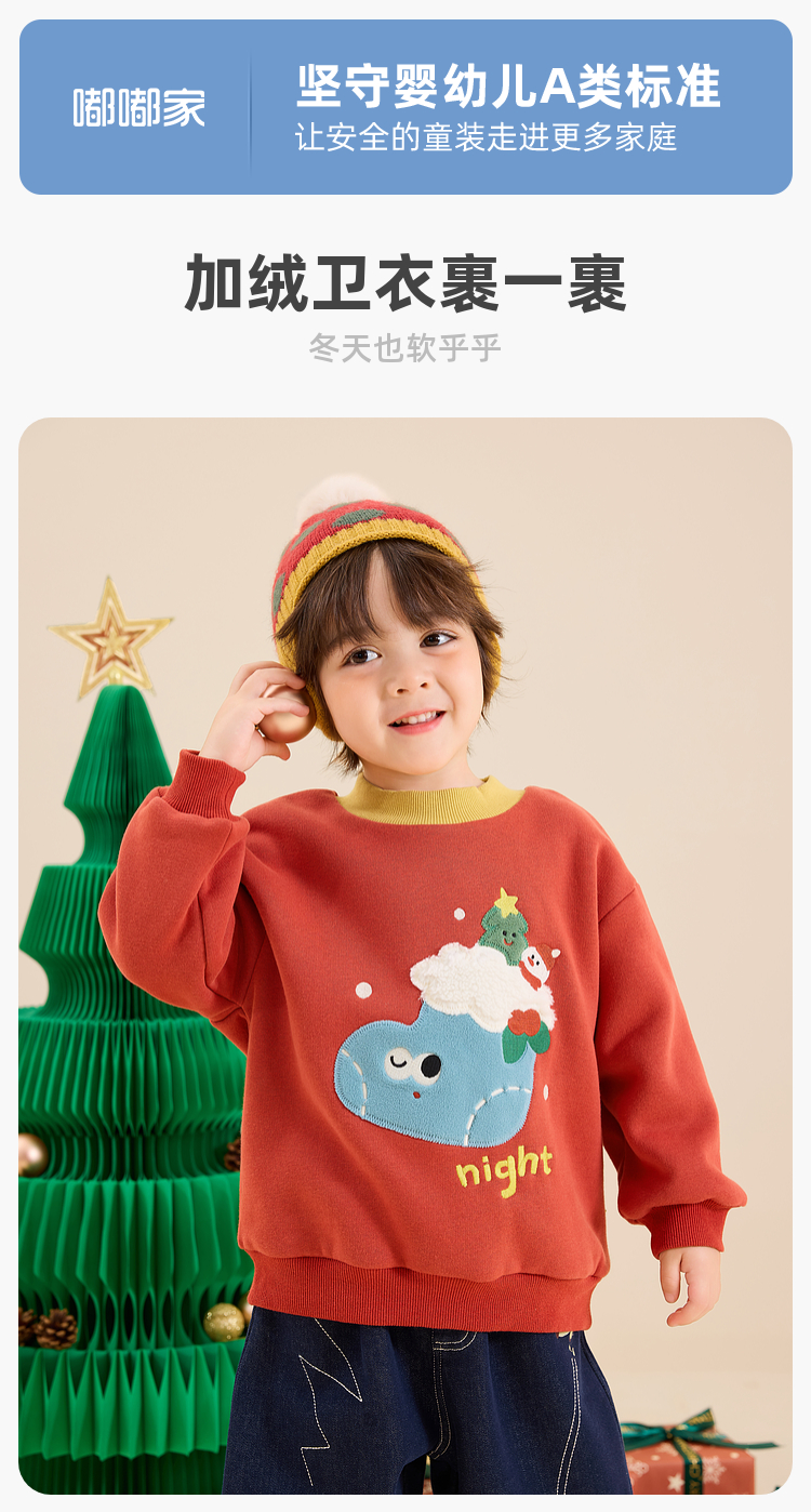 嘟嘟家童装儿童加绒卫衣冬季男童上衣女童冬装宝宝针织衫秋冬圣诞