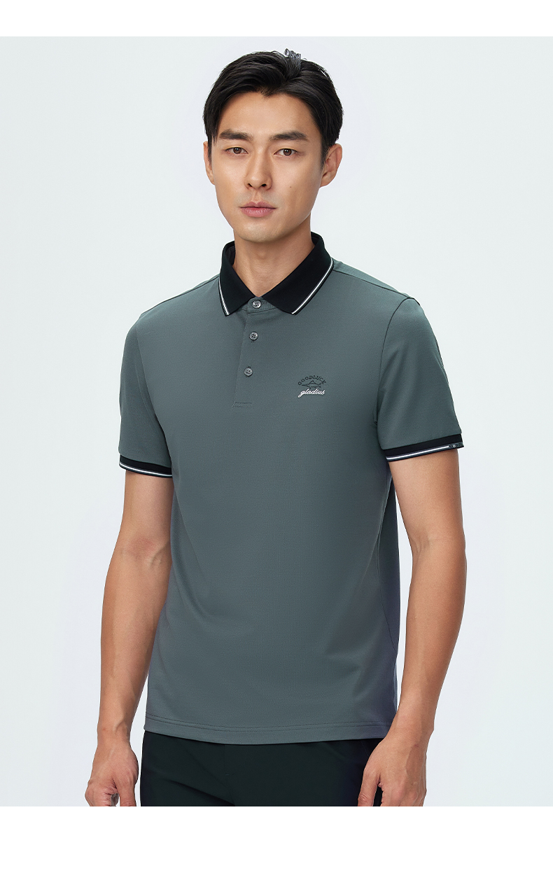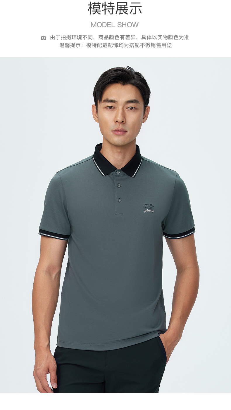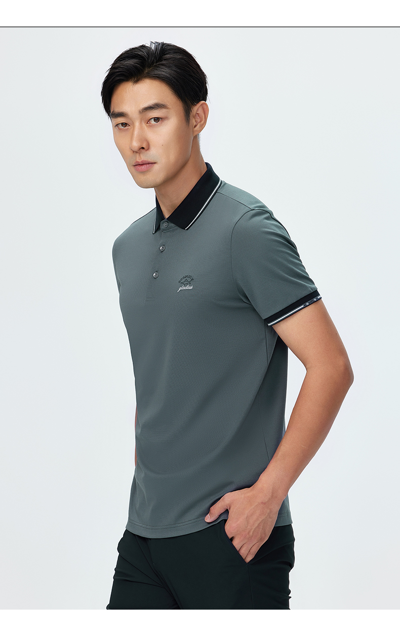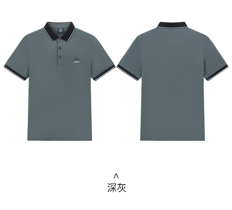 德鲨男士灰色短袖翻领T恤夏新款休闲撞色上衣男刺绣POLO衫