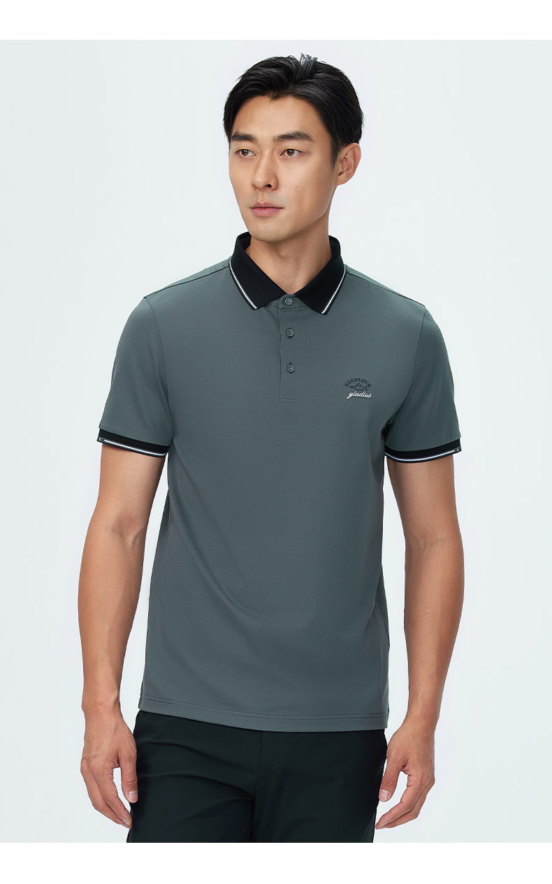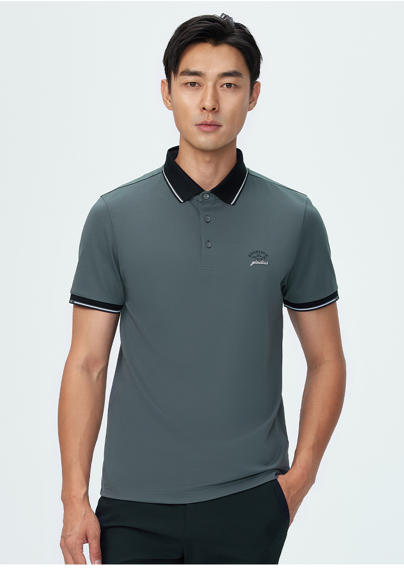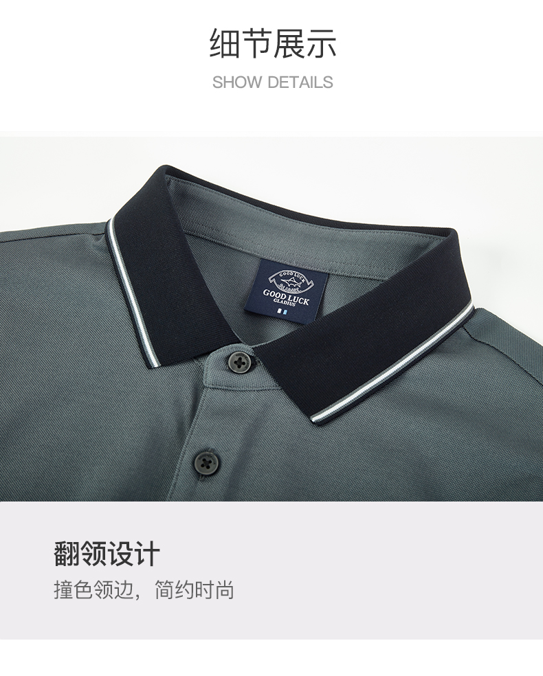 德鲨男士灰色短袖翻领T恤夏新款休闲撞色上衣男刺绣POLO衫