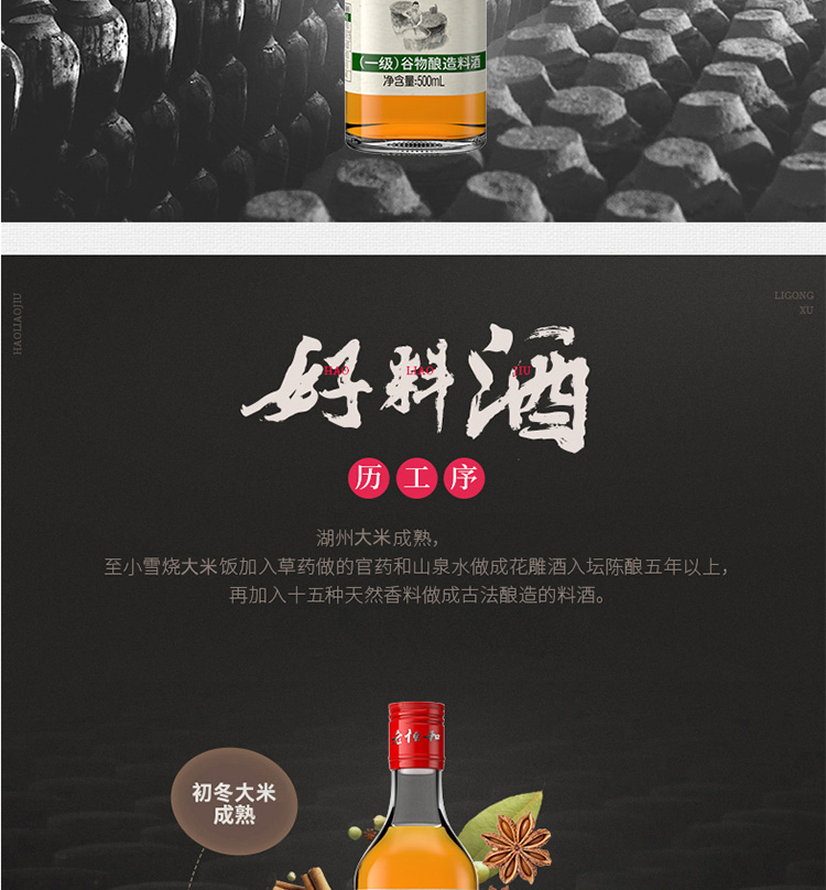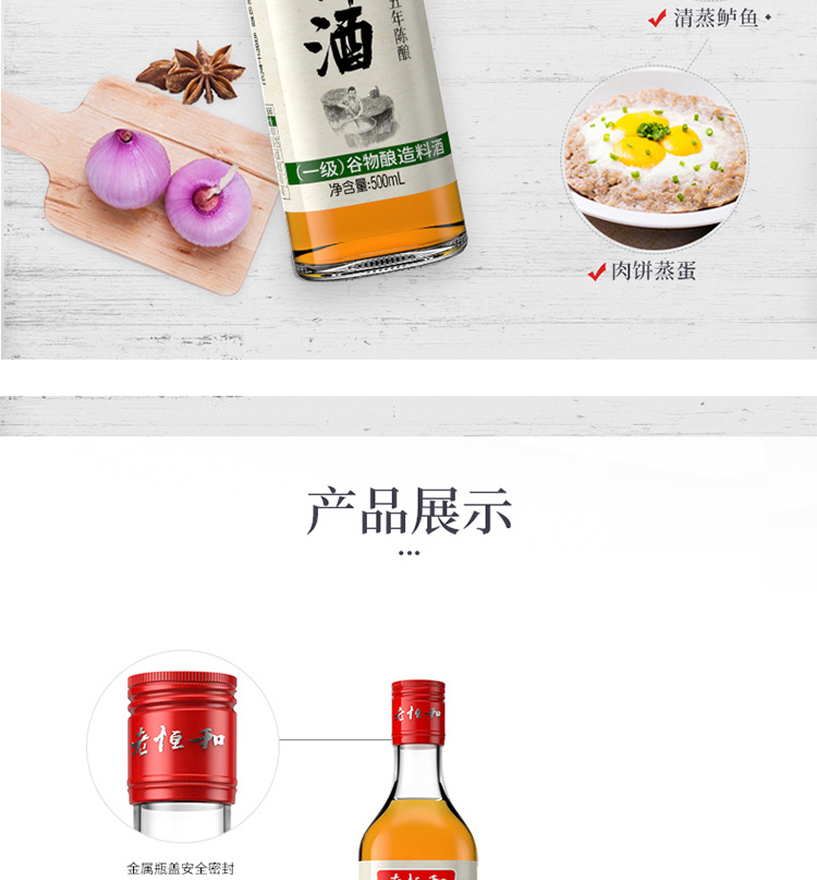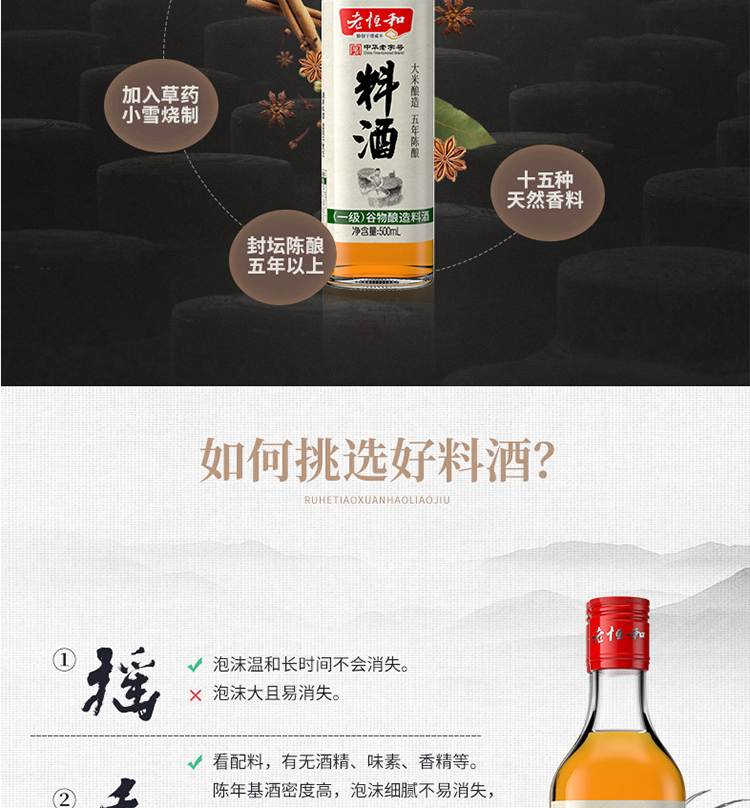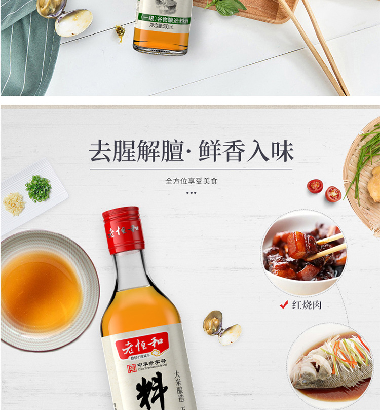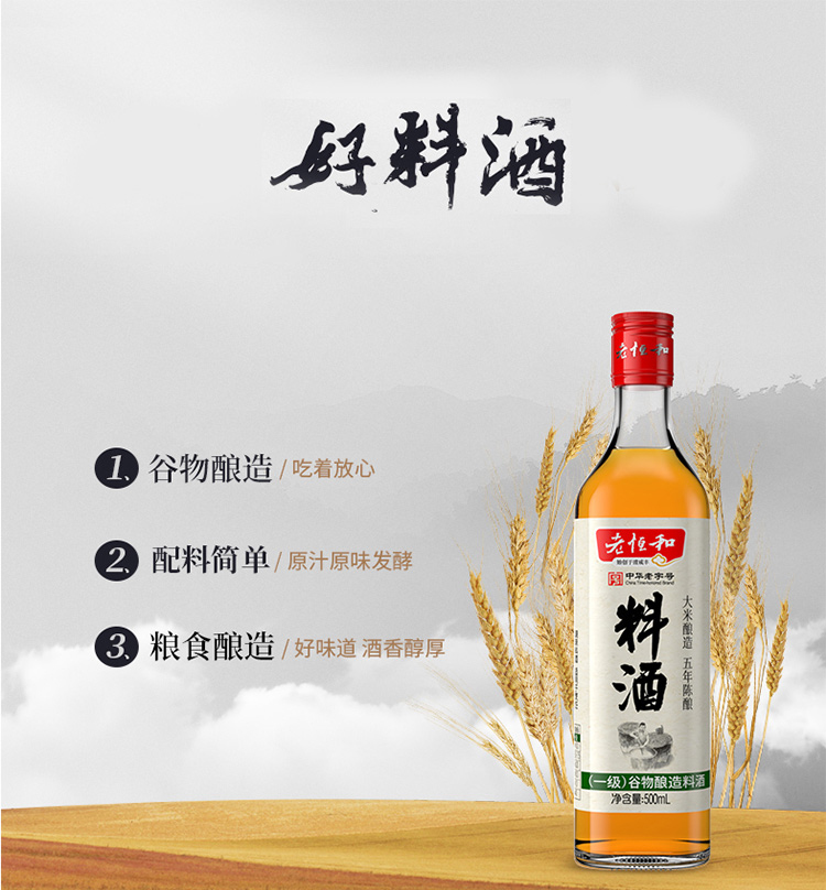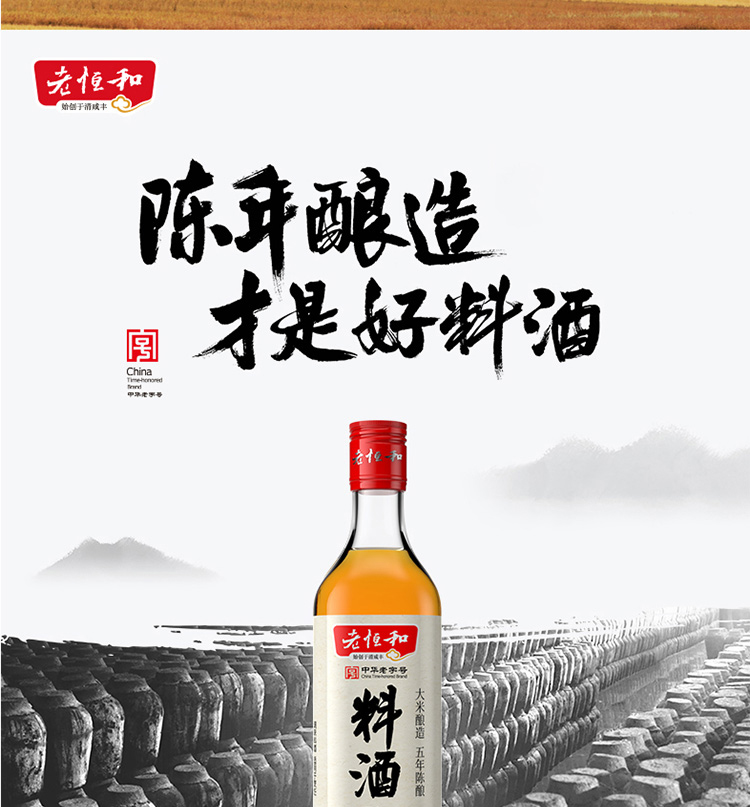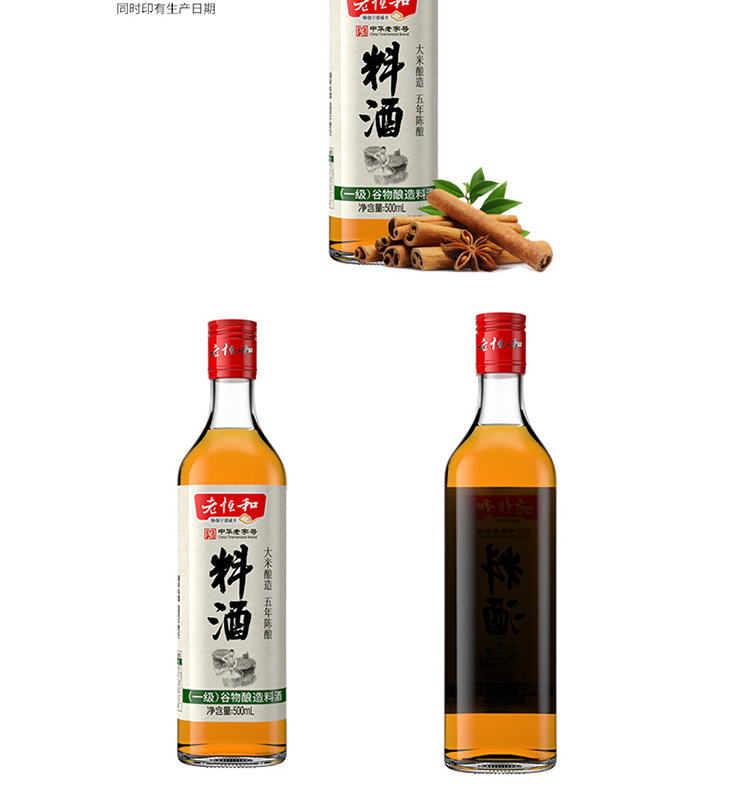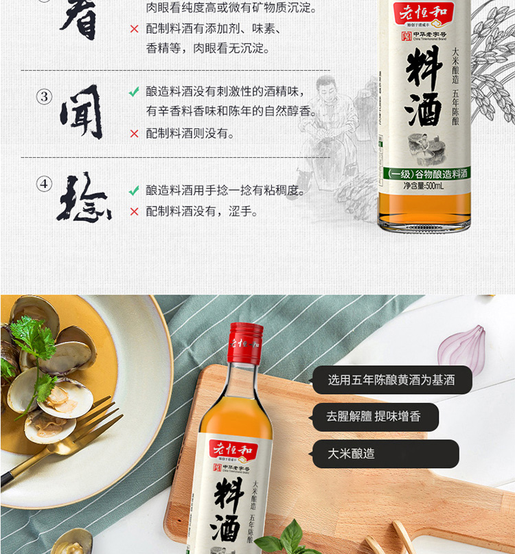 老恒和料酒500ml 谷物粮食五年陈酿陈年酿造 去腥提香增鲜解腻宴会调味料 家庭装调味黄酒调料中华老字号