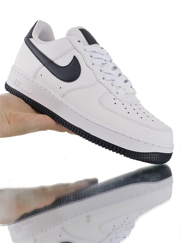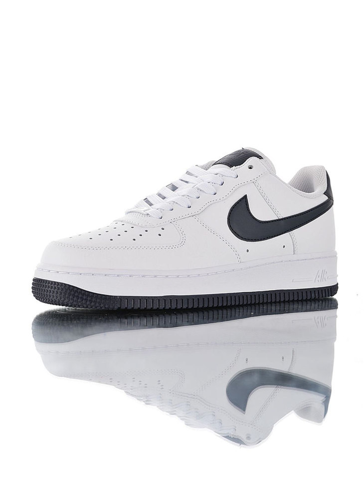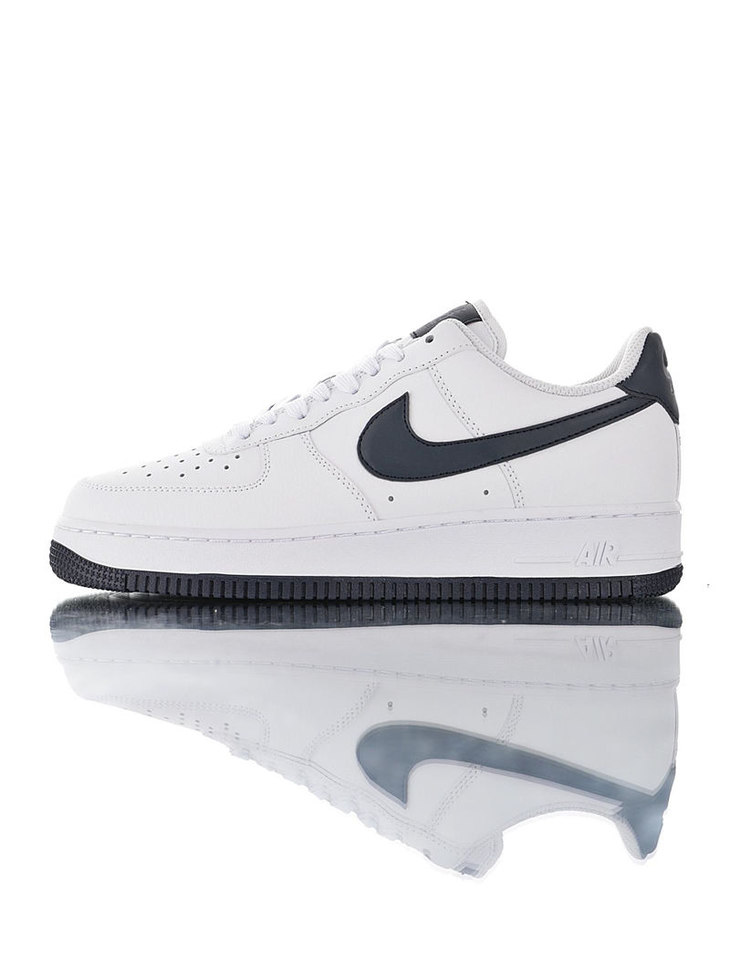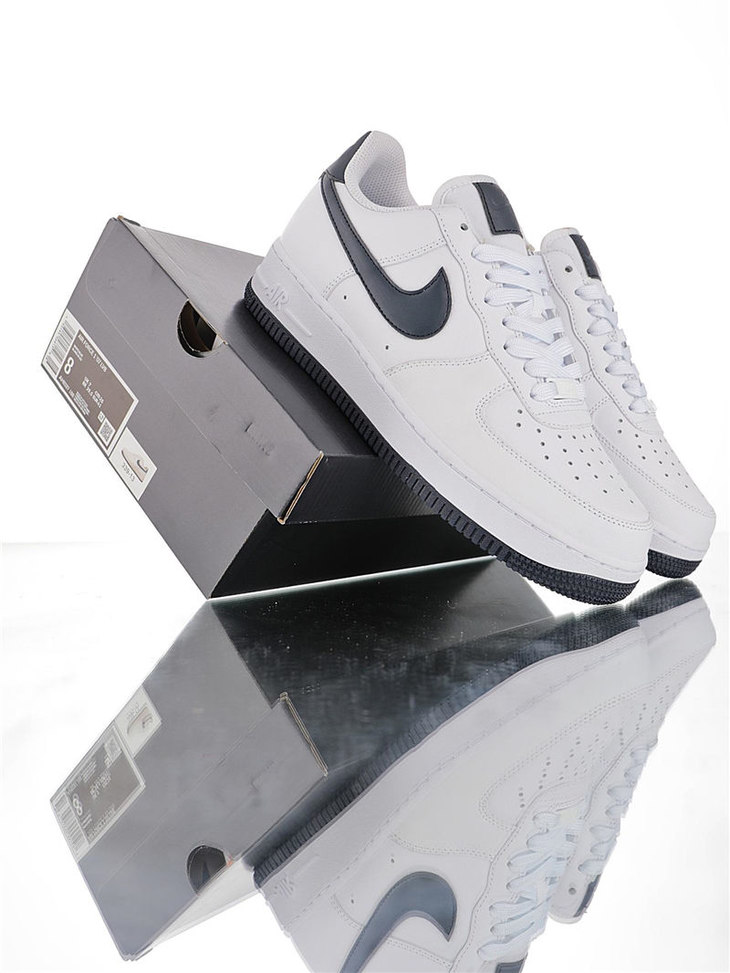 耐克Nike Air Force 1 ´07 Low Premium 原模具开发 采用硬质荔枝纹纹牛剖革 内置全掌air sole气垫 皮革白午夜蓝钩配色