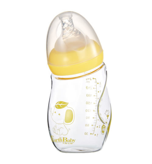大地宝贝宽口弯型防滑晶钻玻璃奶瓶240ML\DA035#