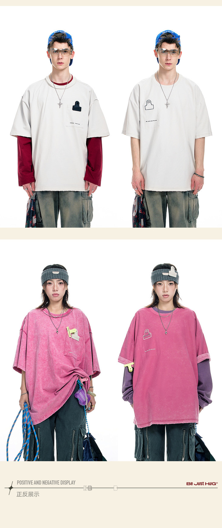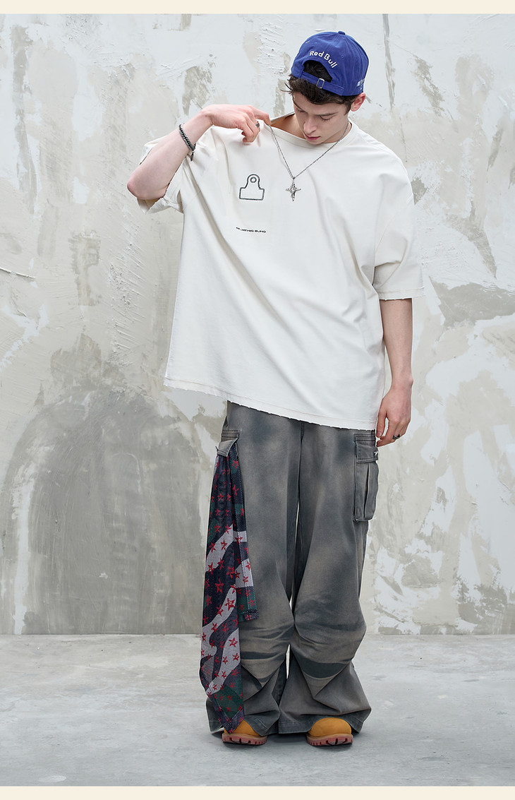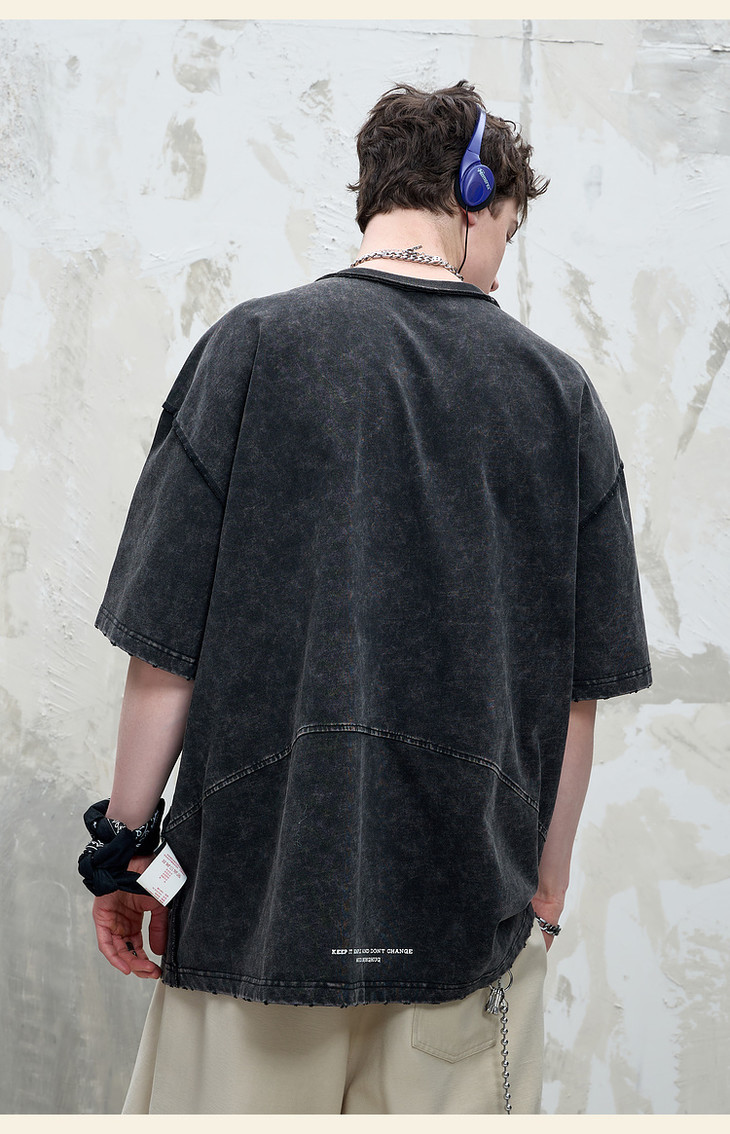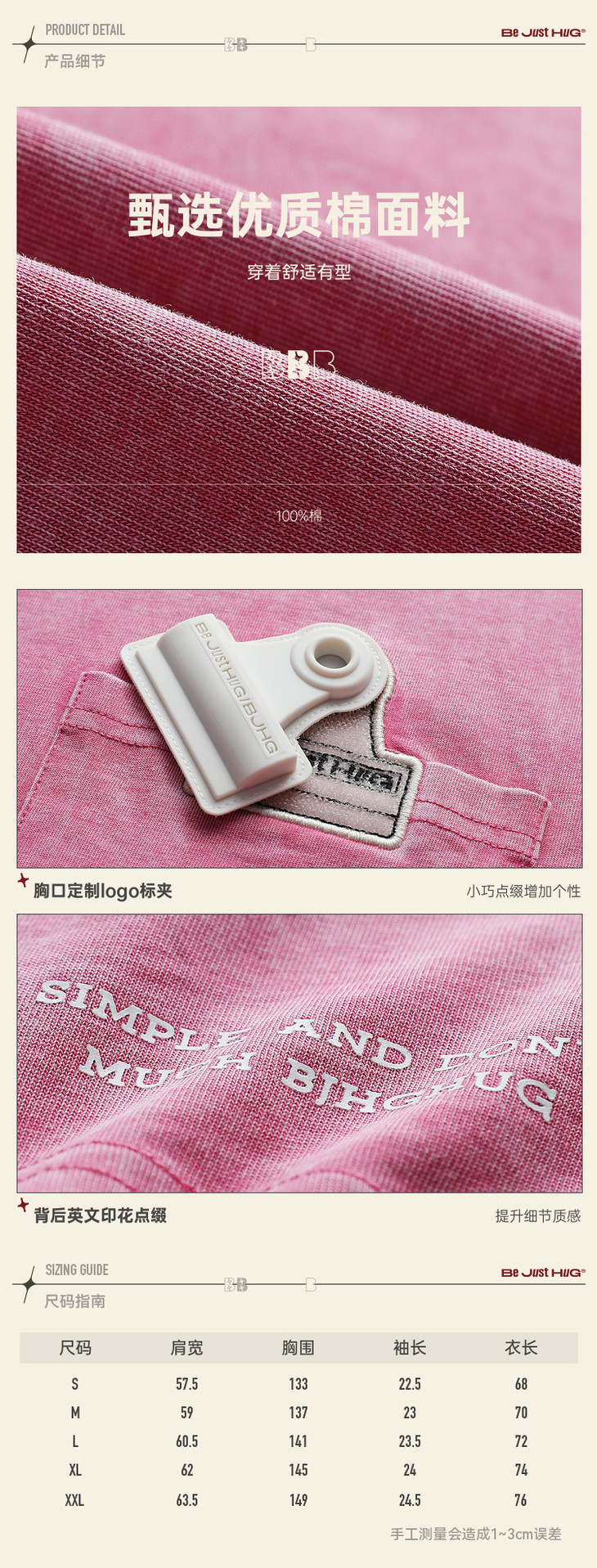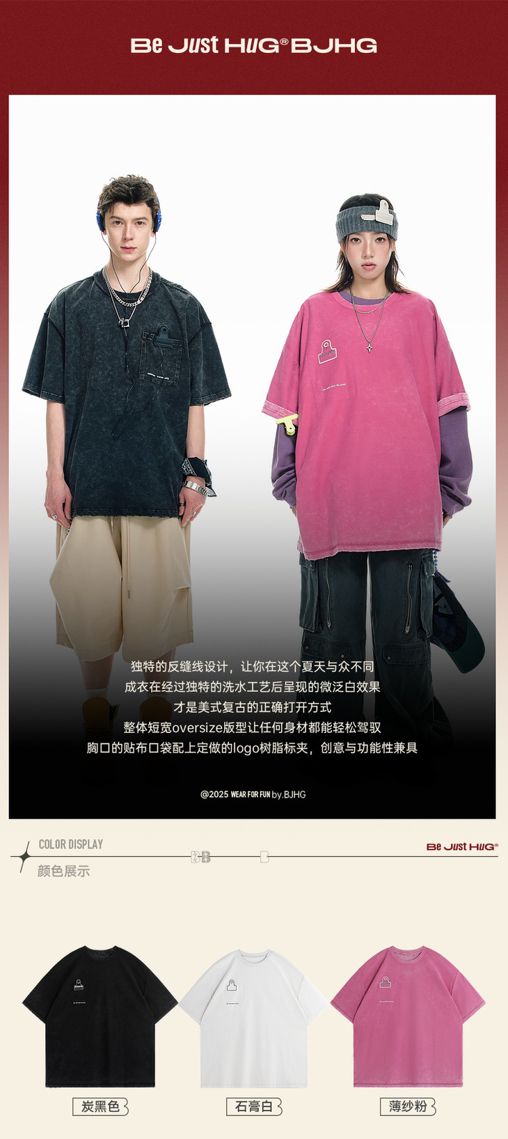 BJHG不计后果 美式复古短袖t恤男夏季潮流设计感做旧宽松休闲半袖
