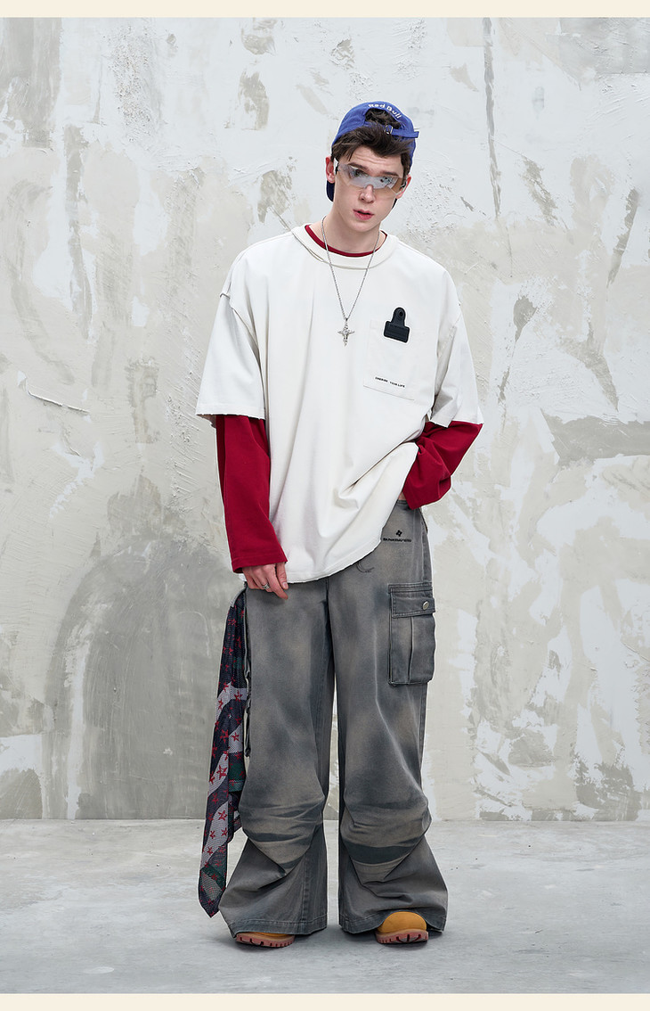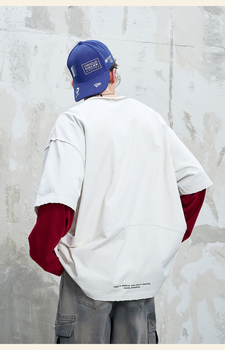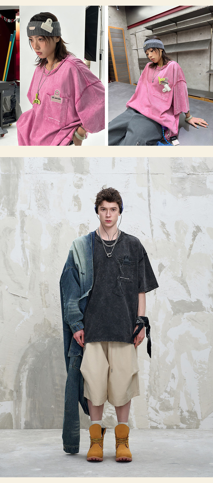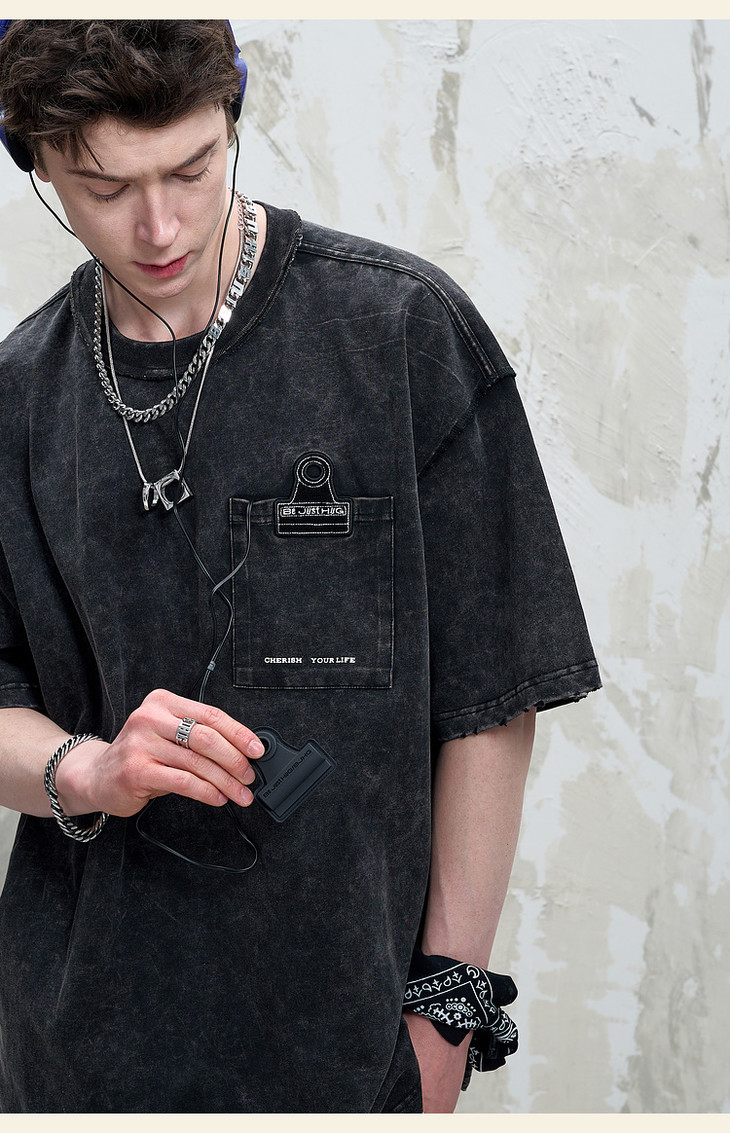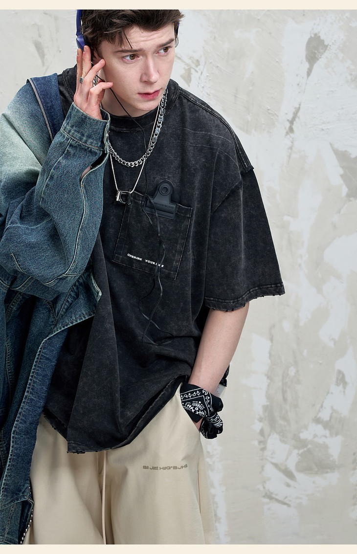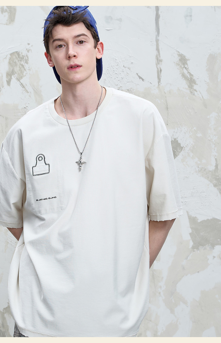 BJHG不计后果 美式复古短袖t恤男夏季潮流设计感做旧宽松休闲半袖