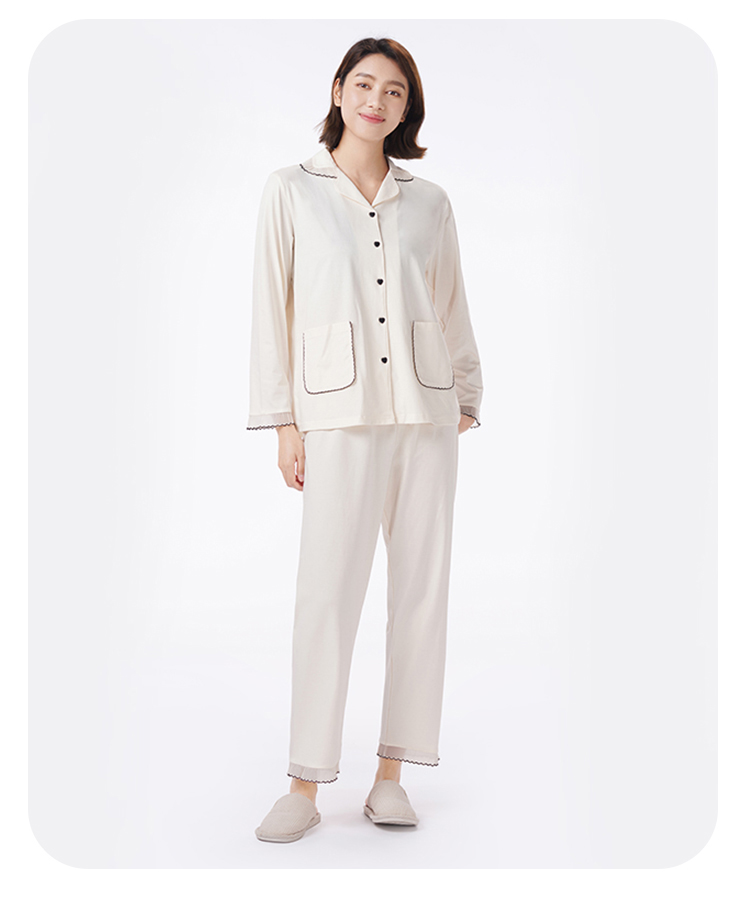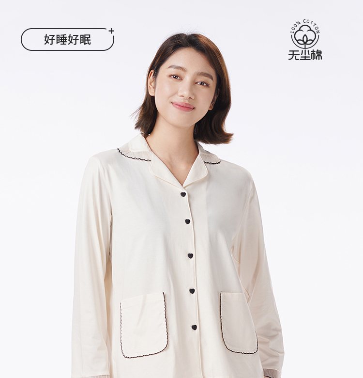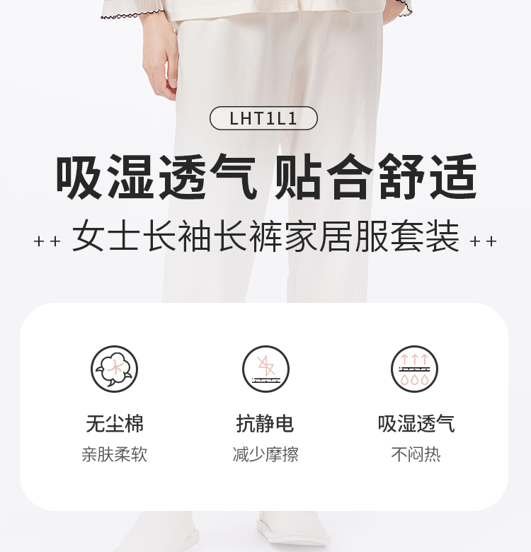 都市丽人睡衣好睡好眠长袖家居服单面无尘棉薄女士棉质套装LHT1L1